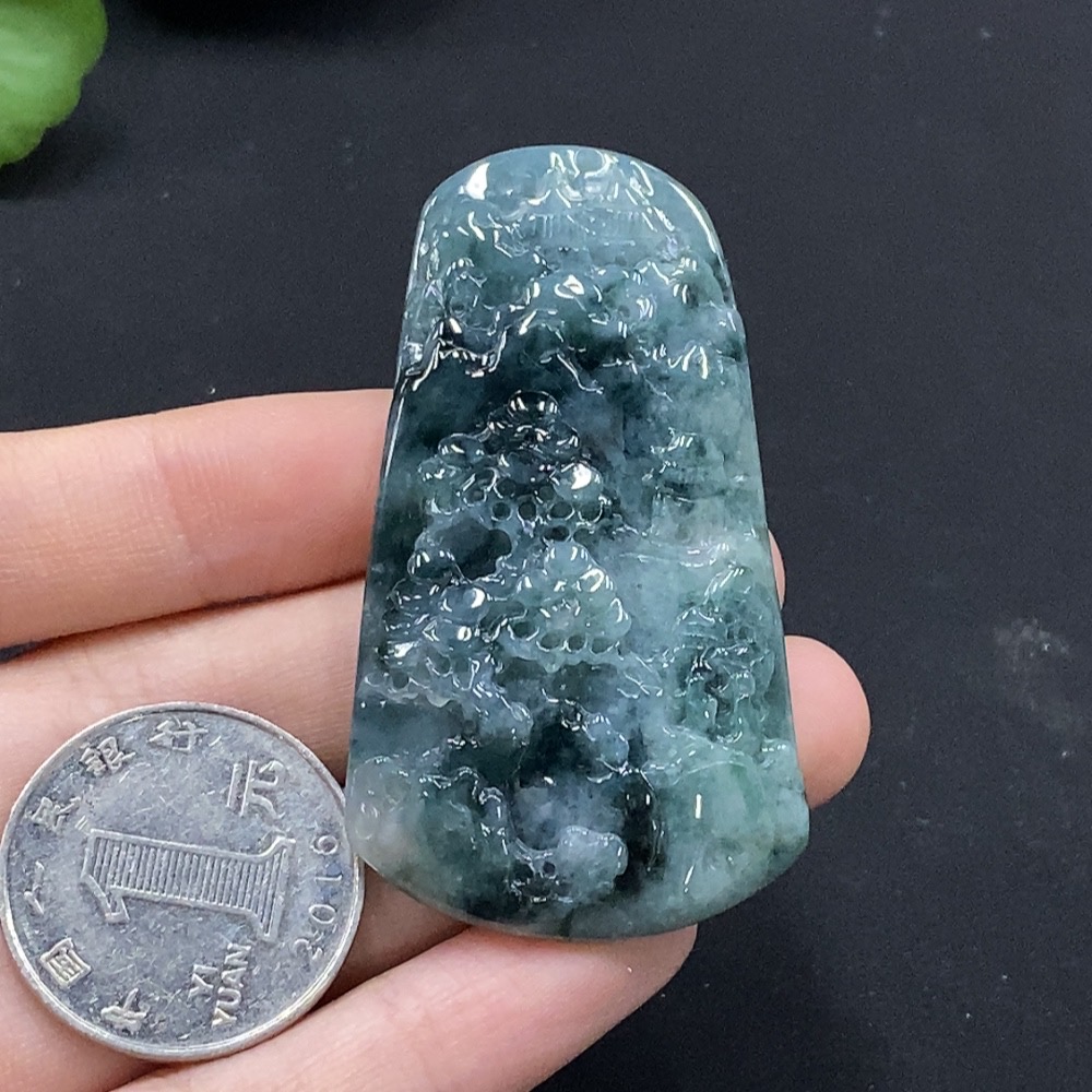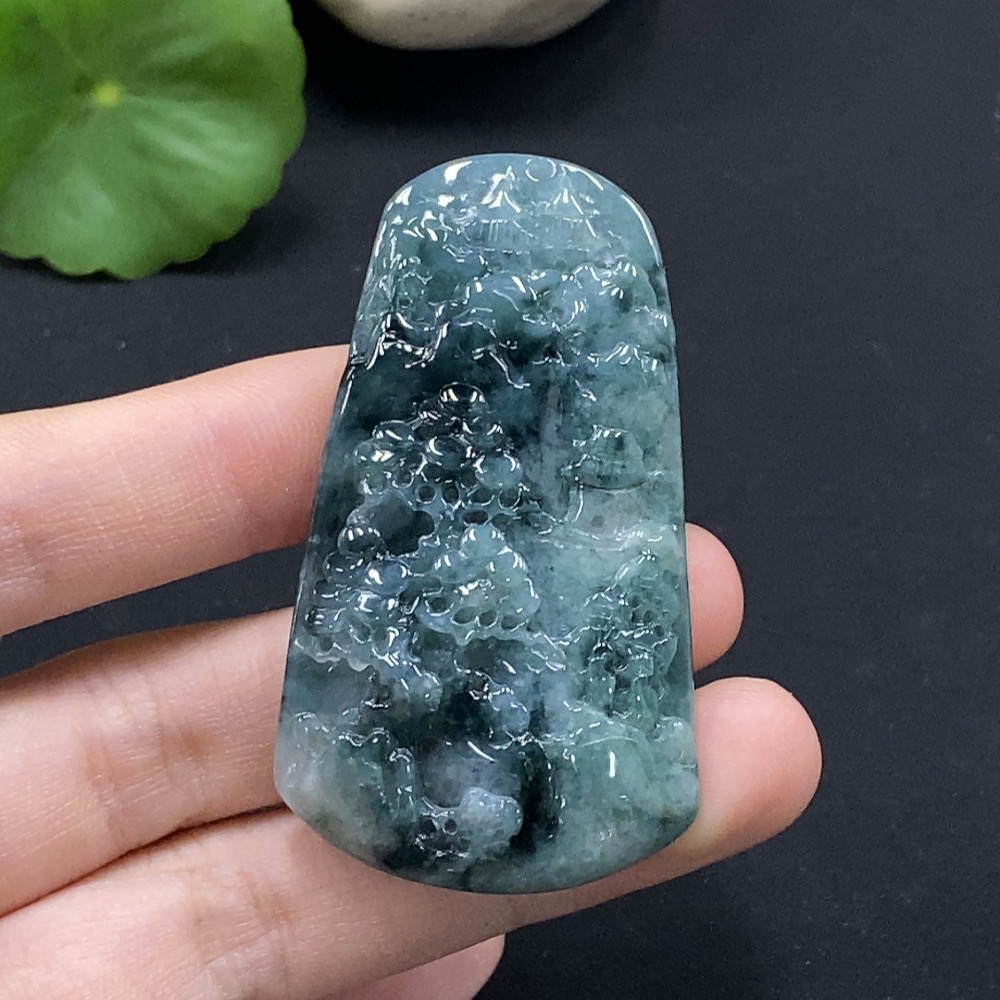 Jadeite Landscape Pendant, Total Weight Approximately 31g