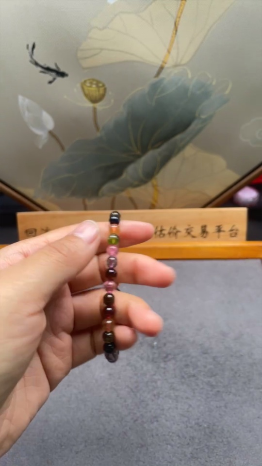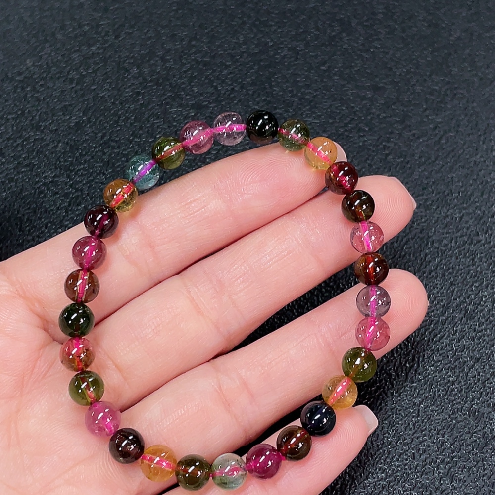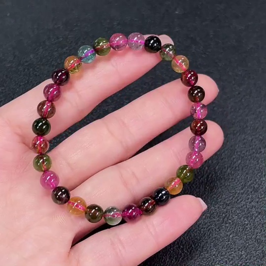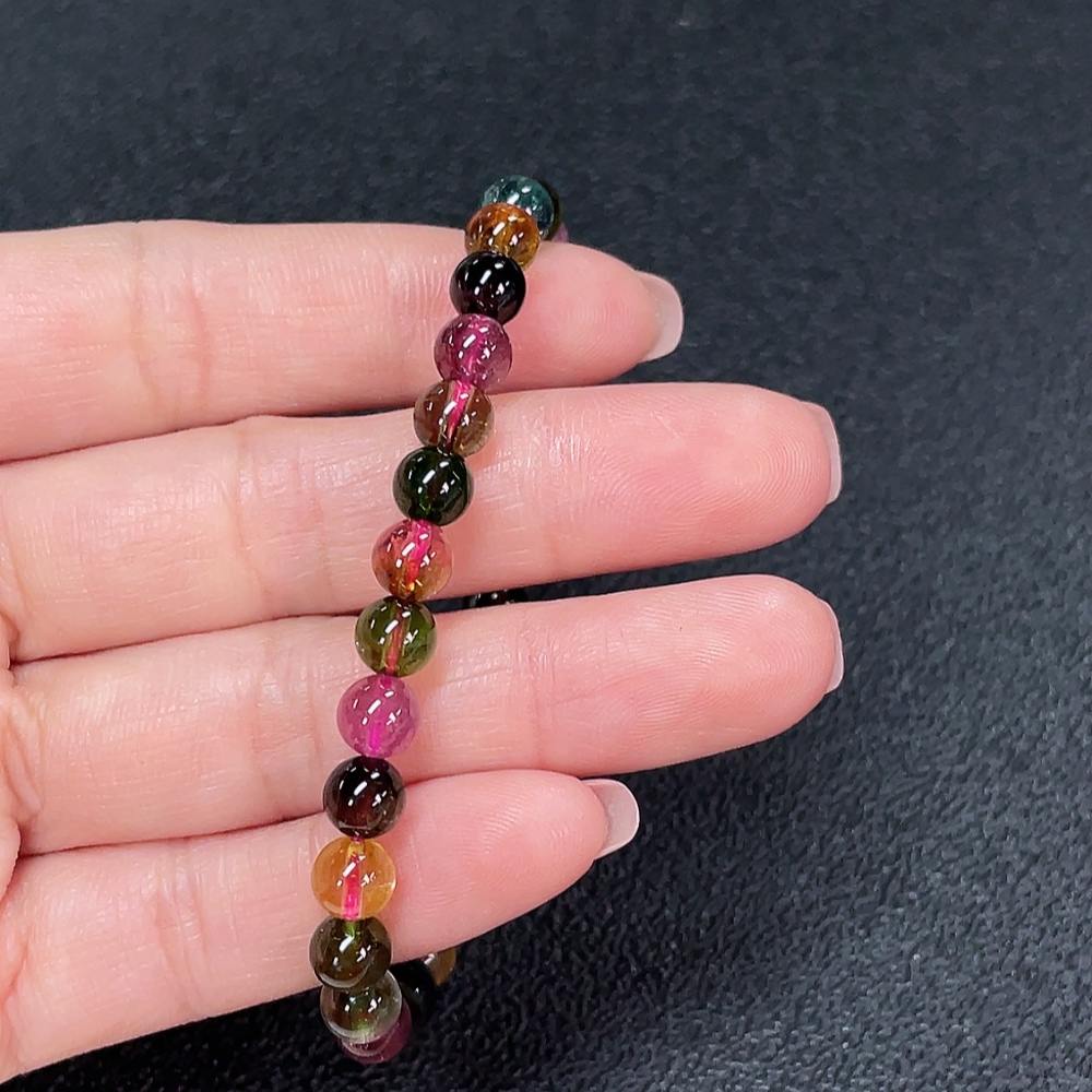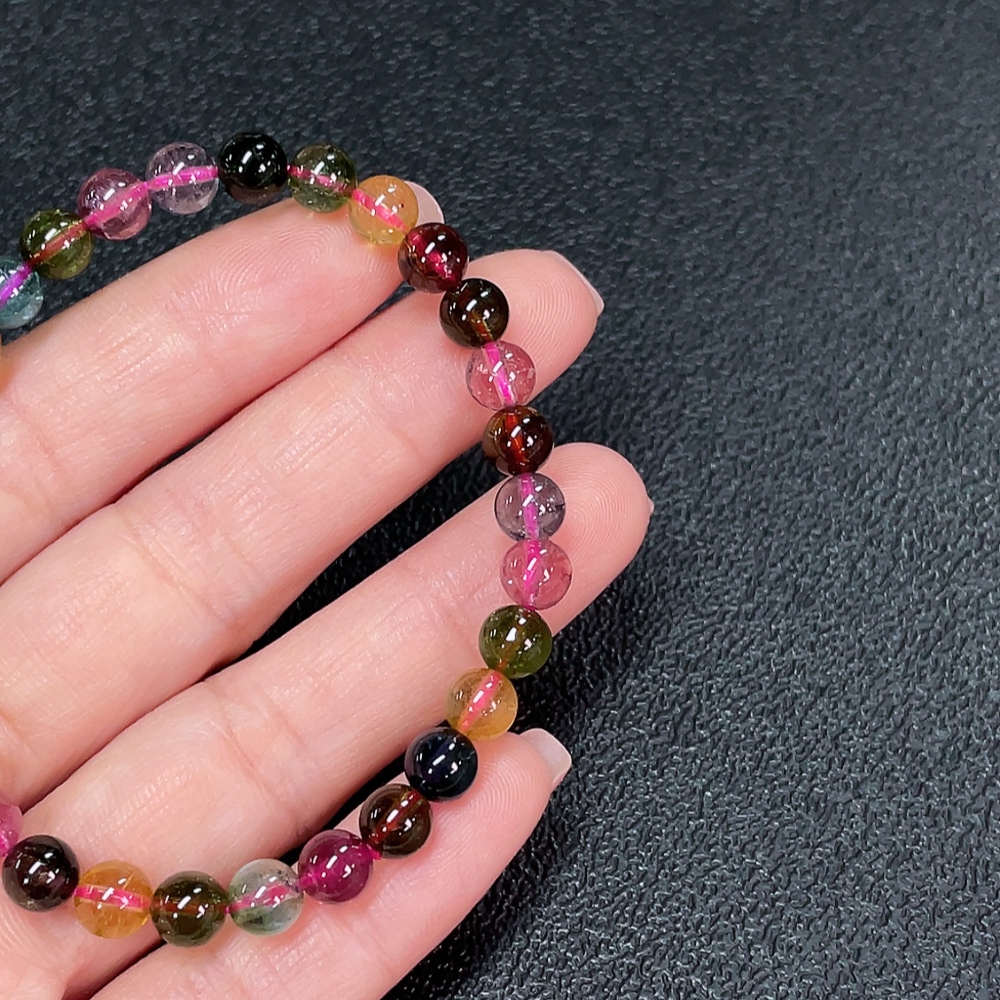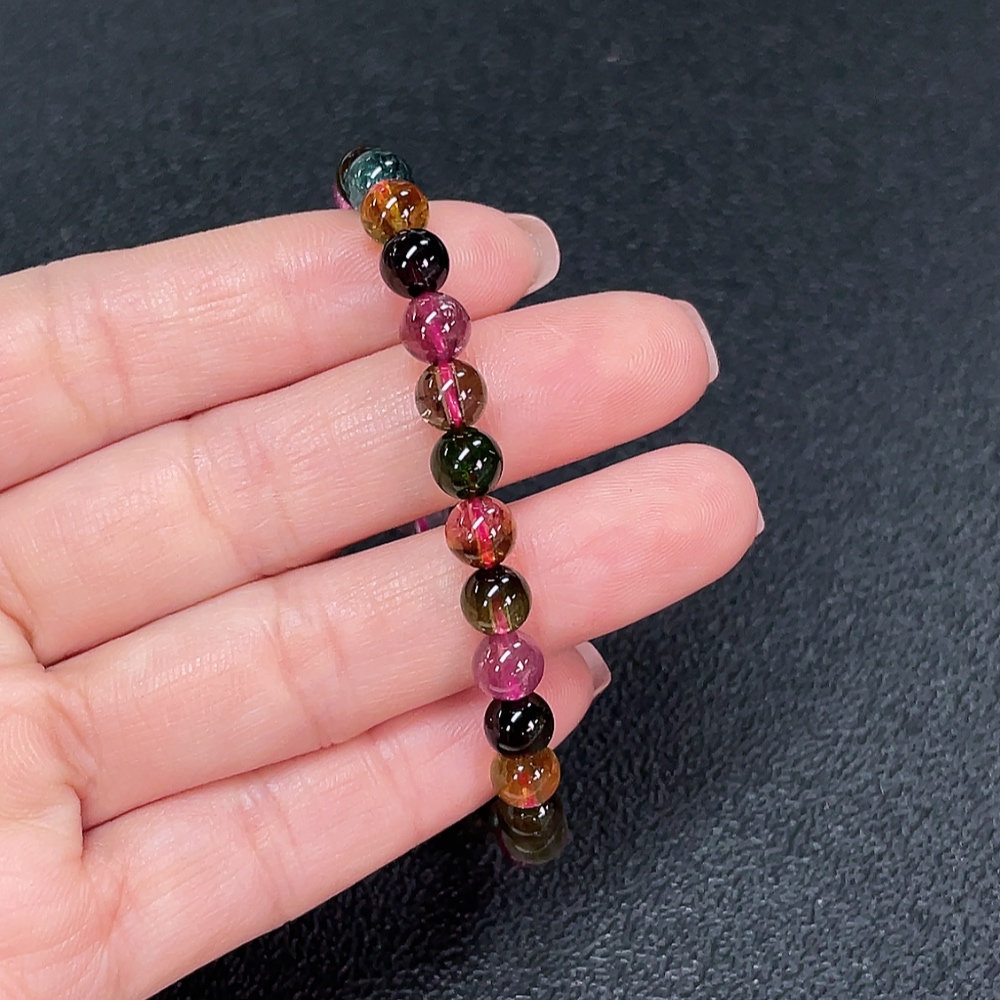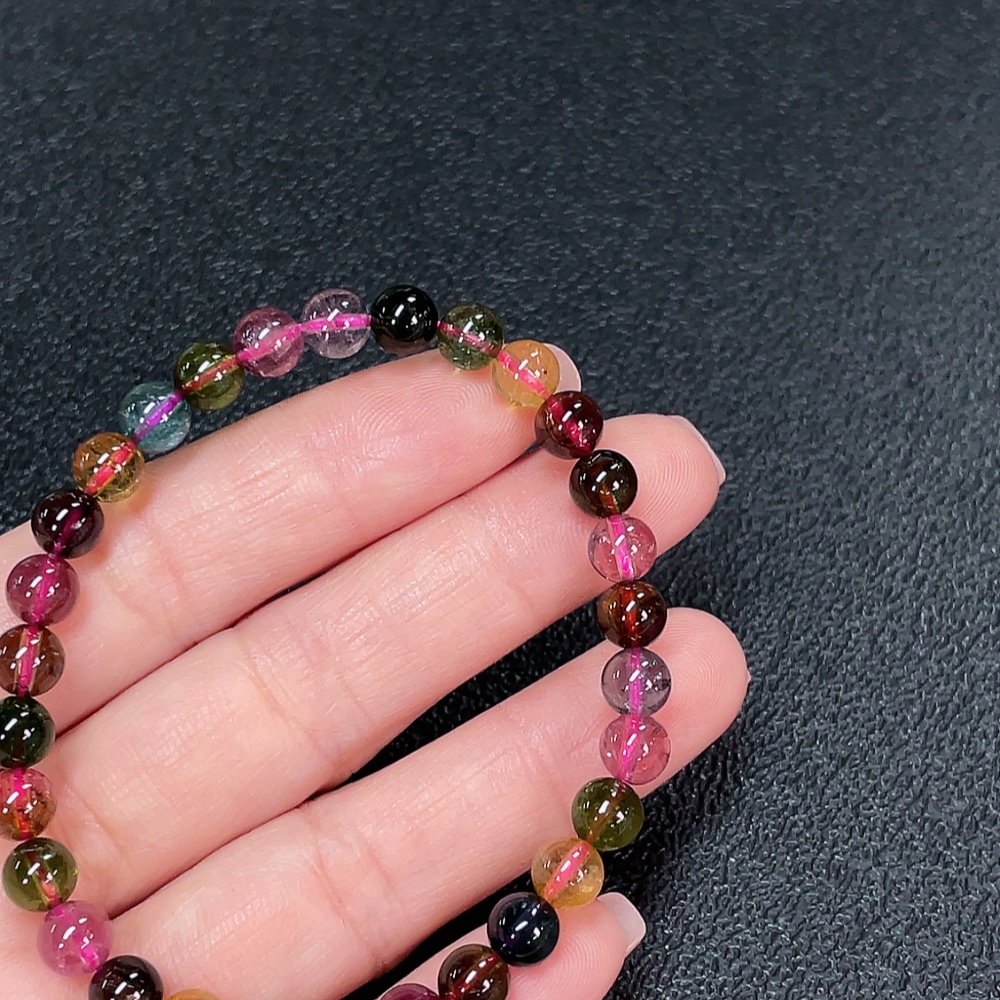 Tourmaline bead strand with visible organic matter, total weight approx. 10.7g, size approx. 6mm