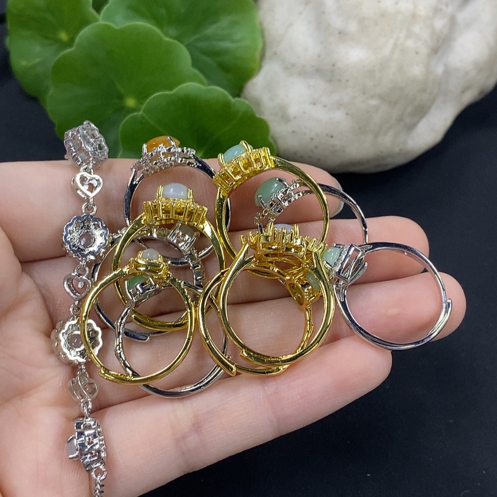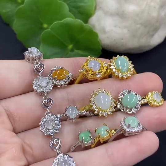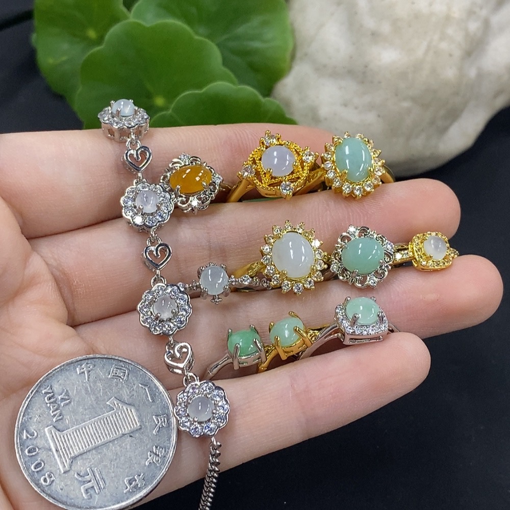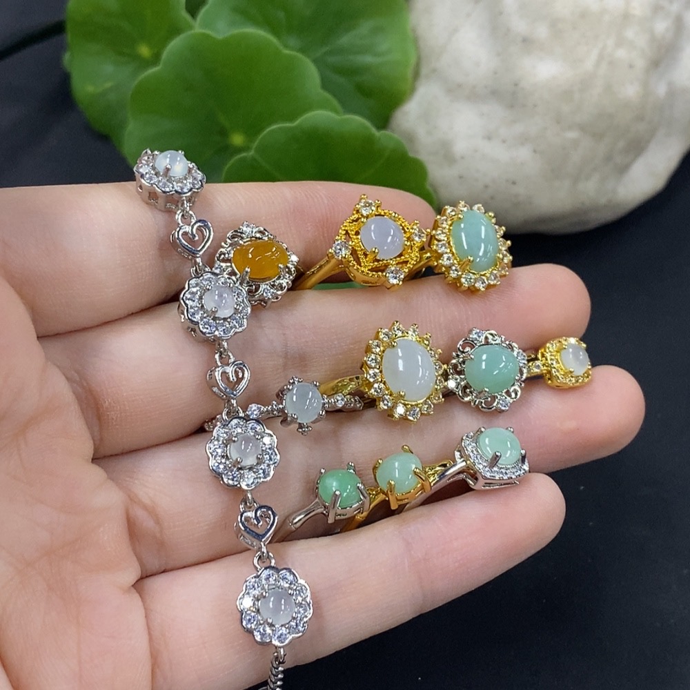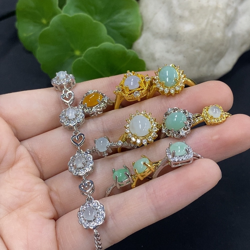 Jadeite cabochon bracelet/adjustable ring non-gold setting