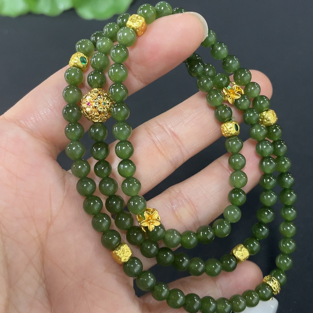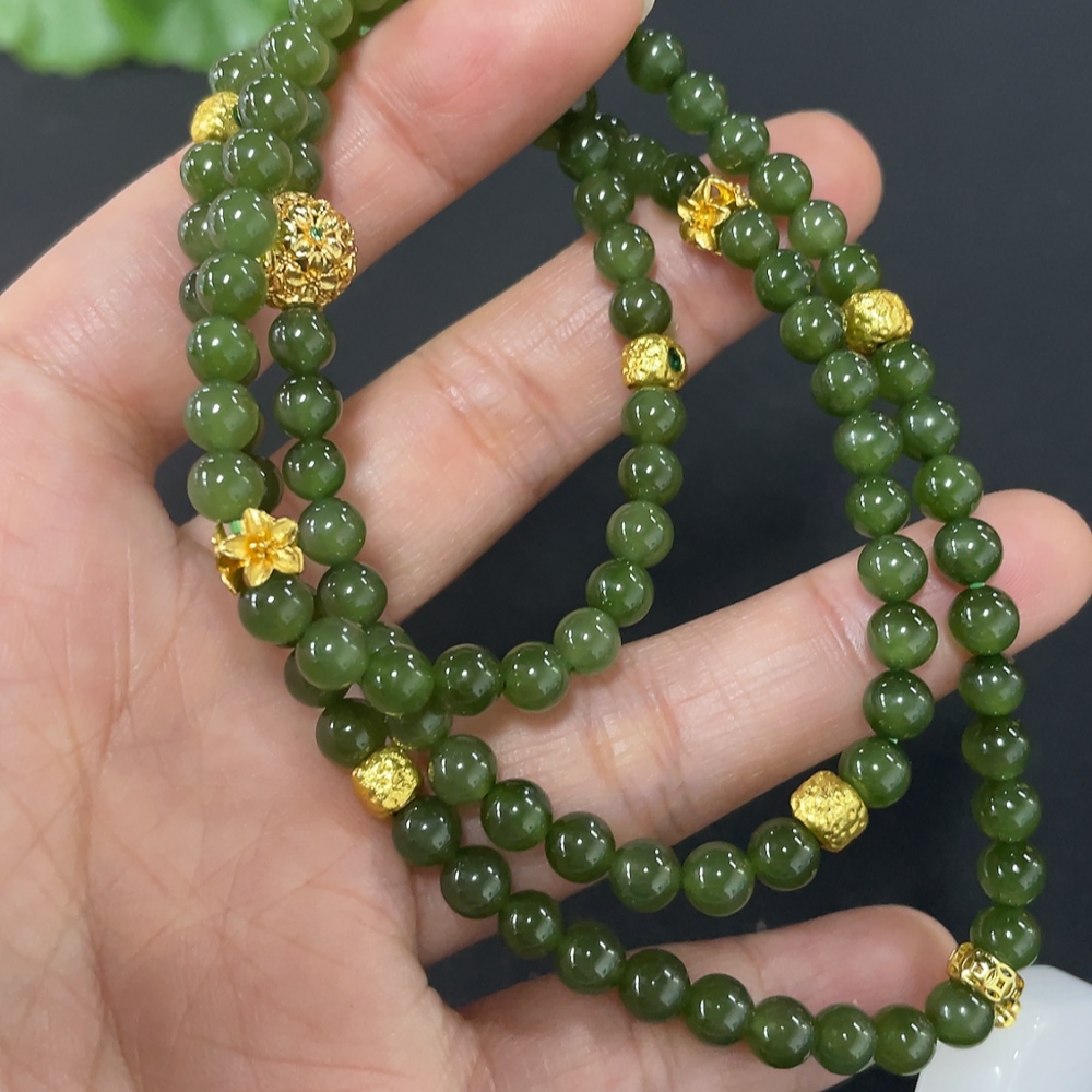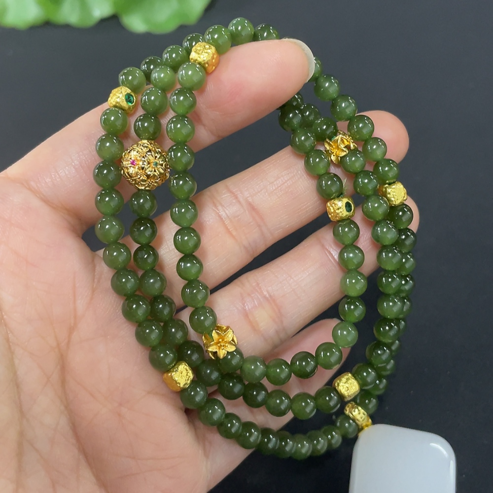 Hetian Jade Bead Necklace, Approx. 4.8mm, Non-Gold Inlaid, Total Weight Approx. 33.6g, Non-Hetian Jade Accessories