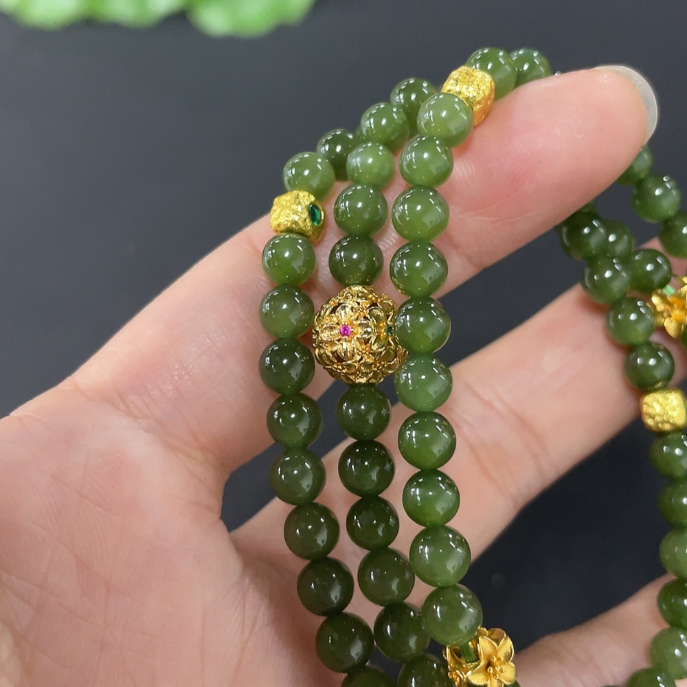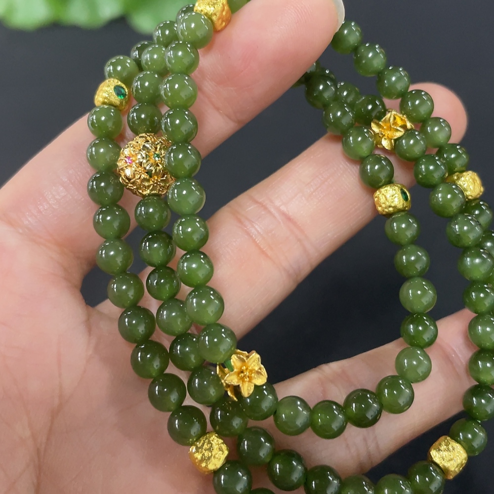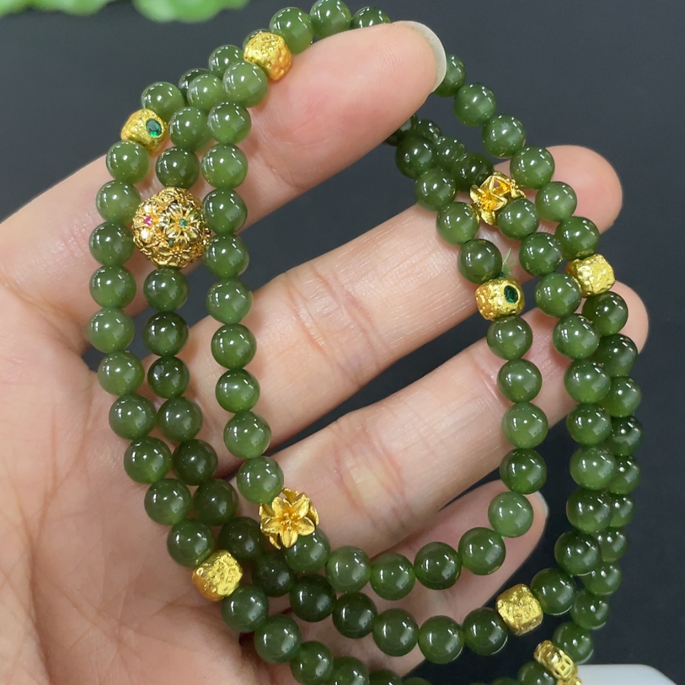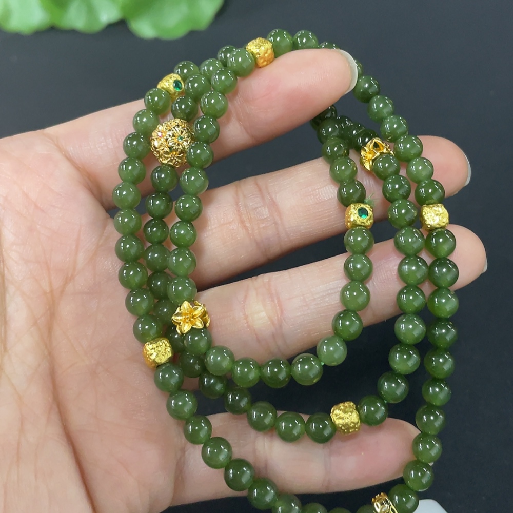 Hetian Jade Bead Necklace, Approx. 4.8mm, Non-Gold Inlaid, Total Weight Approx. 33.6g, Non-Hetian Jade Accessories