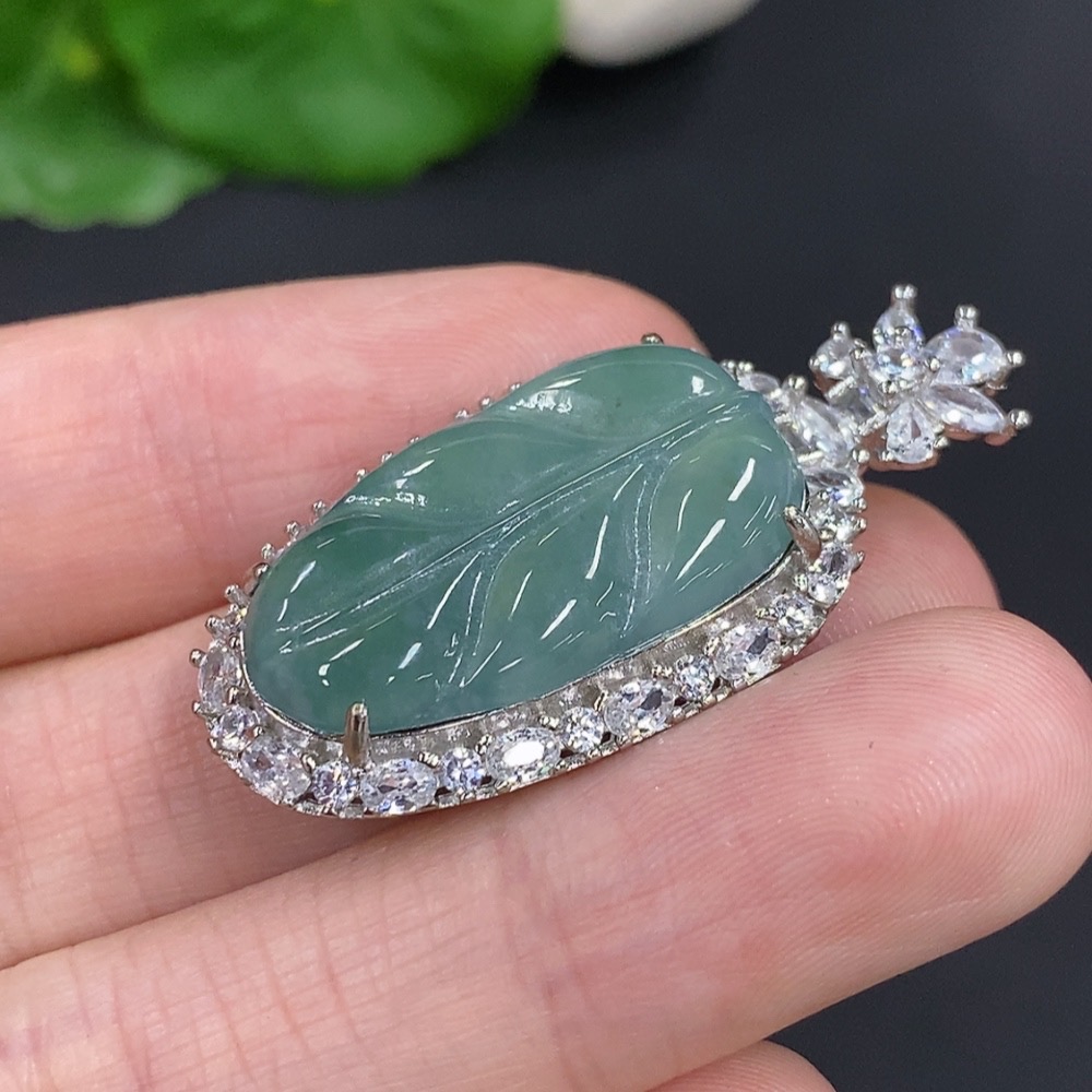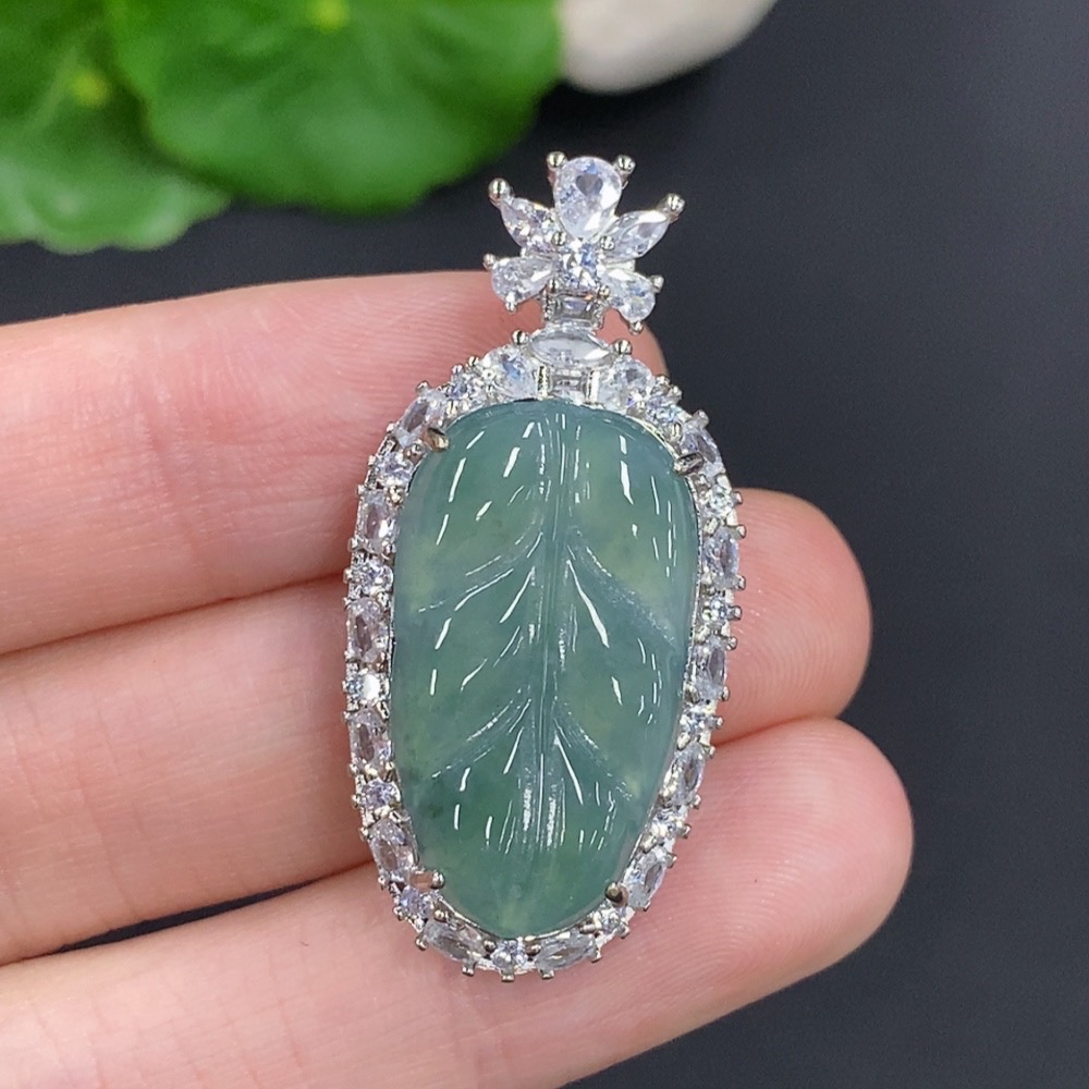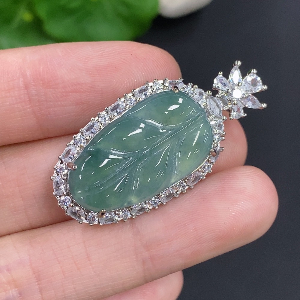 Jadeite Leaf Pendant Non-Gold Inlaid Total Weight Approximately 6.3g