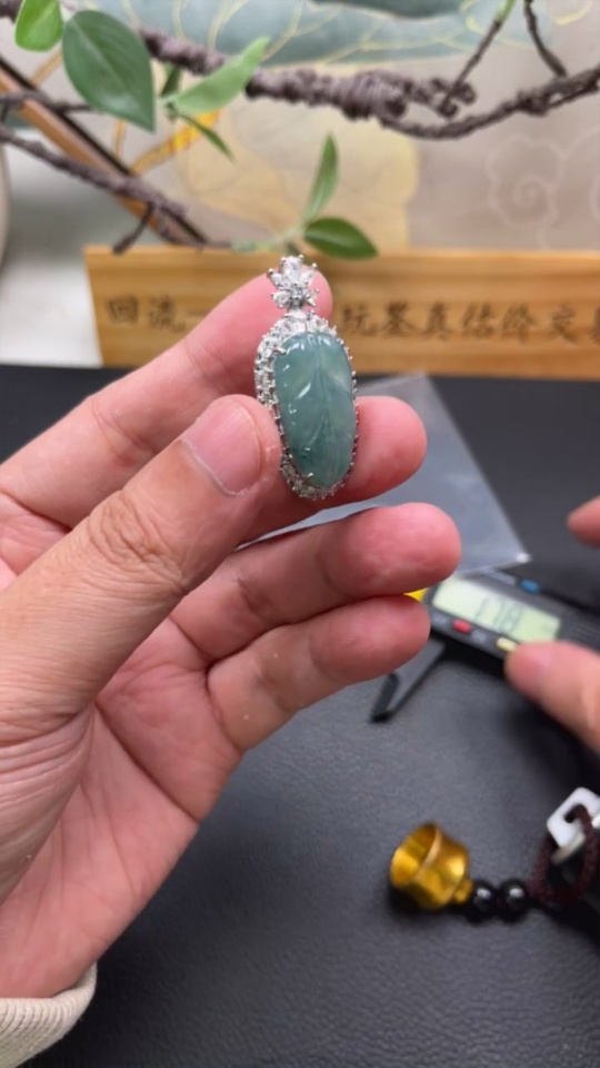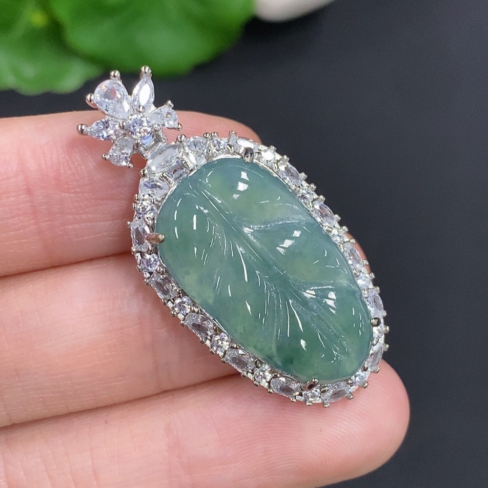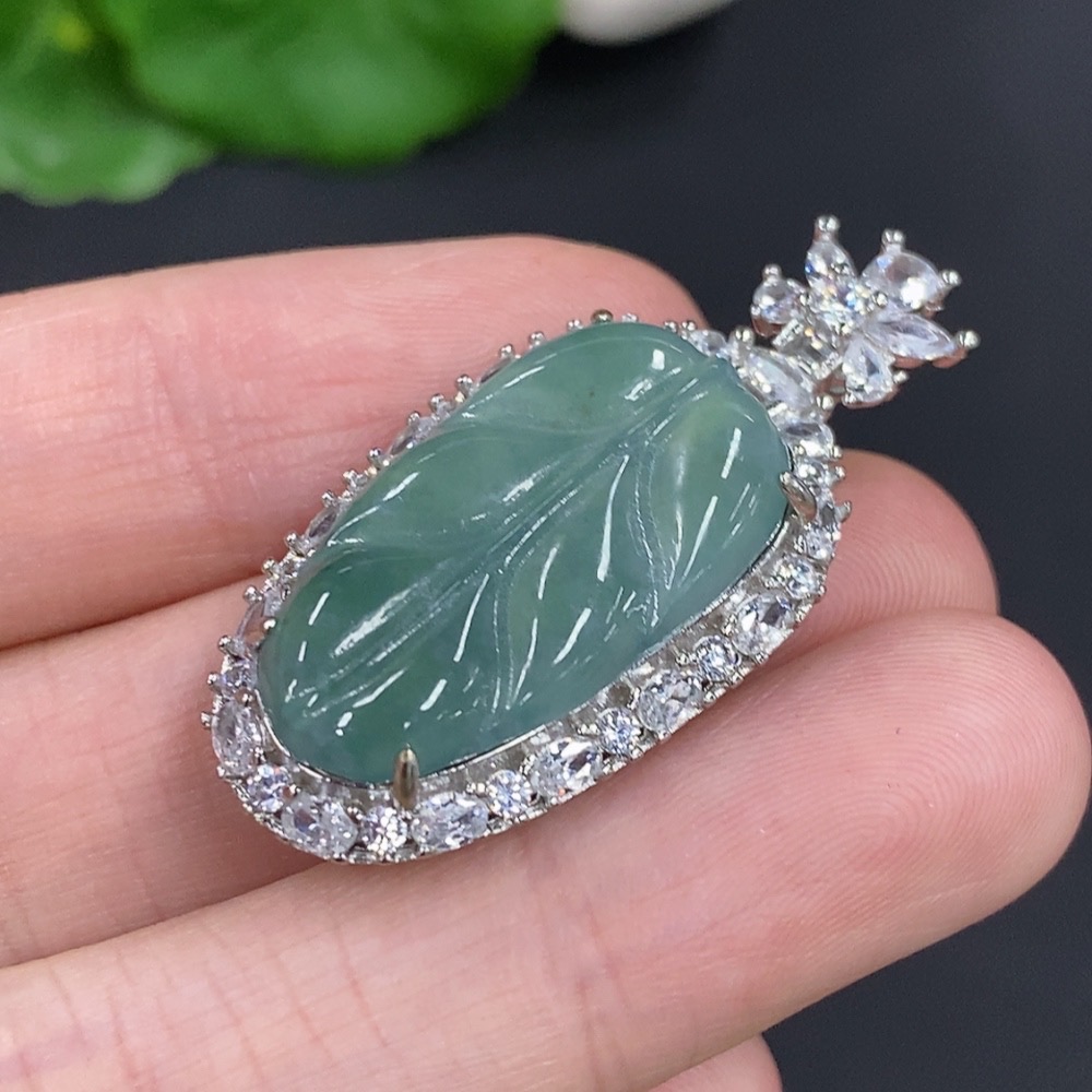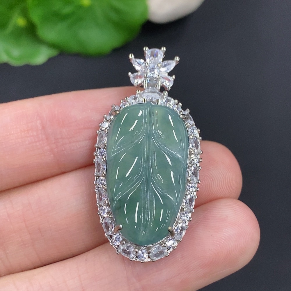 Jadeite Leaf Pendant Non-Gold Inlaid Total Weight Approximately 6.3g