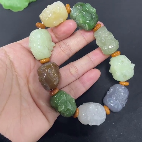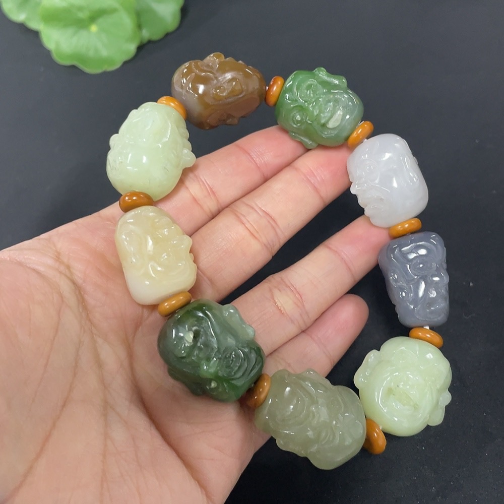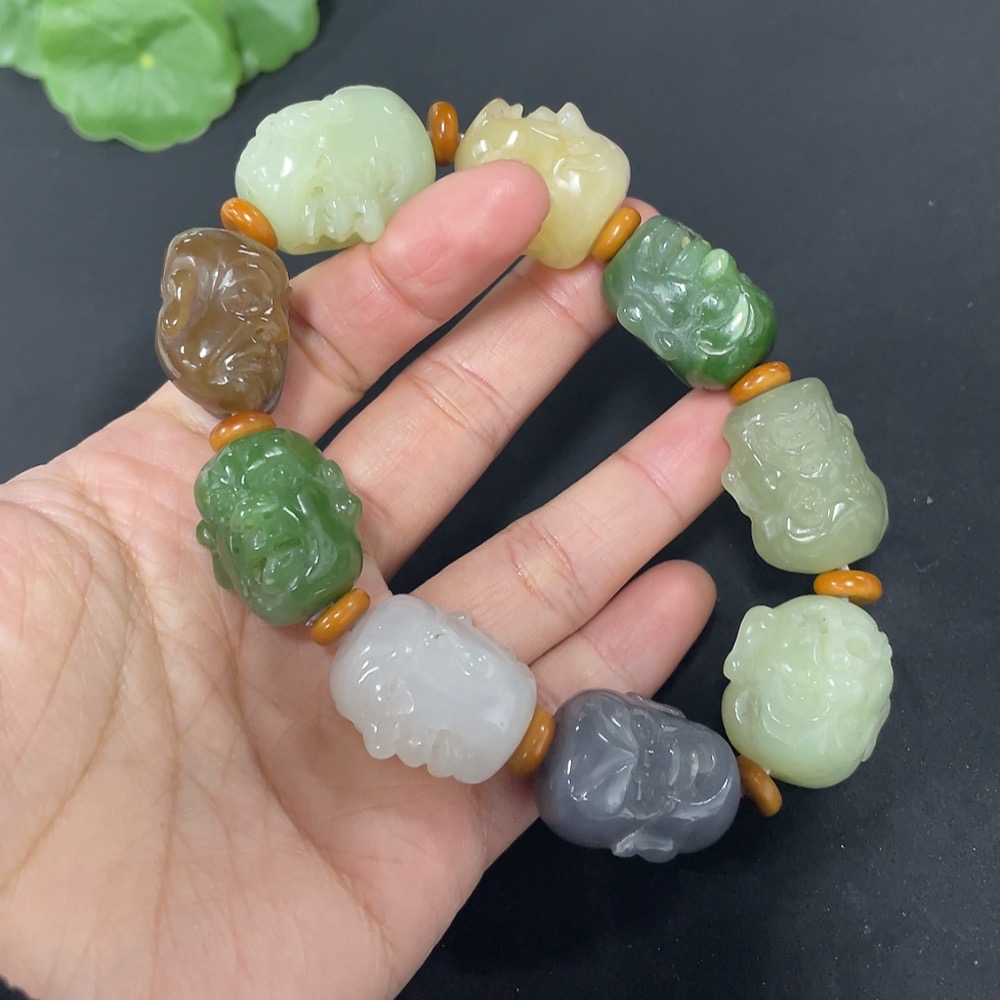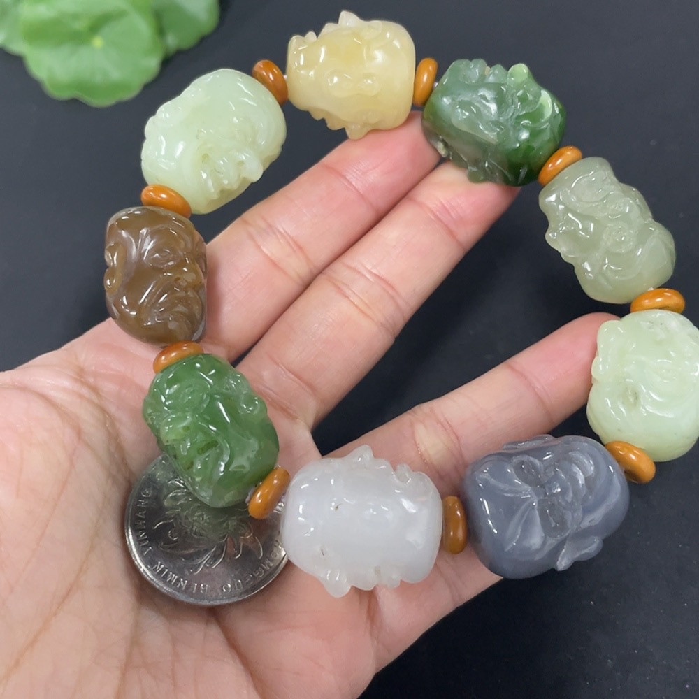Hetian Jade Bracelet with Non-Hetian Jade Beads, Total Weight Approximately 97.7g