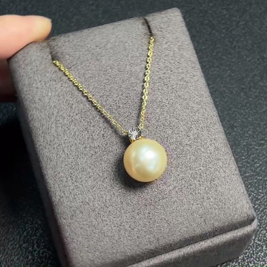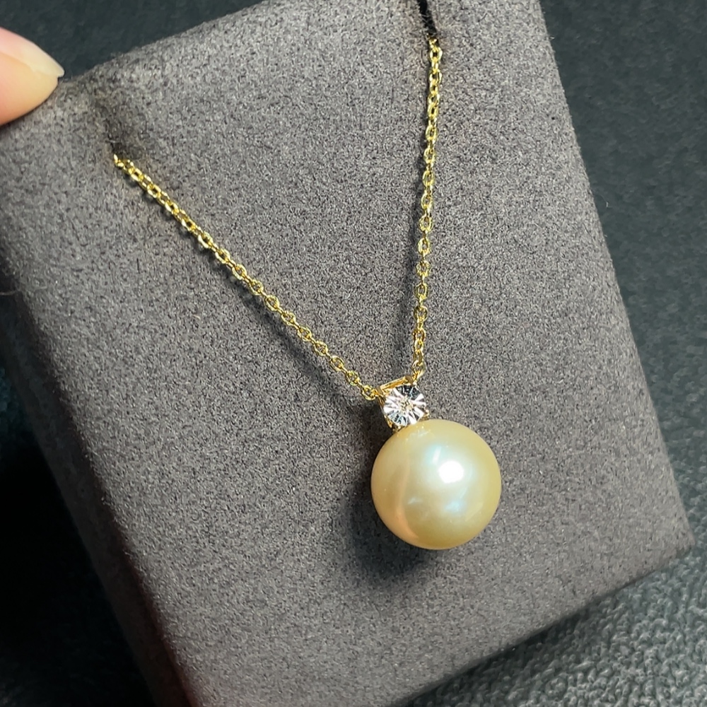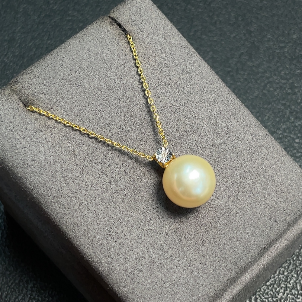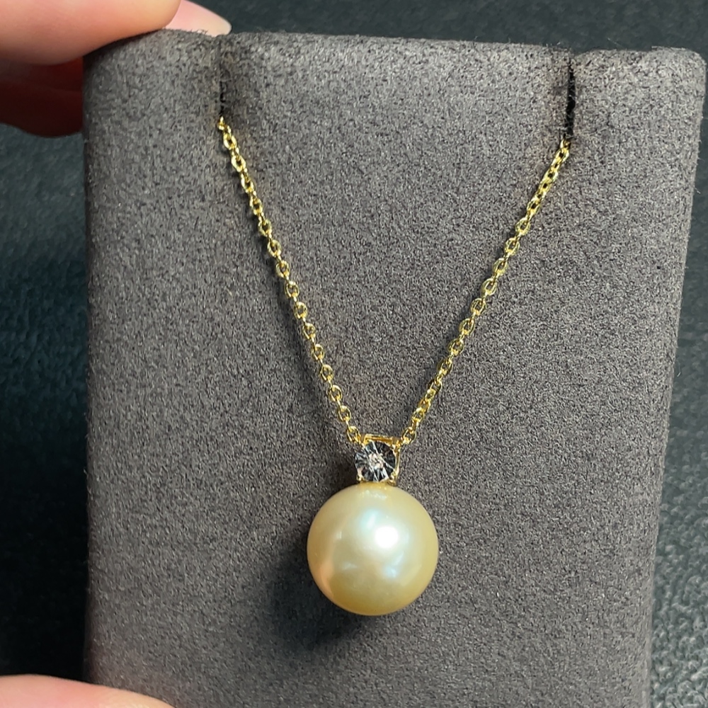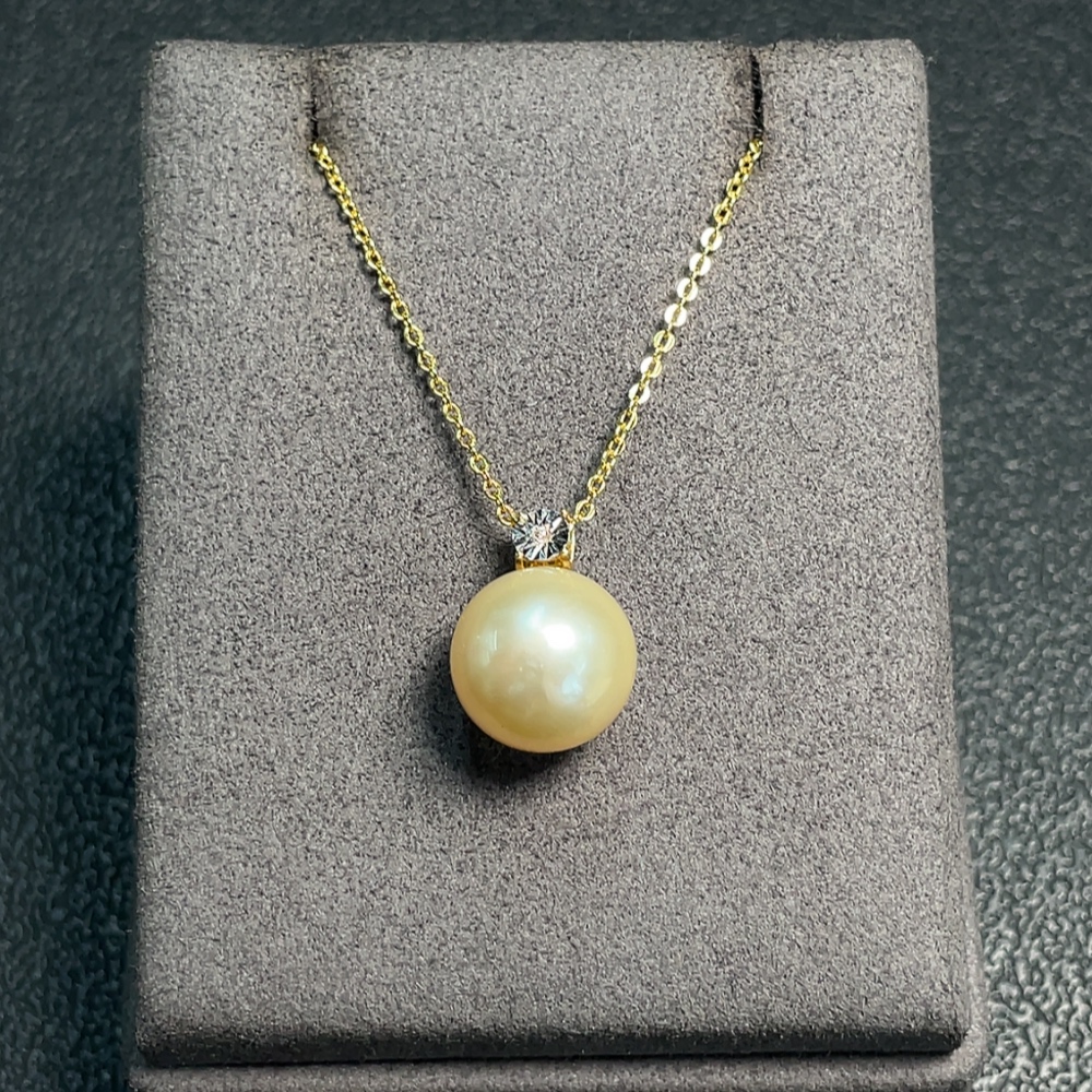 Seawater Pearl Necklace Pendant 18K Gold Chain Not Gold with Diamond Accents Total Weight Approx. 4.59g Size About 12.1mm