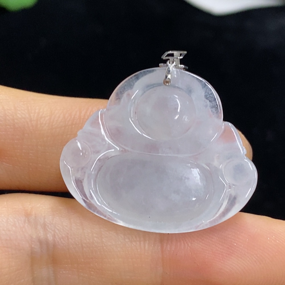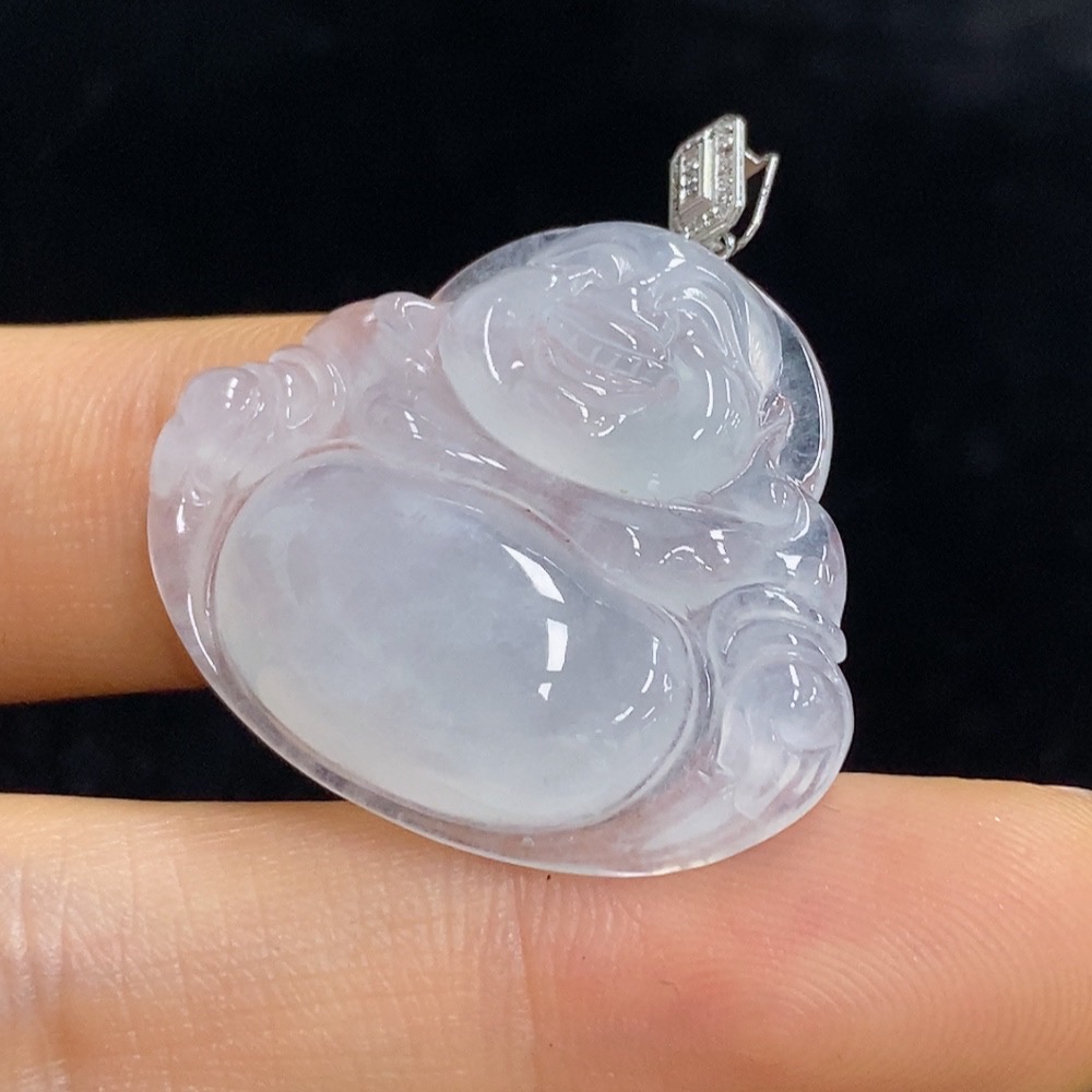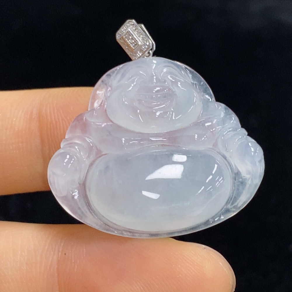 Jadeite Buddha Pendant with 18k Gold and Diamond Accents, Total Weight Approximately 6.38g