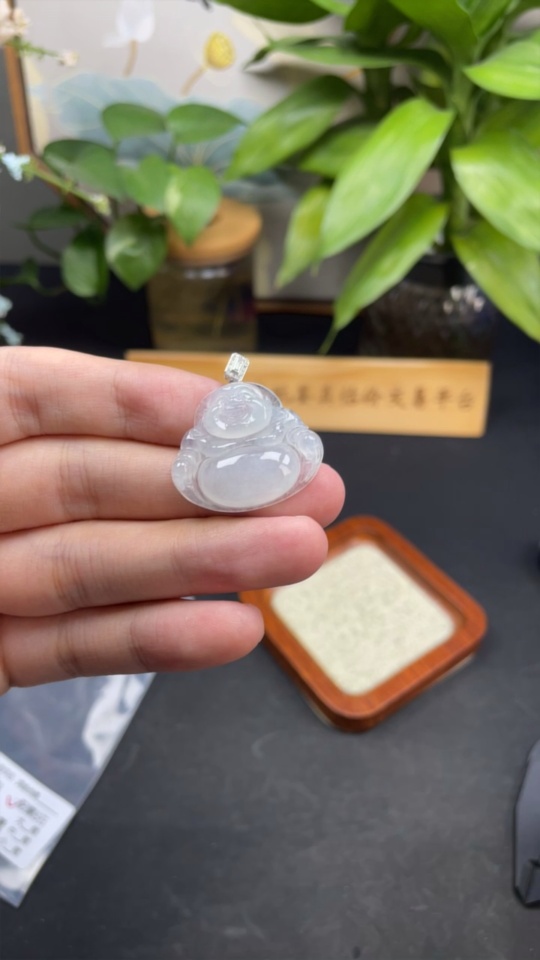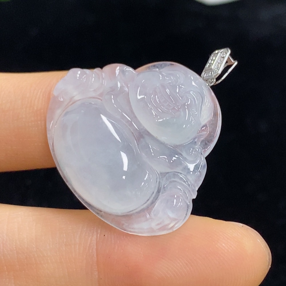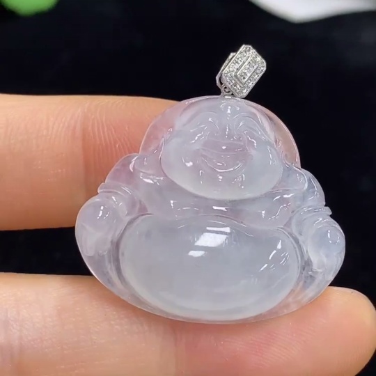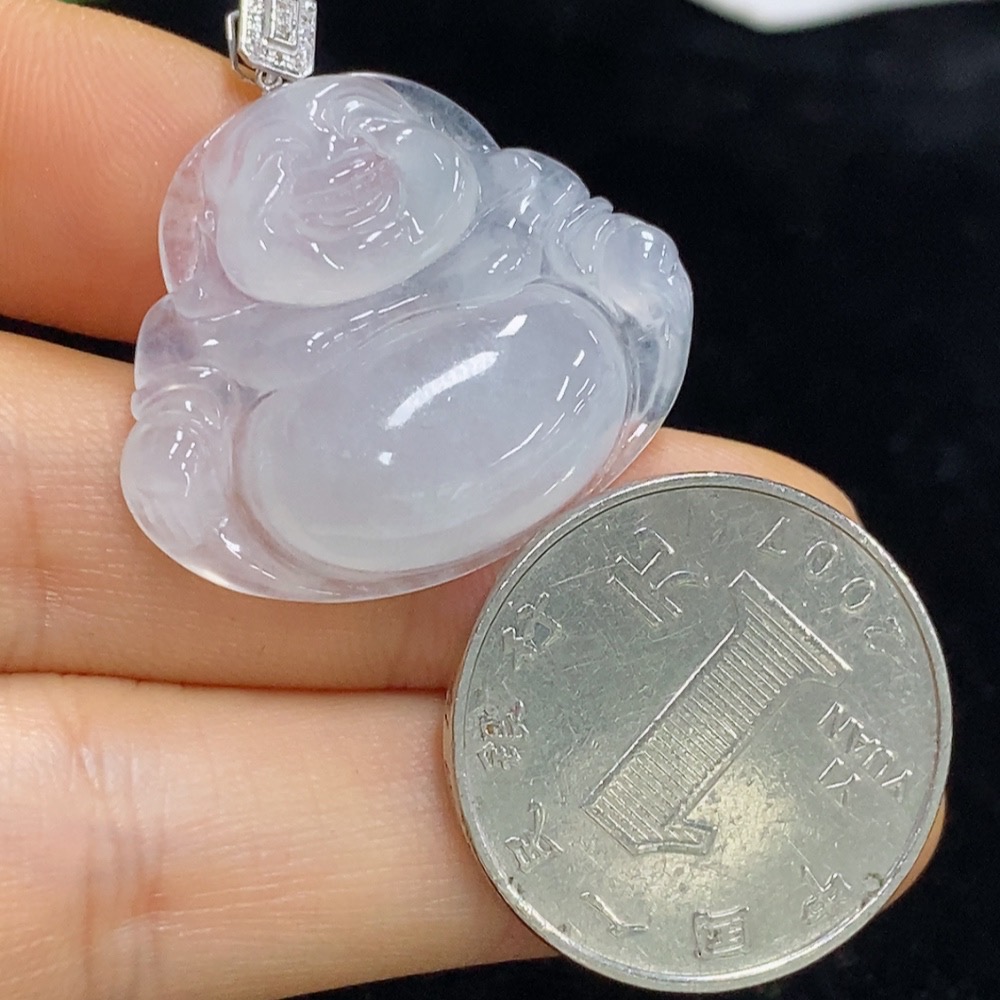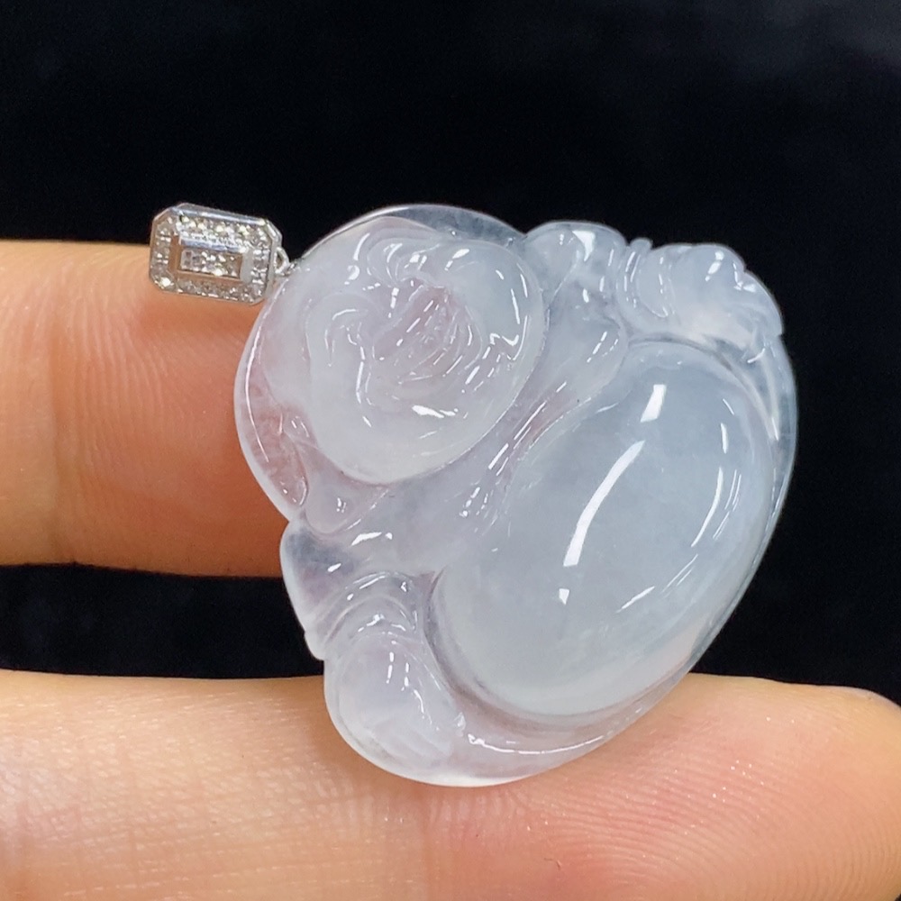 Jadeite Buddha Pendant with 18k Gold and Diamond Accents, Total Weight Approximately 6.38g