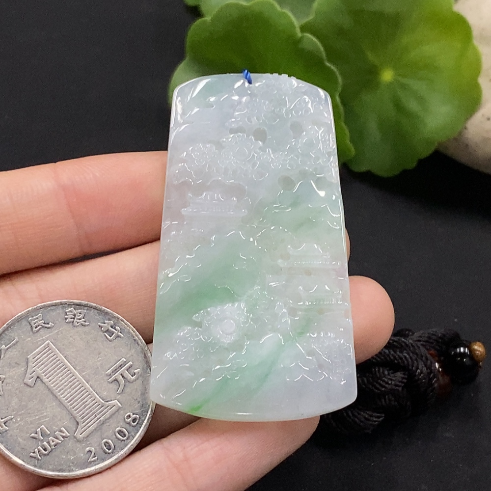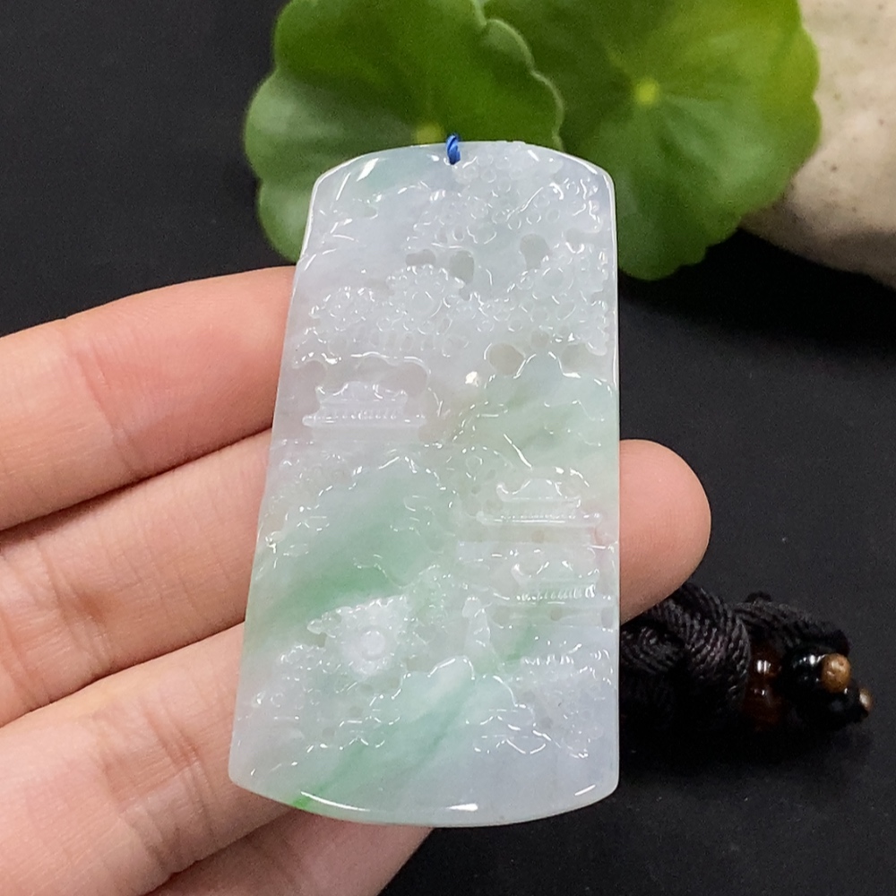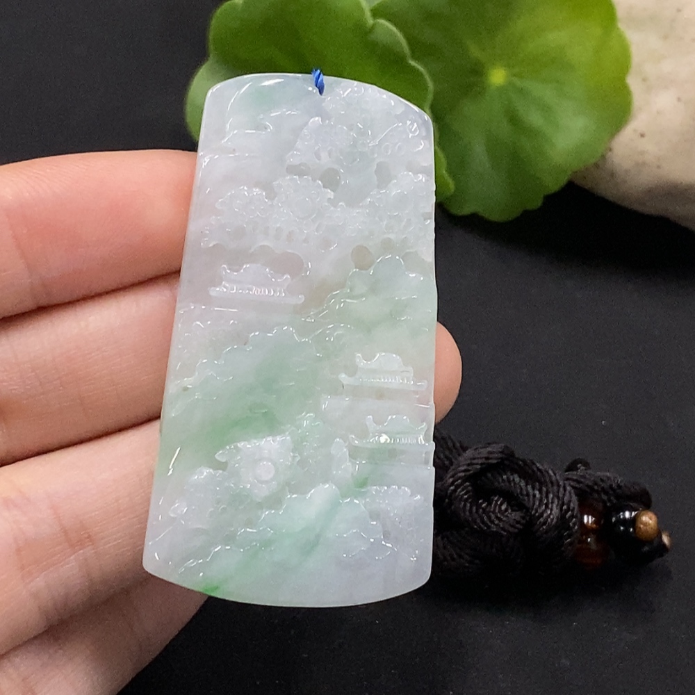 Jadeite Pendant Landscape with Non-A Beads Including Cord Total Weight Approx. 15.51g