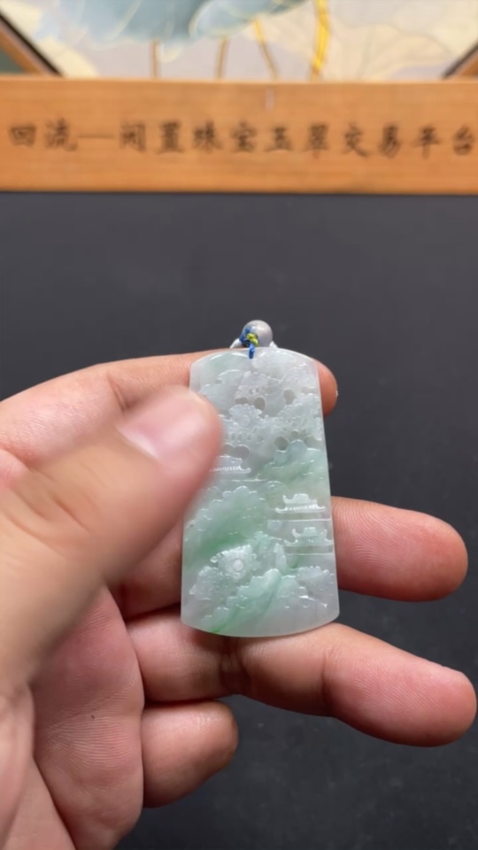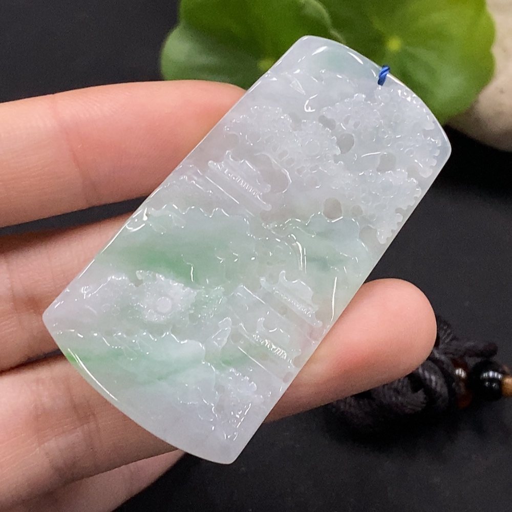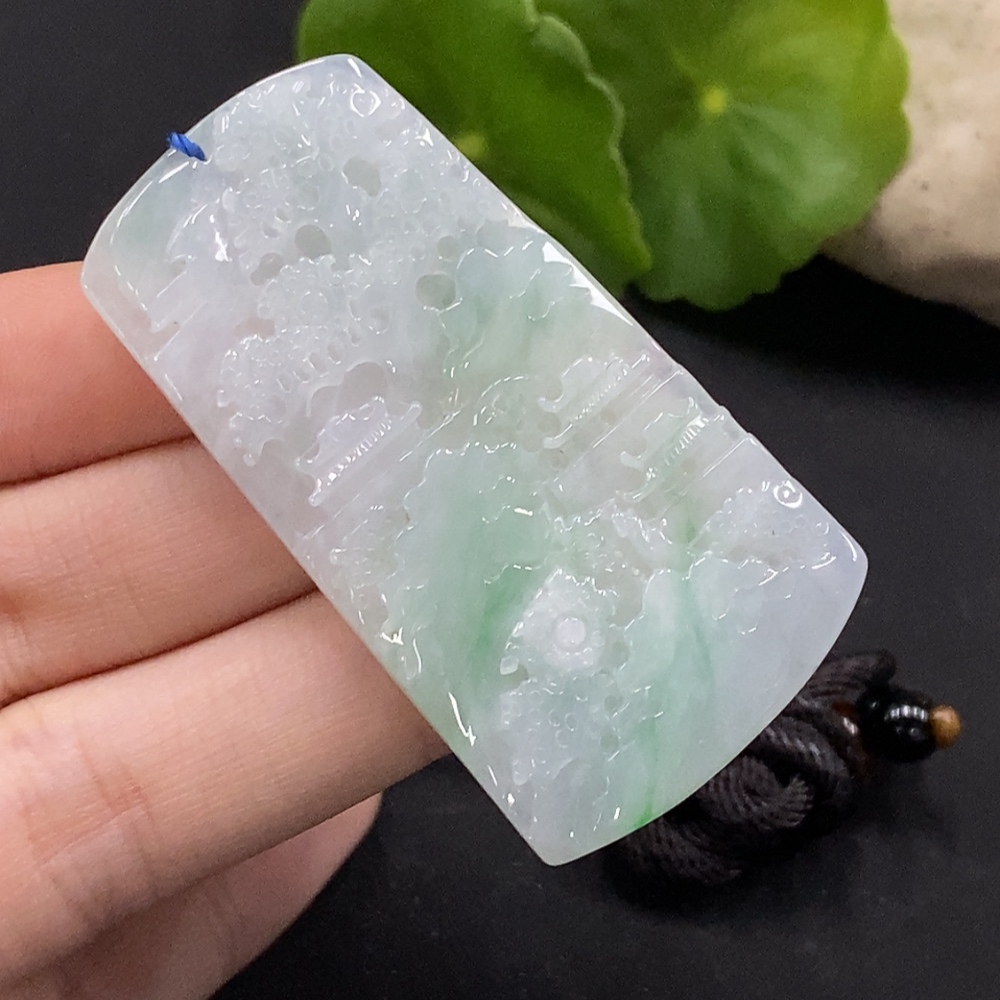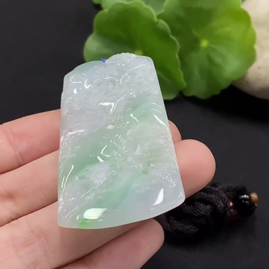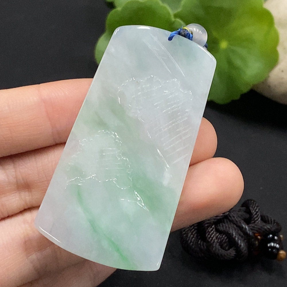 Jadeite Pendant Landscape with Non-A Beads Including Cord Total Weight Approx. 15.51g