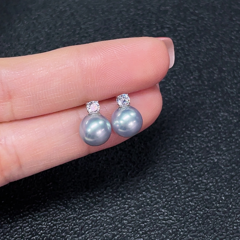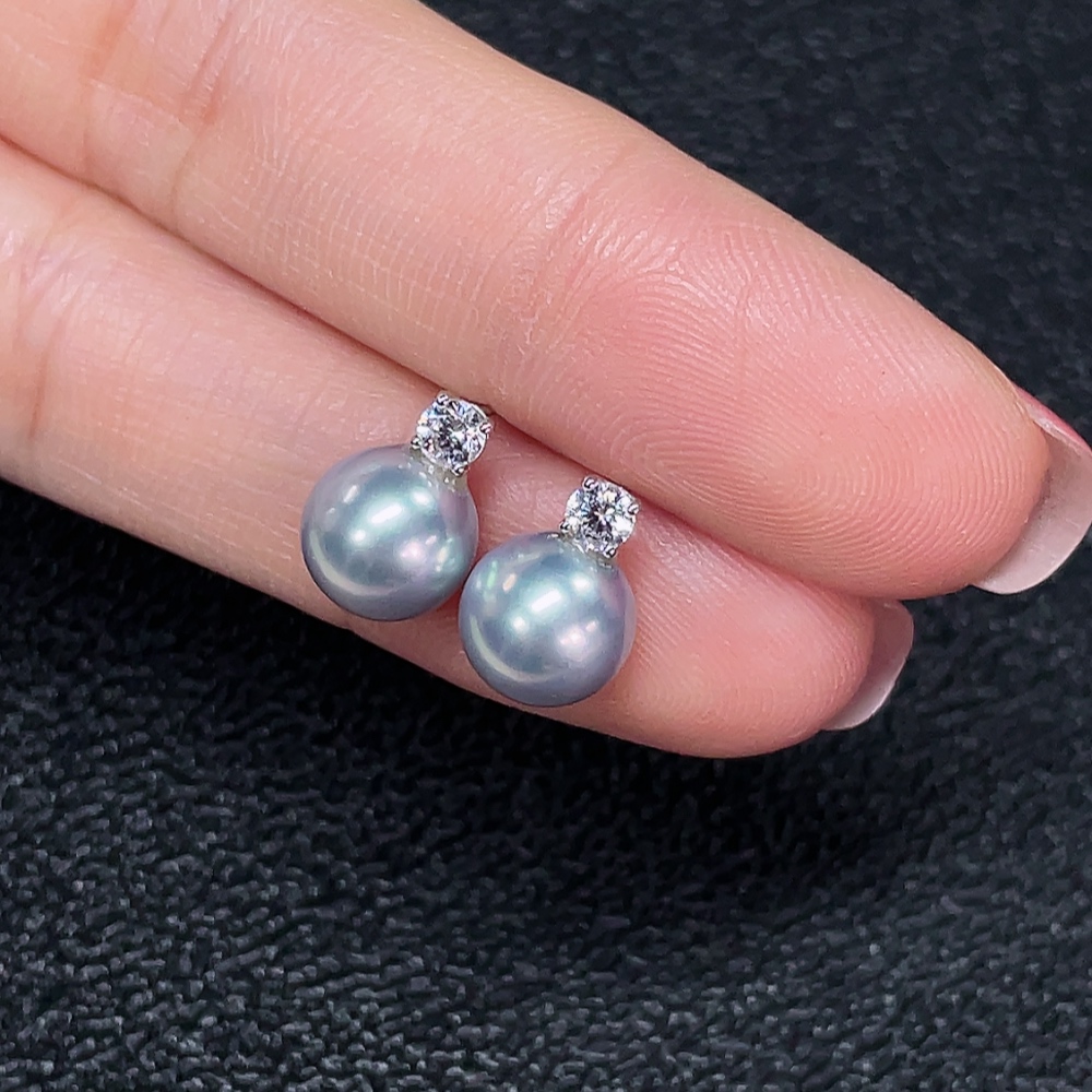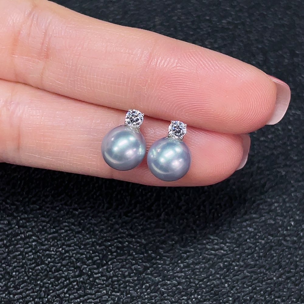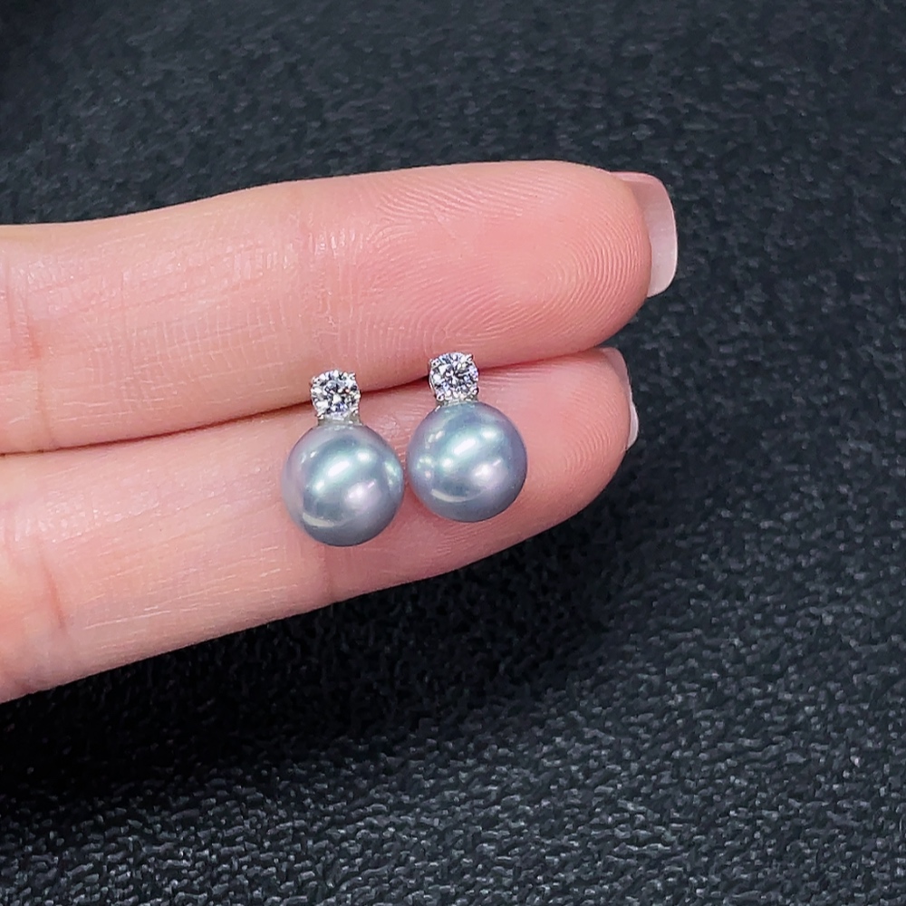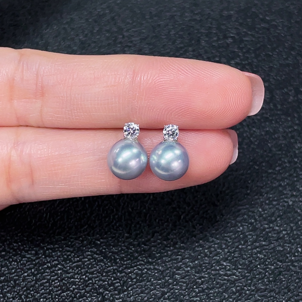 18k seawater pearl earrings, color origin undetermined, total weight approximately 1.75g, size about 7.6mm