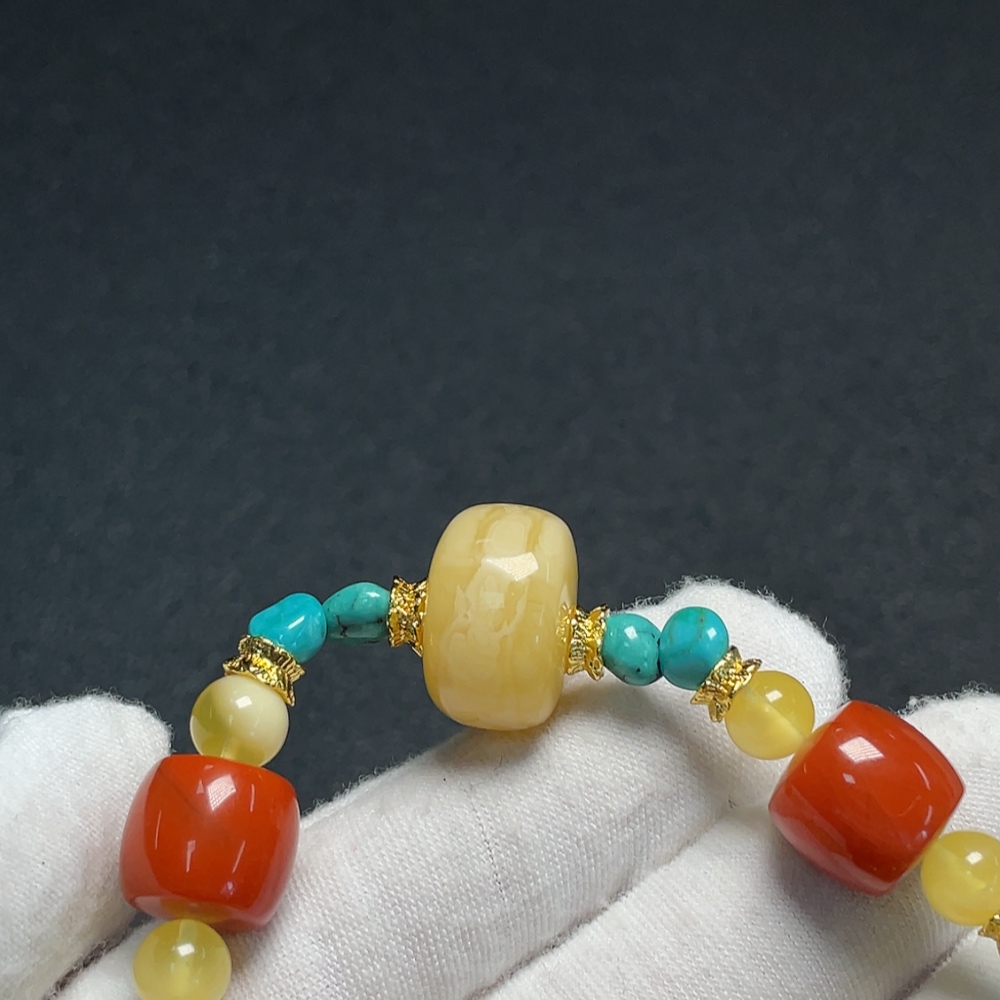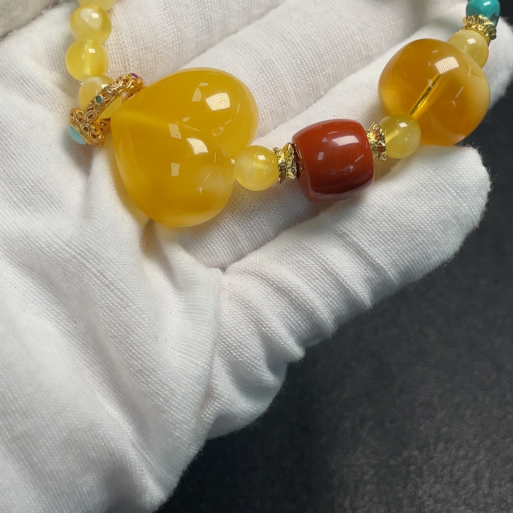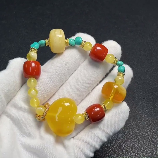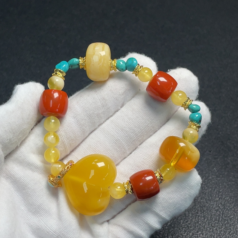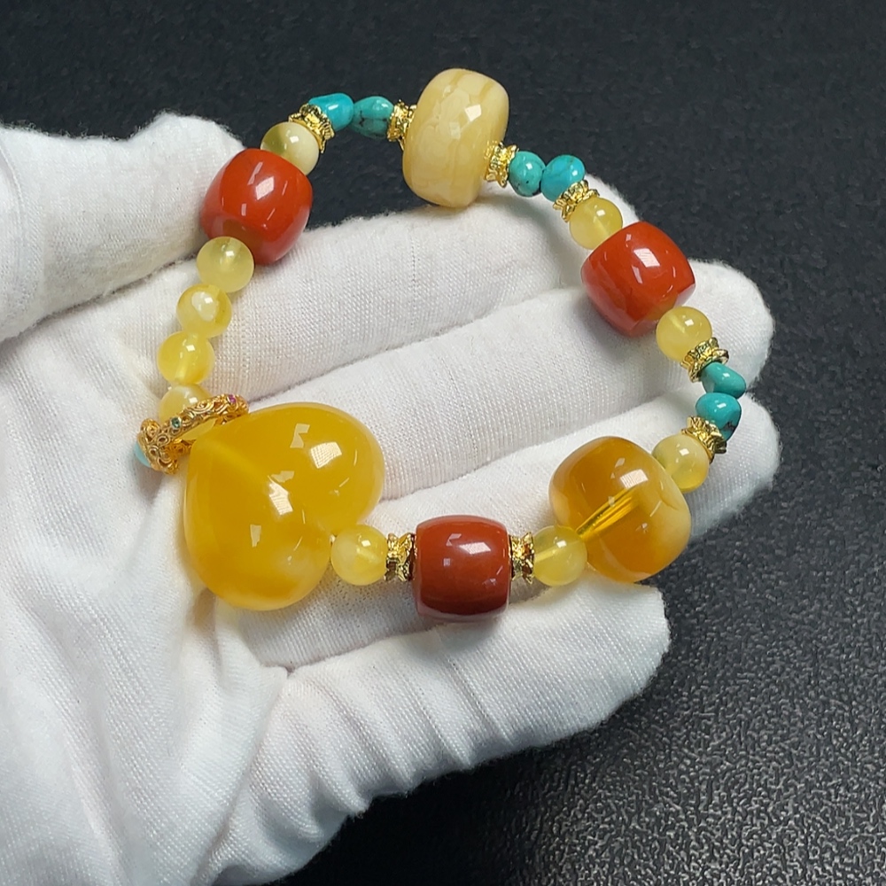 Amber and Beeswax Bracelet with Southern Red Agate (Non-natural Accent Stones, Non-metal, Total Weight Approx. 23.6g, Size 6.9-25.8mm)