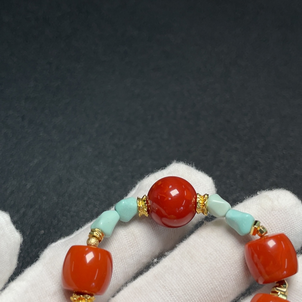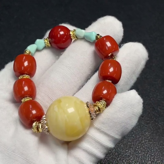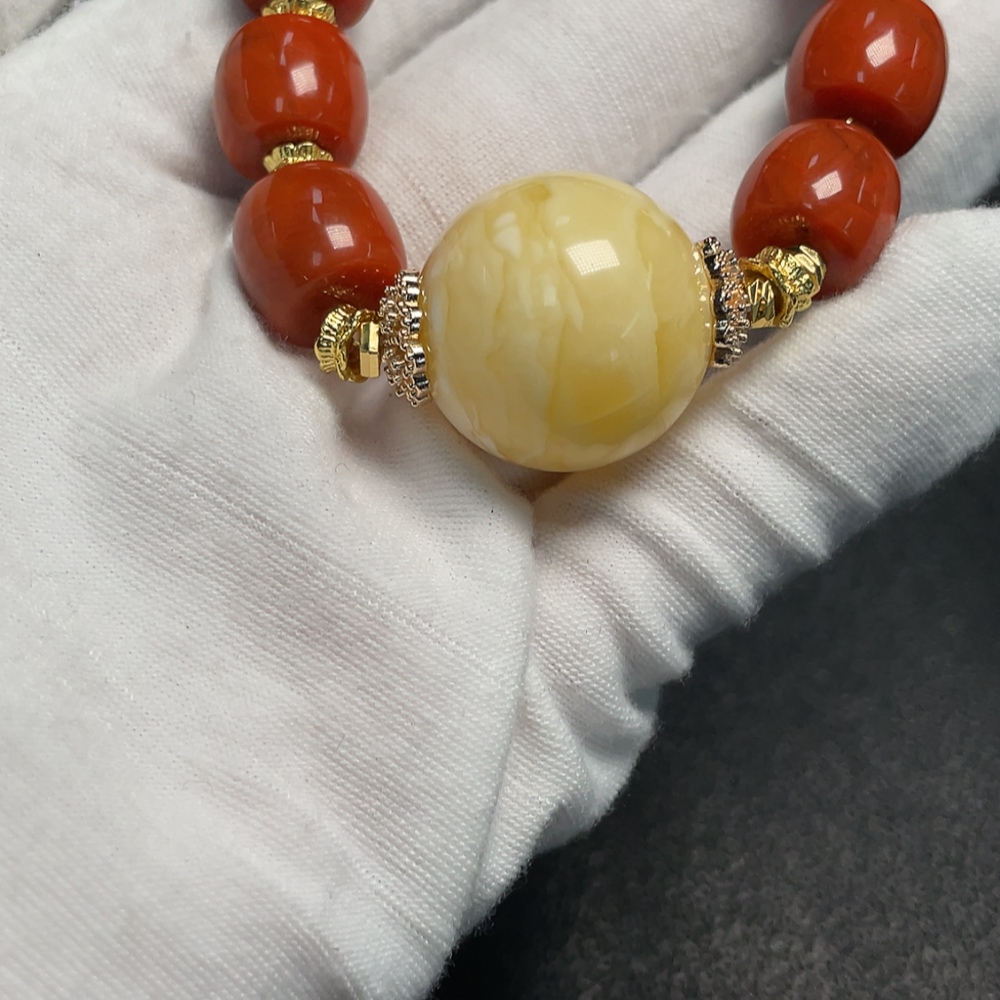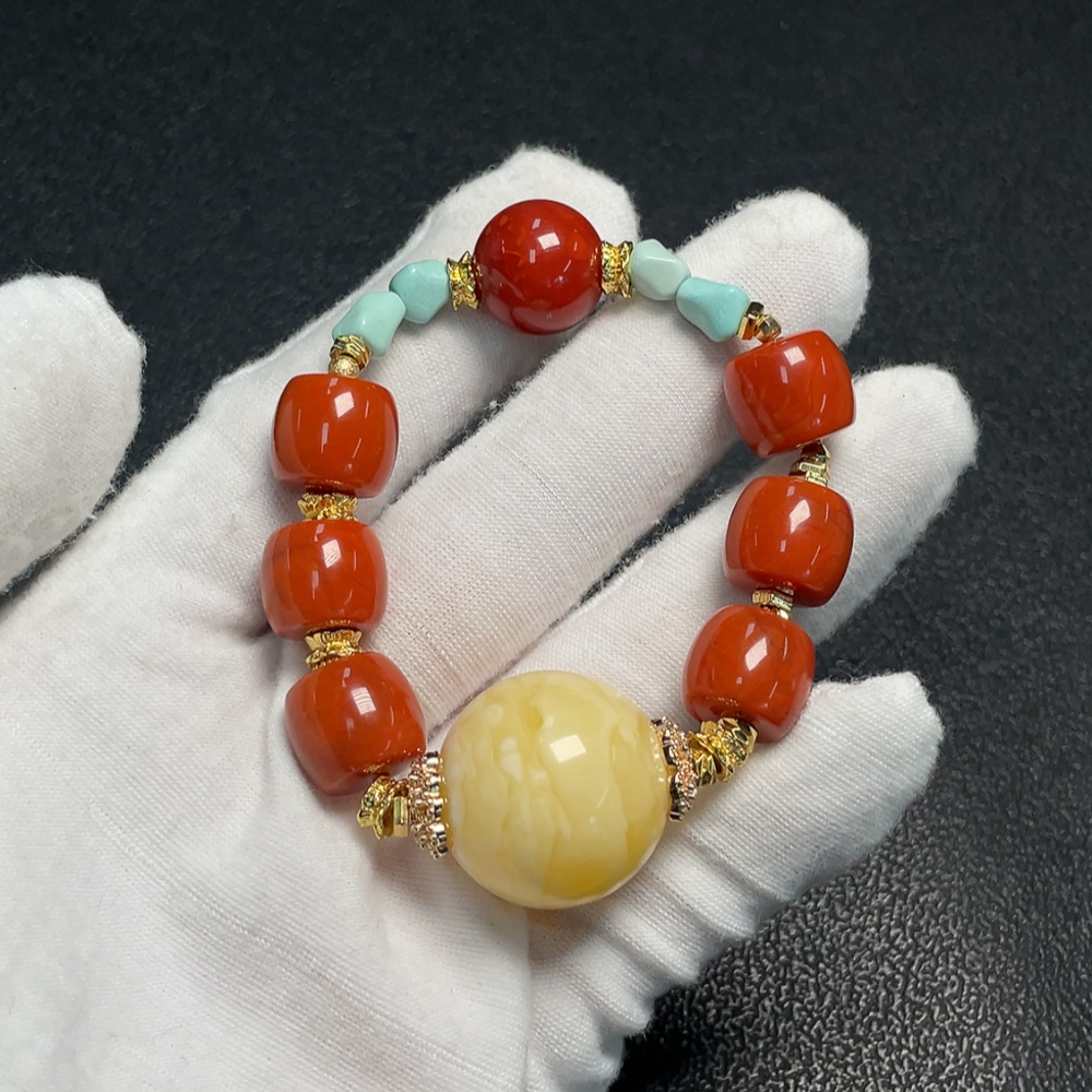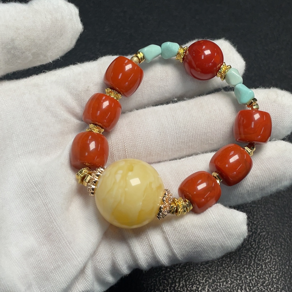 Amber Beeswax Bracelet with Southern Red Agate, Non-Natural Accent Stones, Non-Gold, Total Weight Approx. 31.53g, Size About 21.6mm
