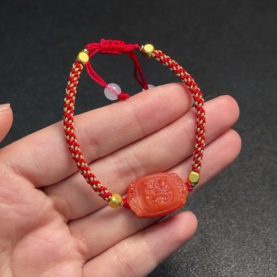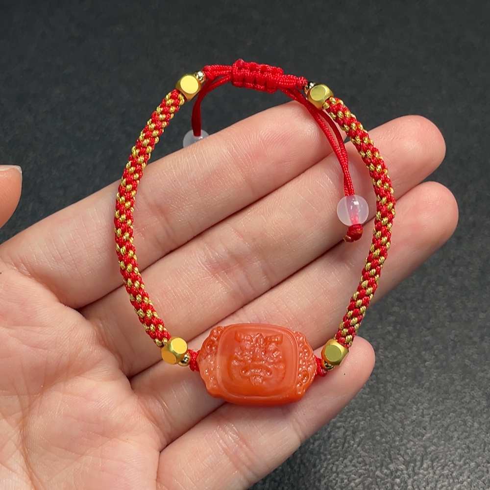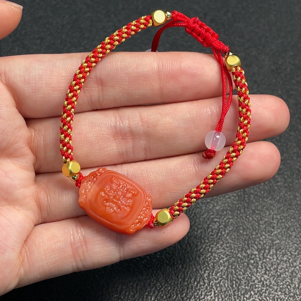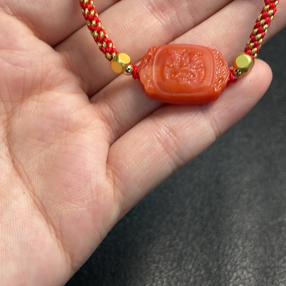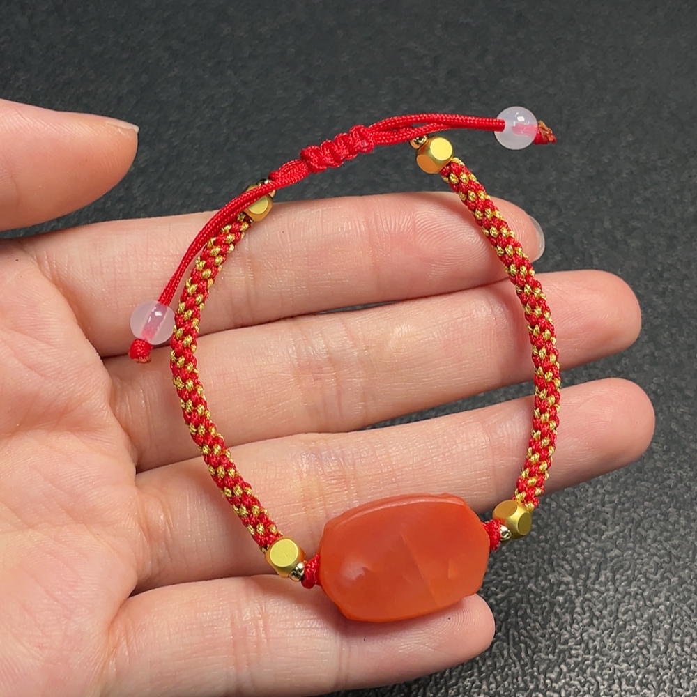 Red Agate Bracelet Non-Gold Visible Organic Matter Non-Natural Consideration for Accent Stones Total Weight Approx. 5.6g Including Cord