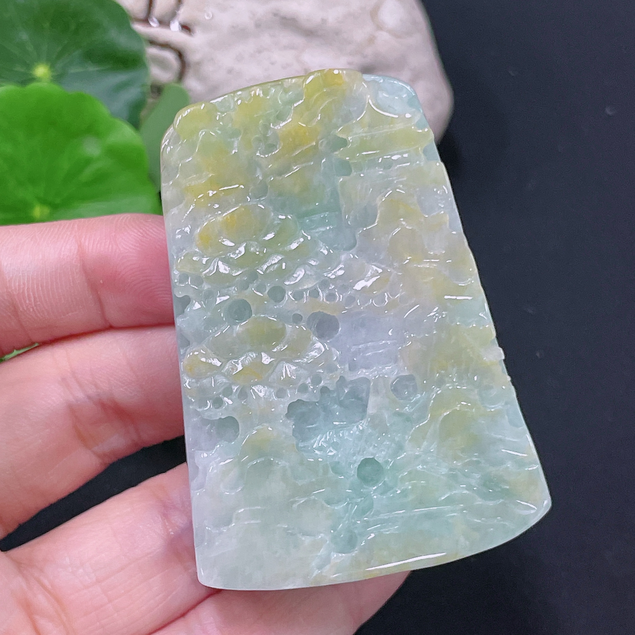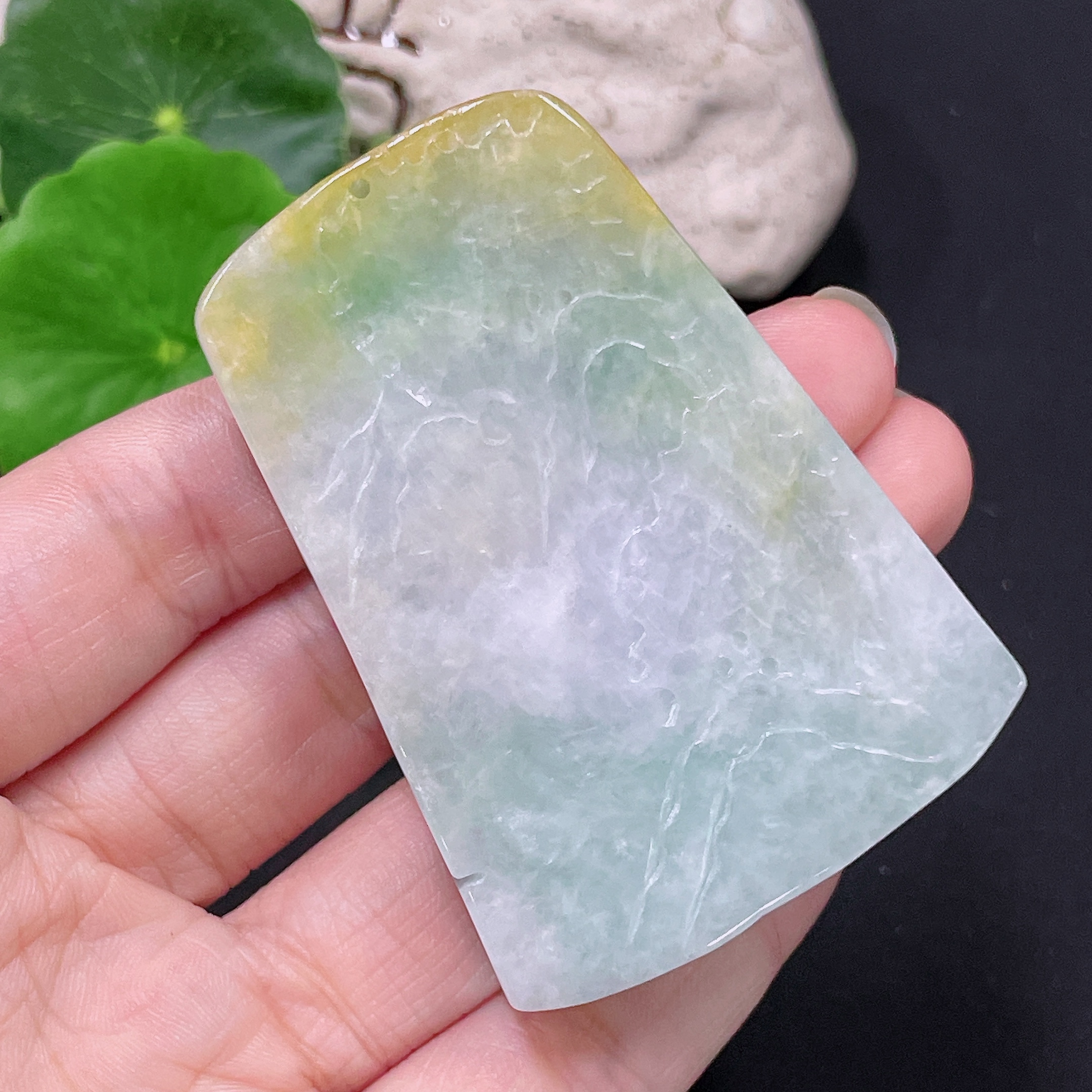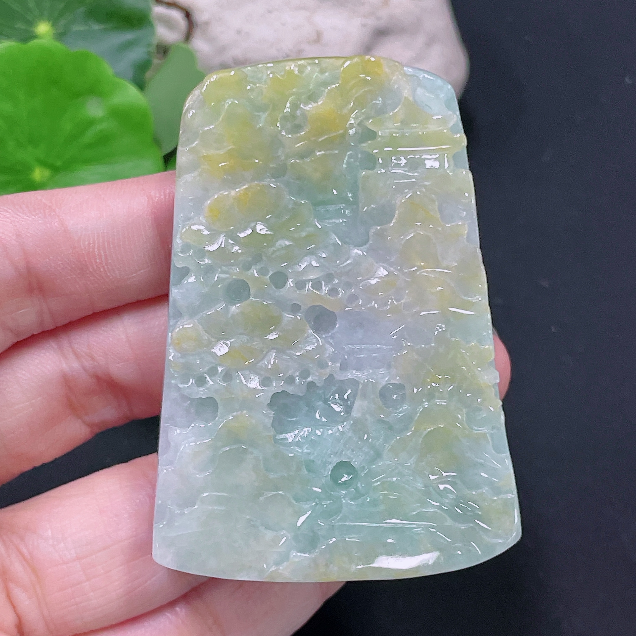 Jadeite landscape plaque pendant with a total weight of approximately 89.5g (color origin undetermined)