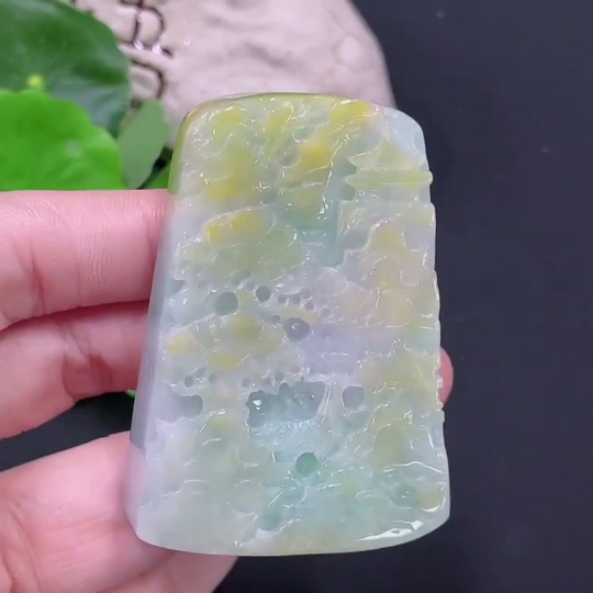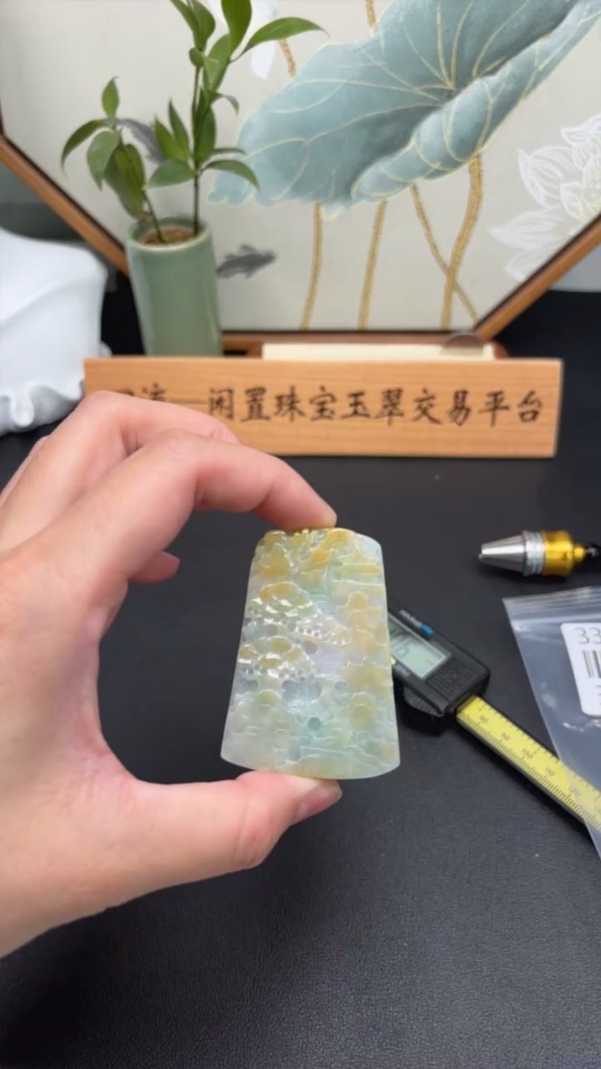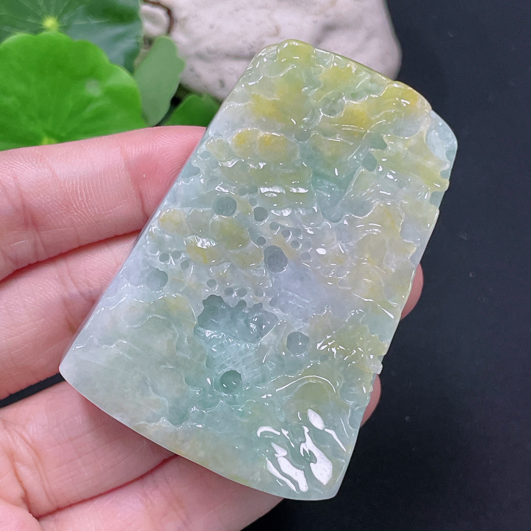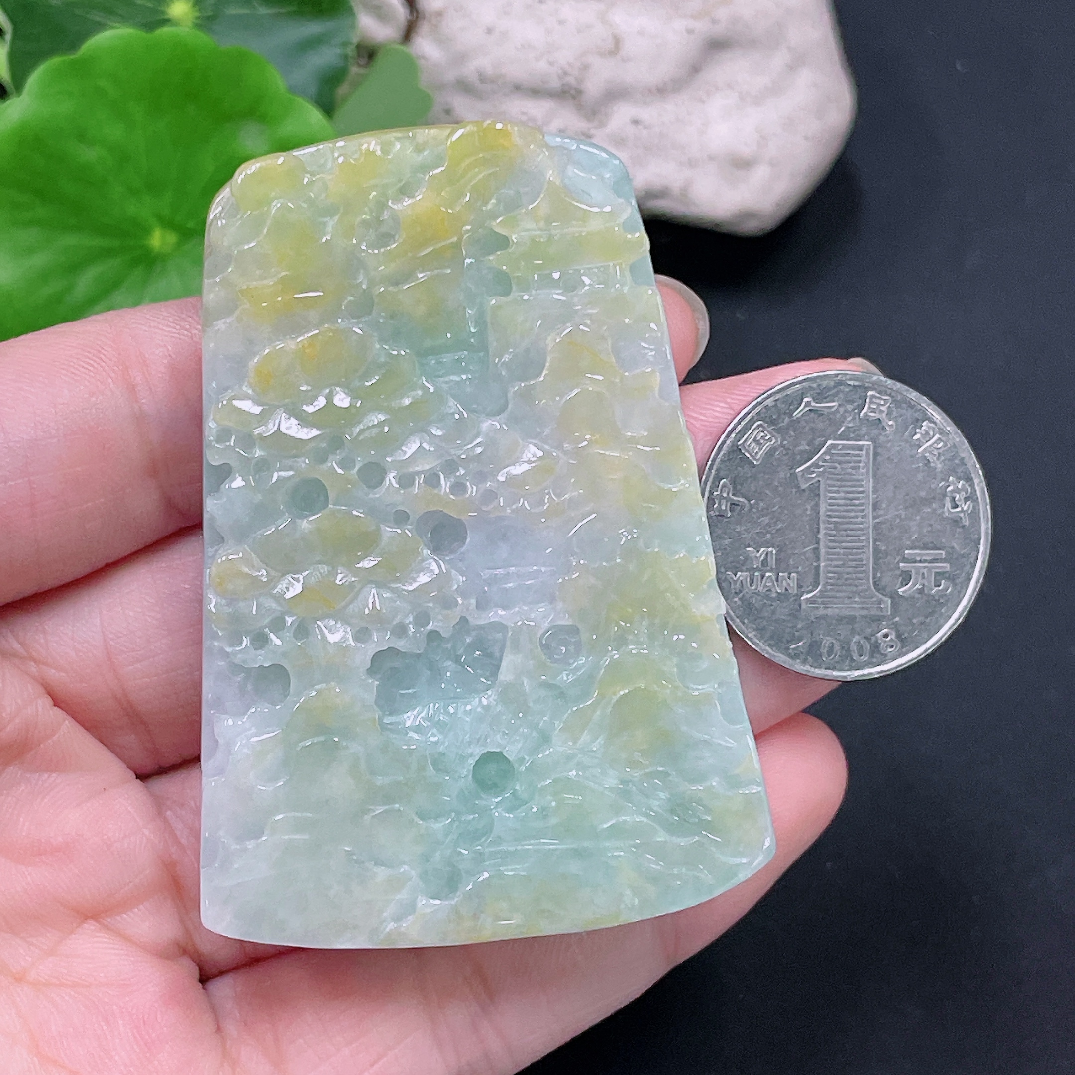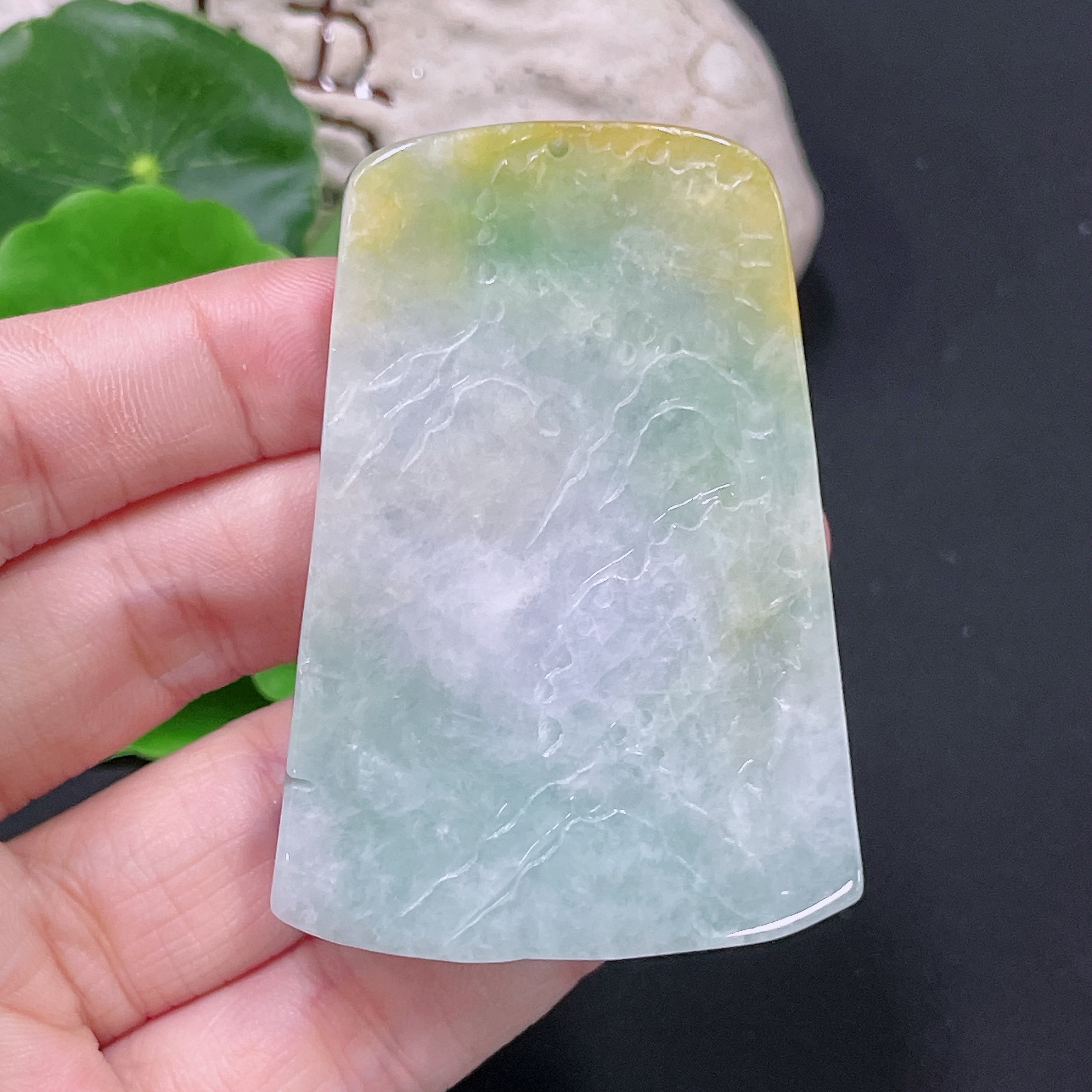 Jadeite landscape plaque pendant with a total weight of approximately 89.5g (color origin undetermined)