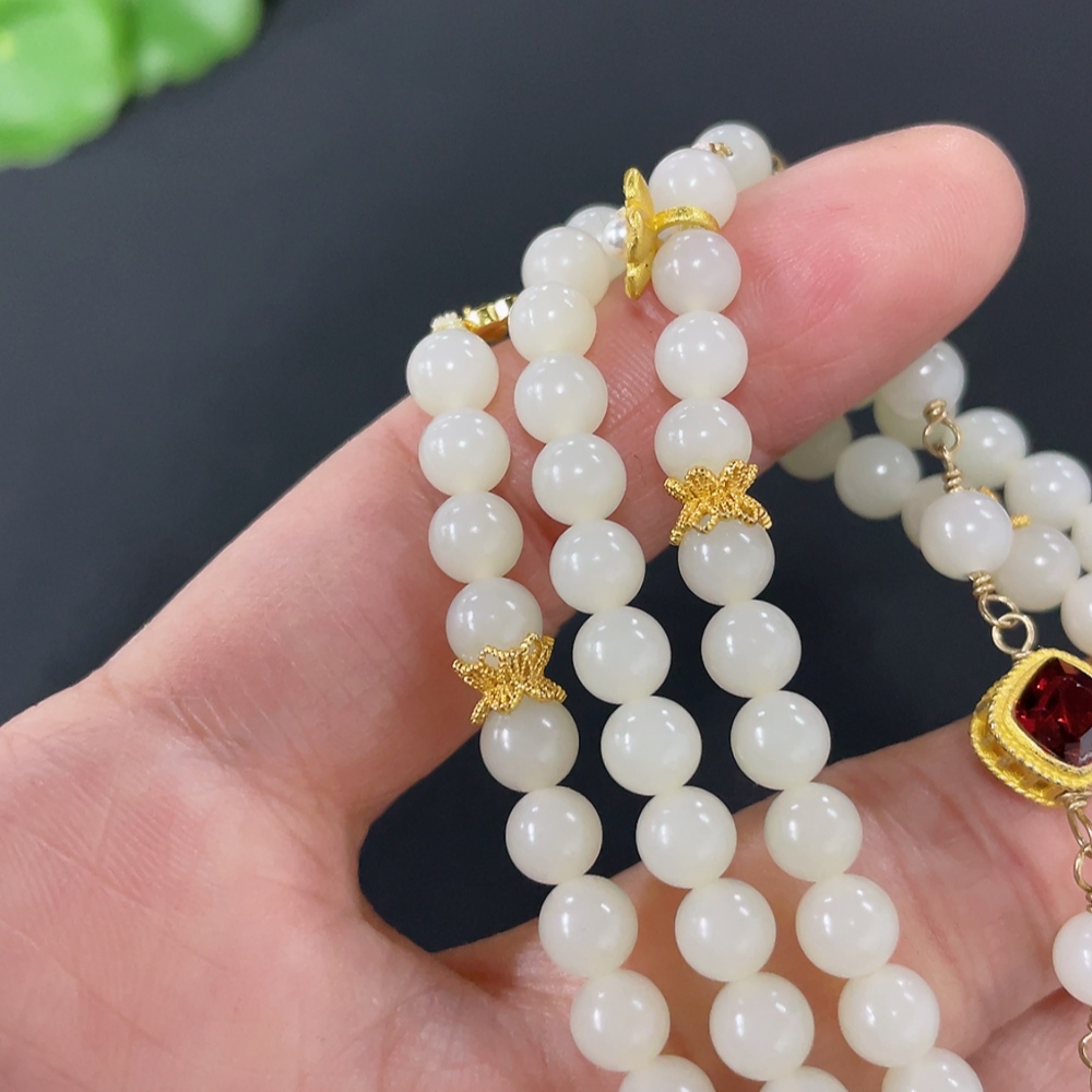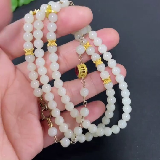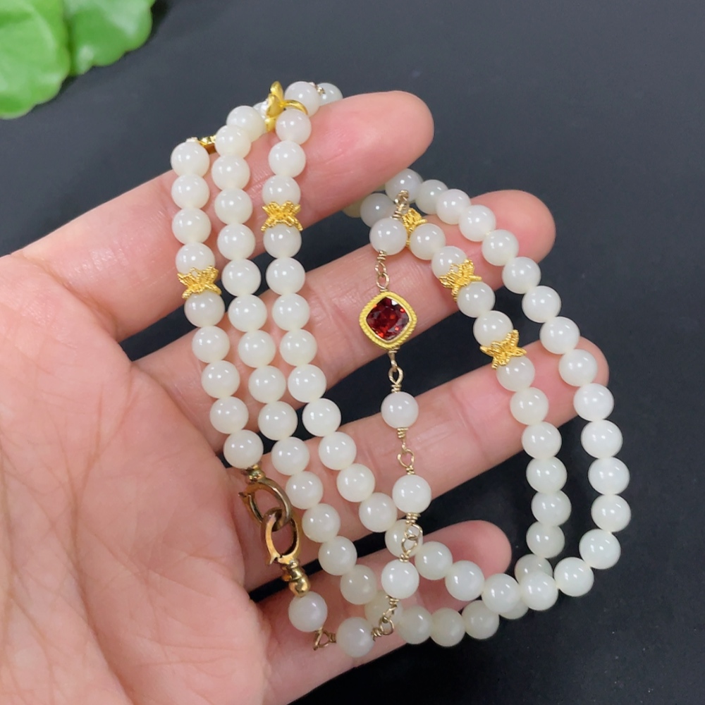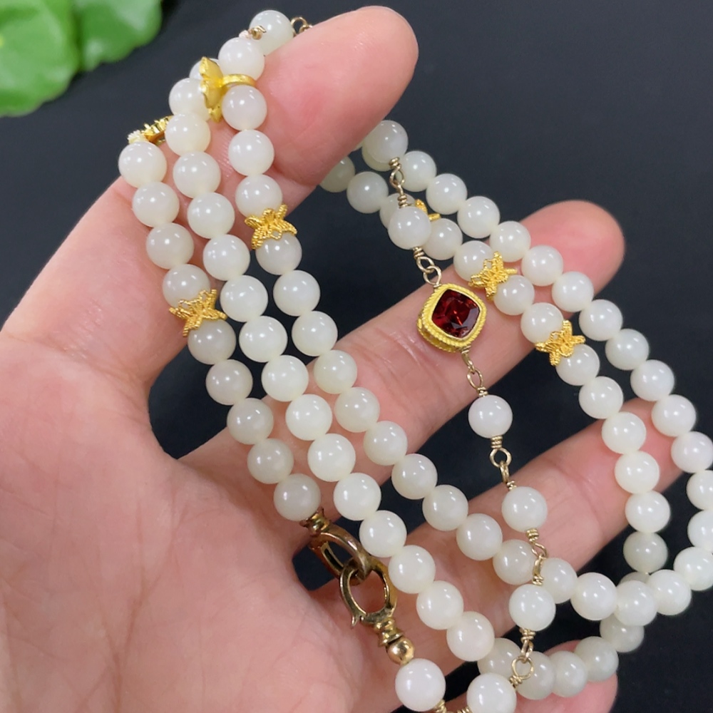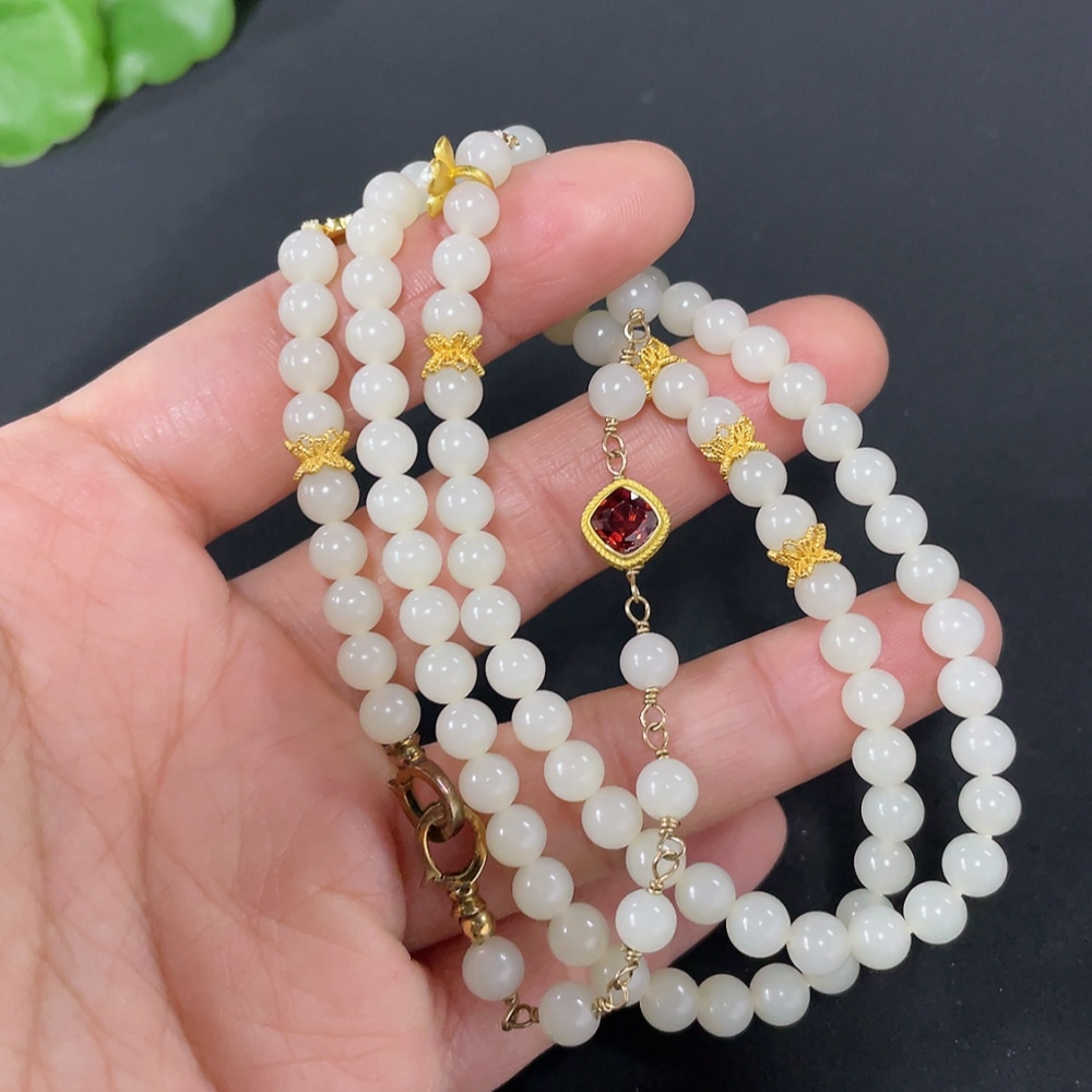 Hetian Jade Bead Necklace, Approx. 4.8mm, Non-Gold Inlaid, Total Weight Approx. 21.2g, Accessories Not Hetian Jade