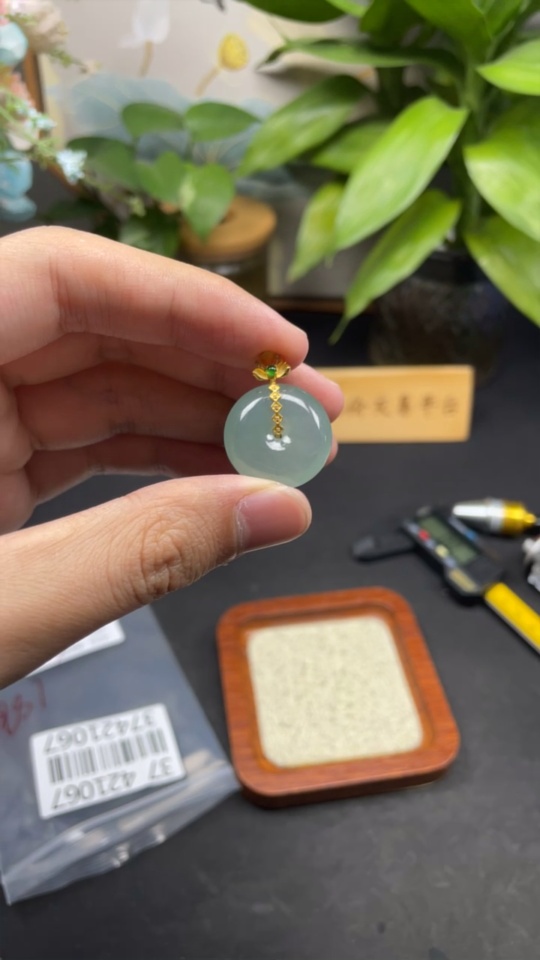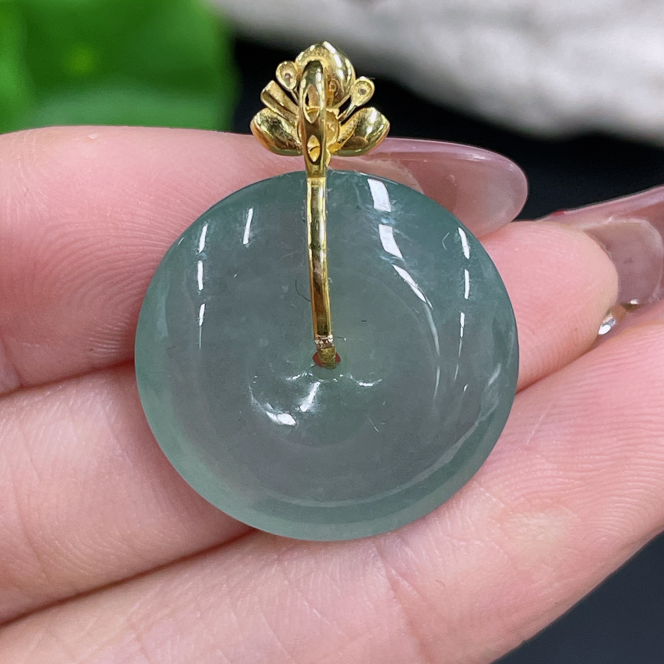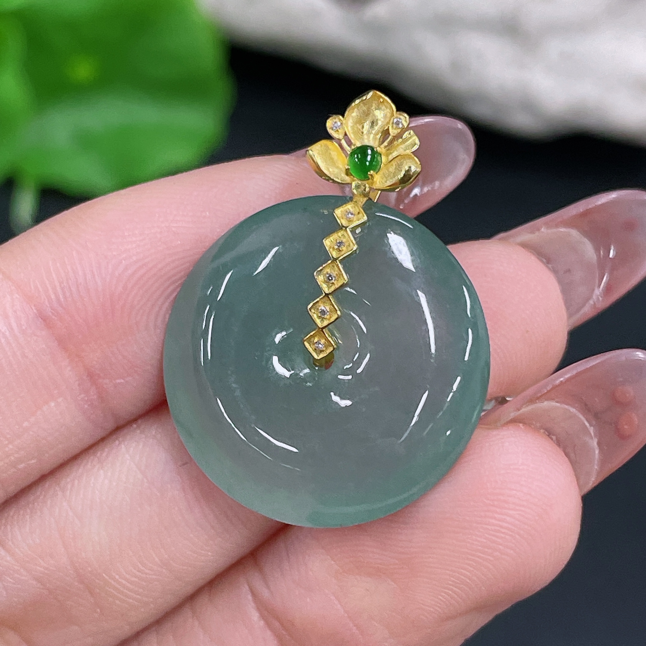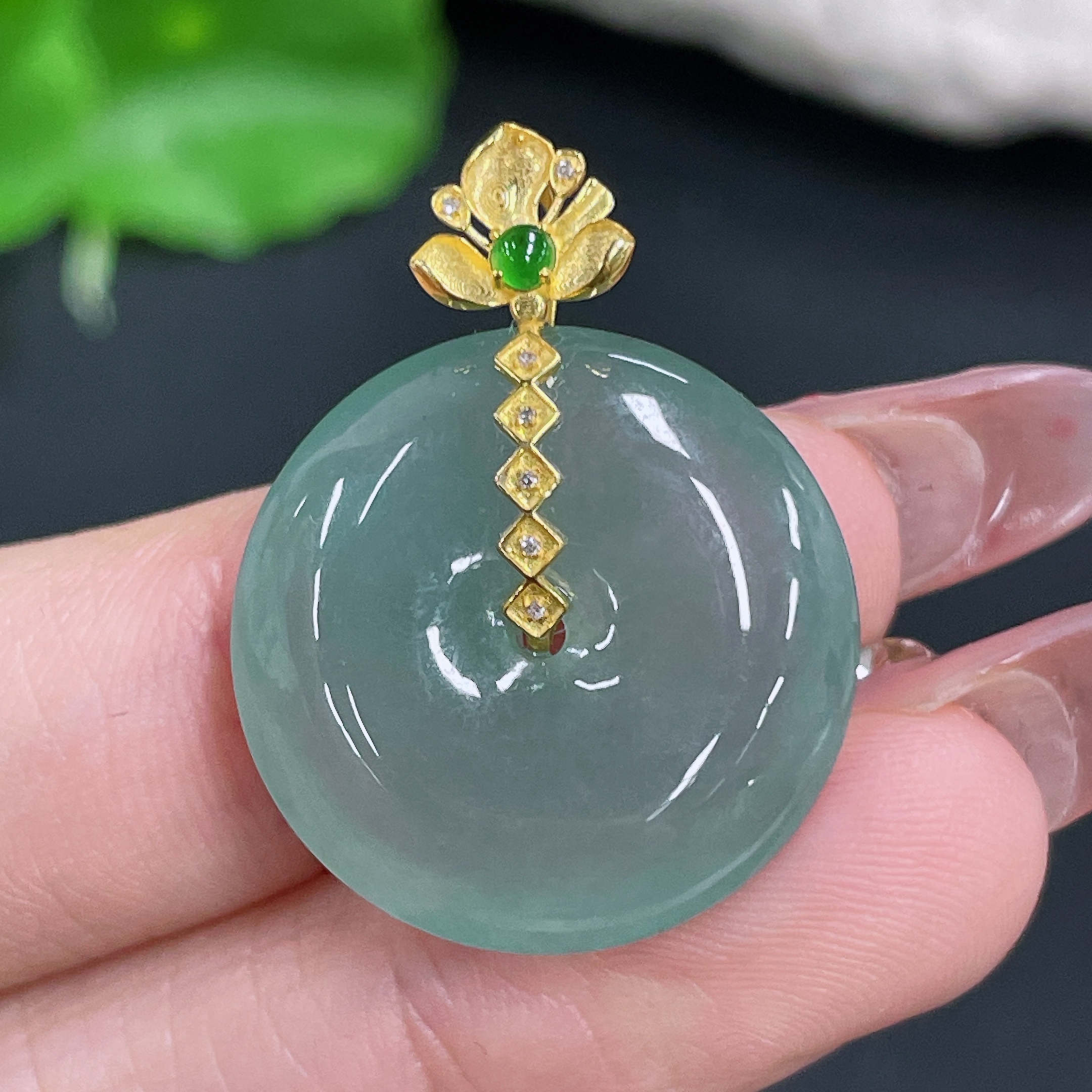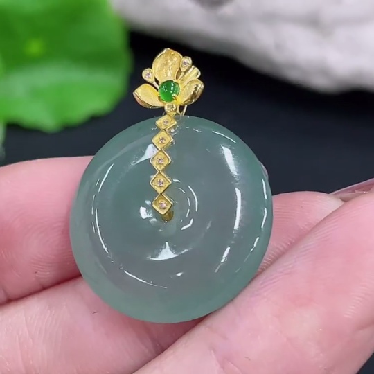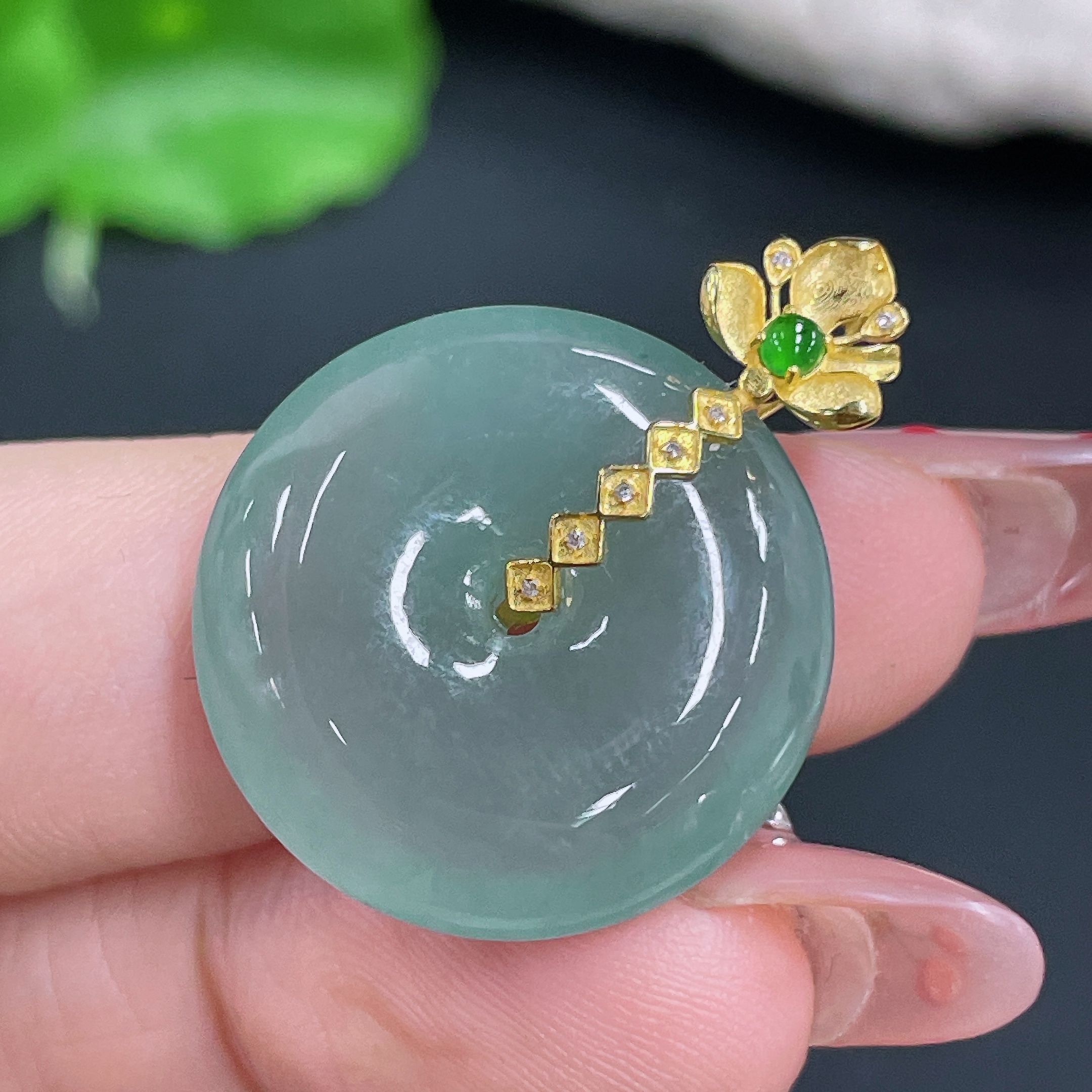 Jadeite Pendant with 18k Clasp, Total Weight Approx. 5.41g, Set with Diamonds