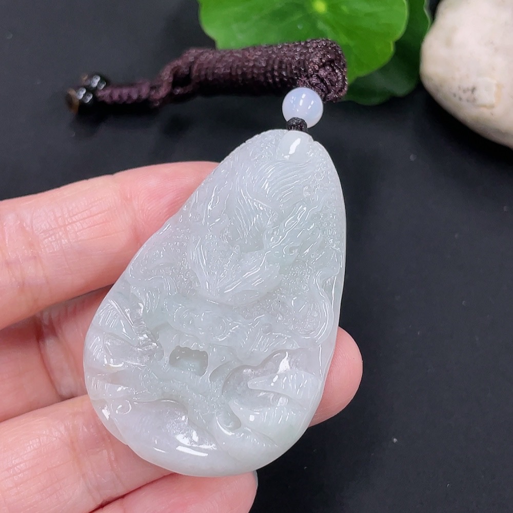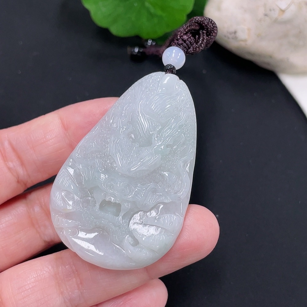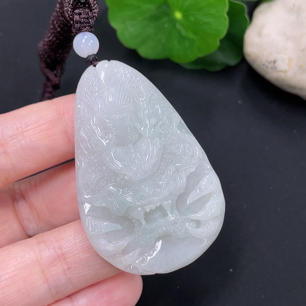 Jadeite Dragon Pendant Total Weight Approx. 27.5g (Including Rope Weight) (Beads Not Grade A)