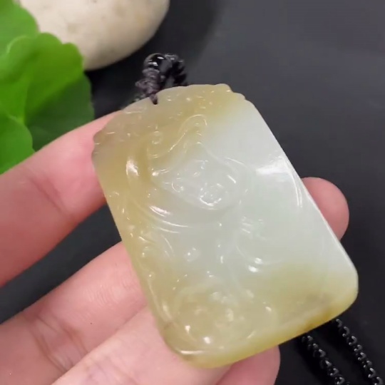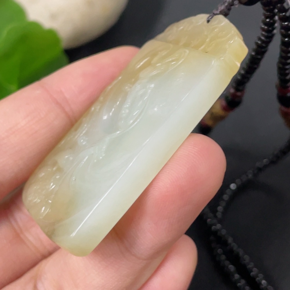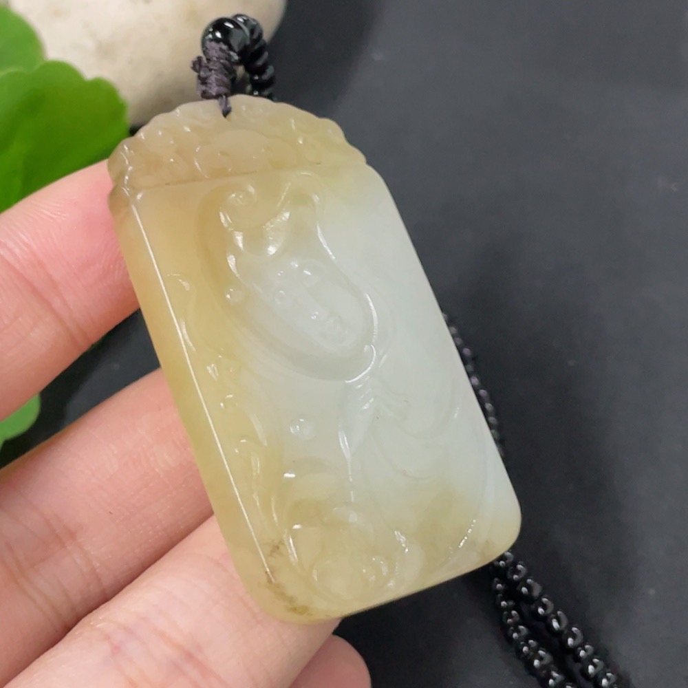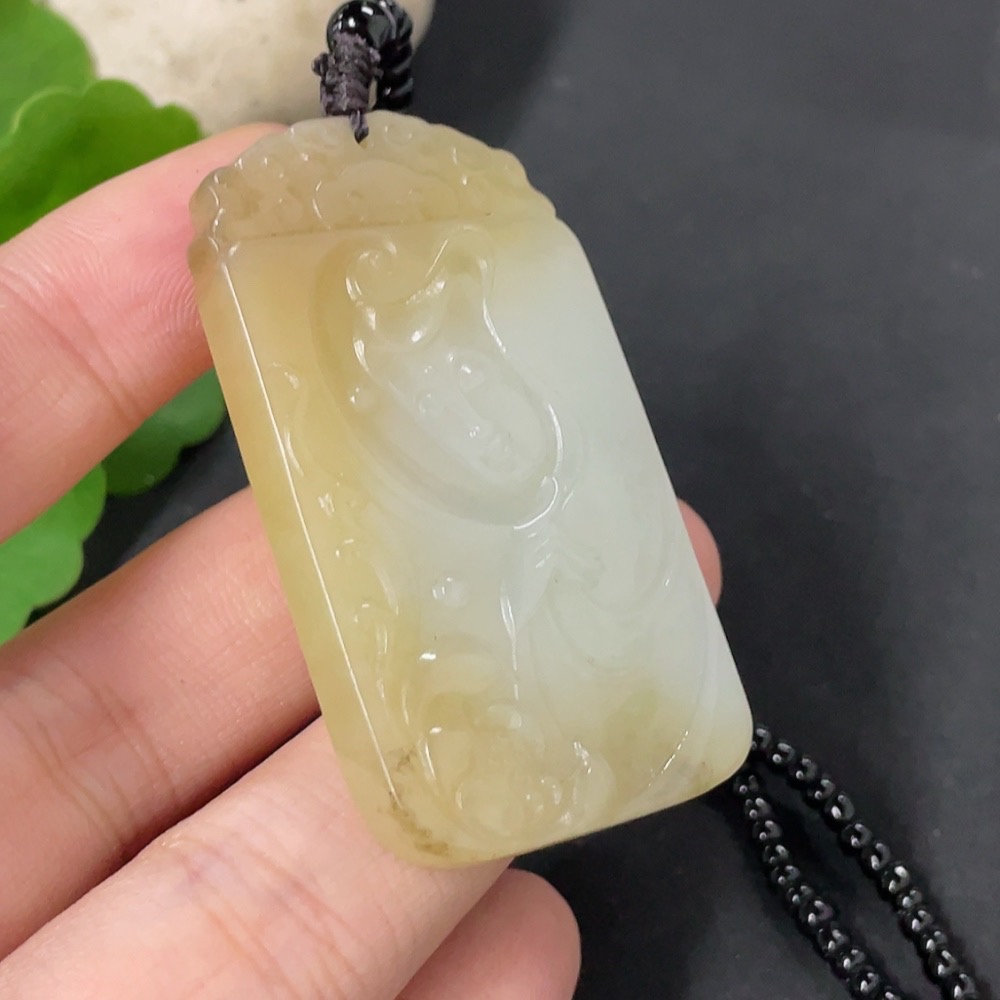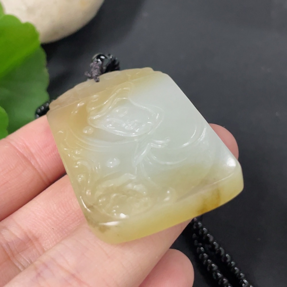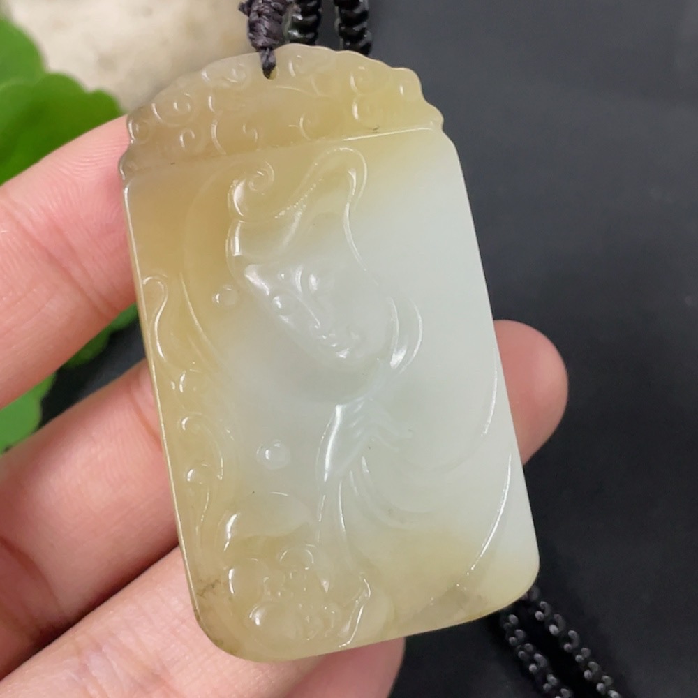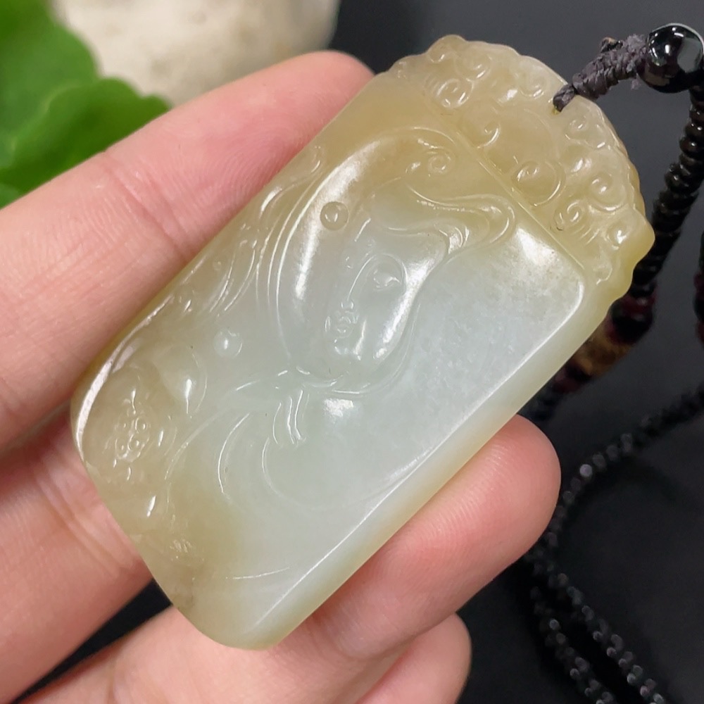 Hetian Jade Pendant Guanyin with Non-Hetian Jade Chain Total Weight Approx. 30.2g (Including Chain)