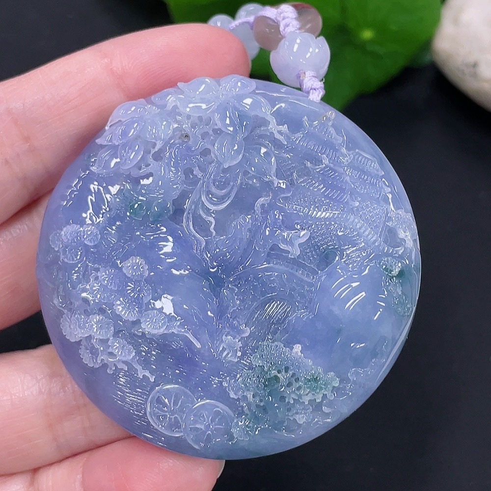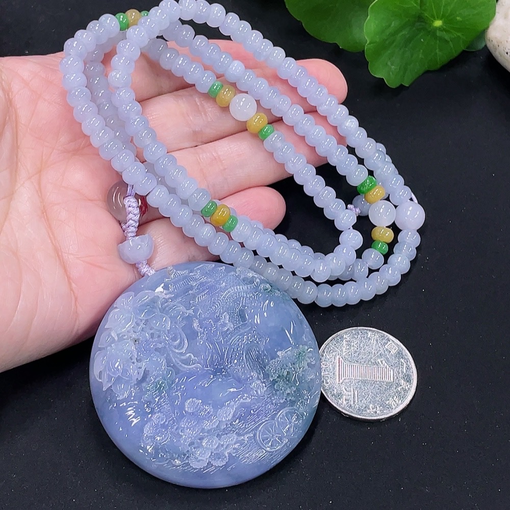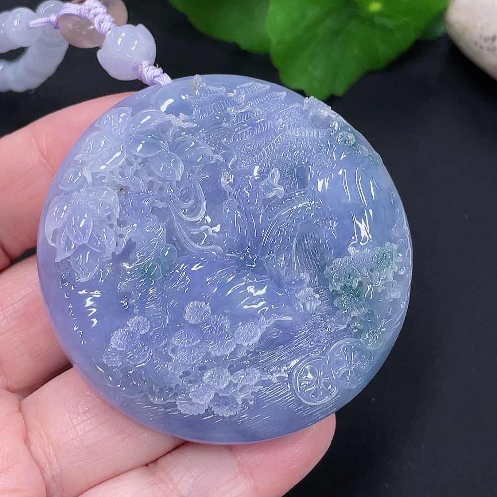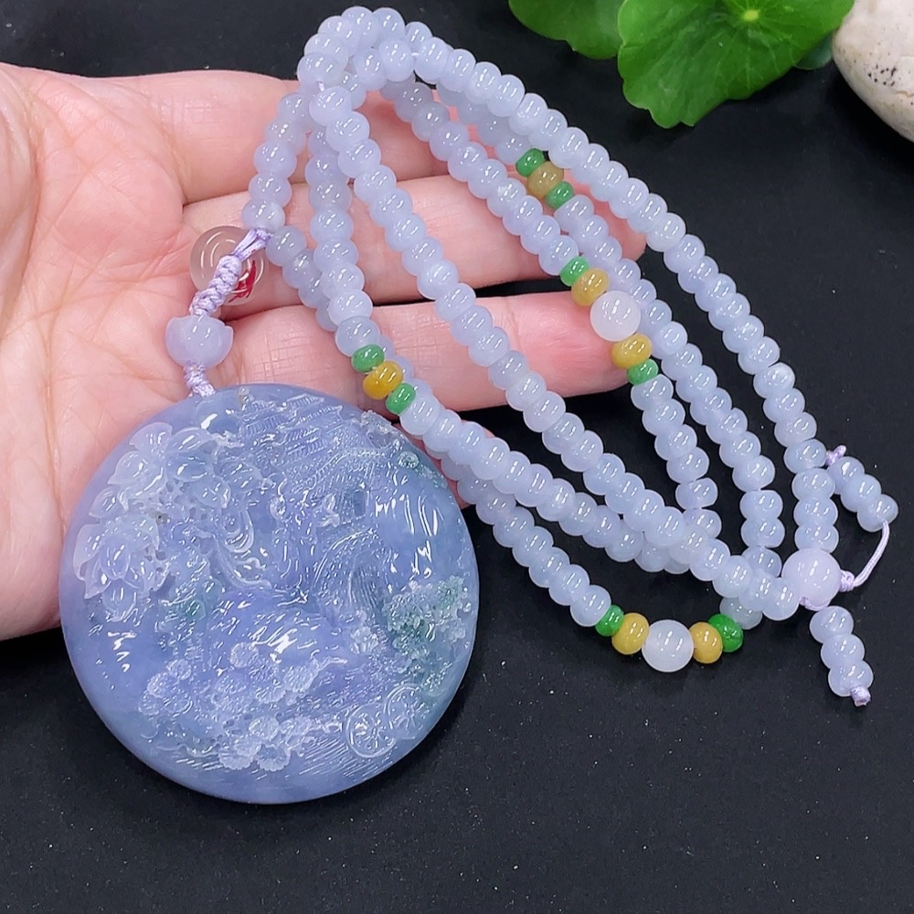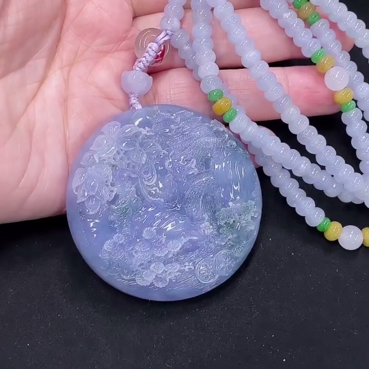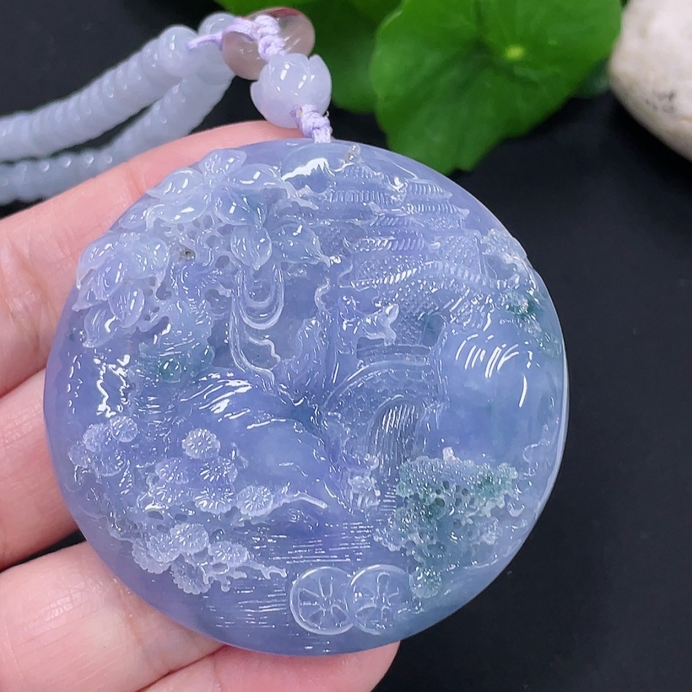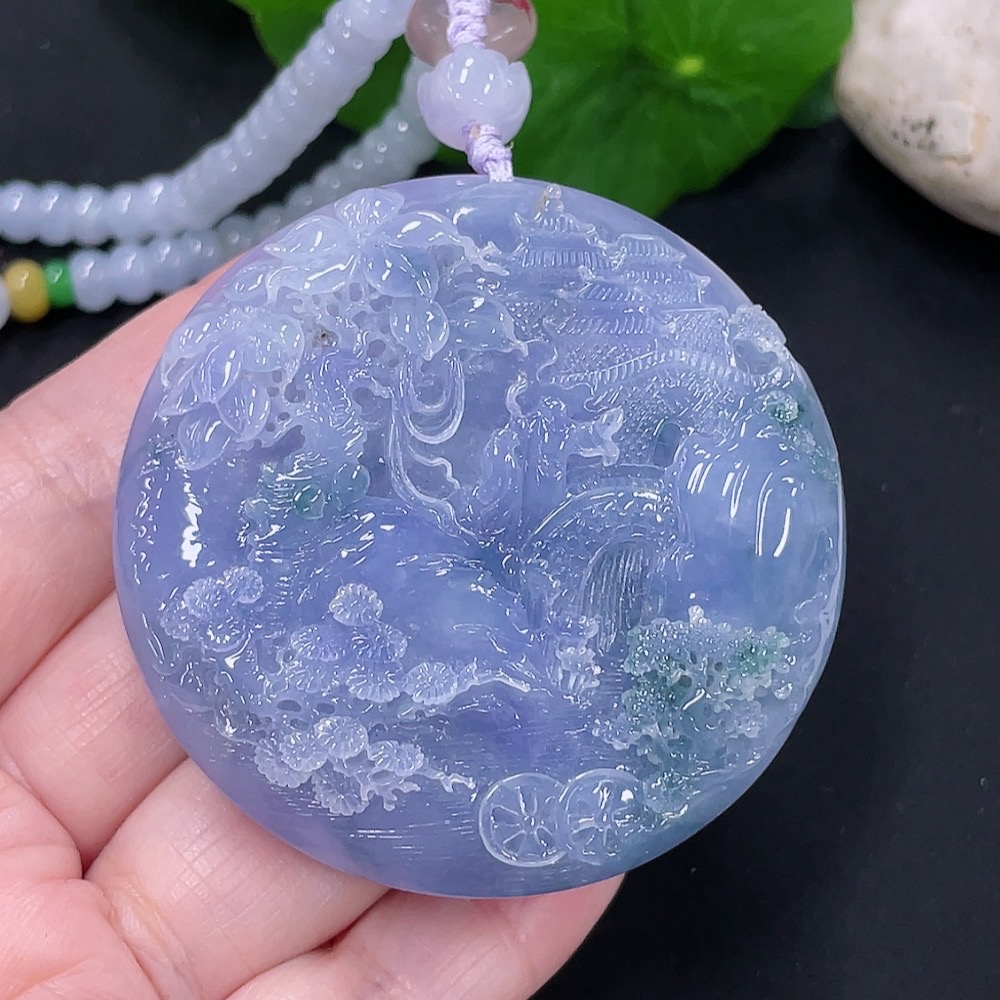 Jadeite Landscape Pendant Total Weight Approx. 107.1g (Including Cord) (Beads Non-A)