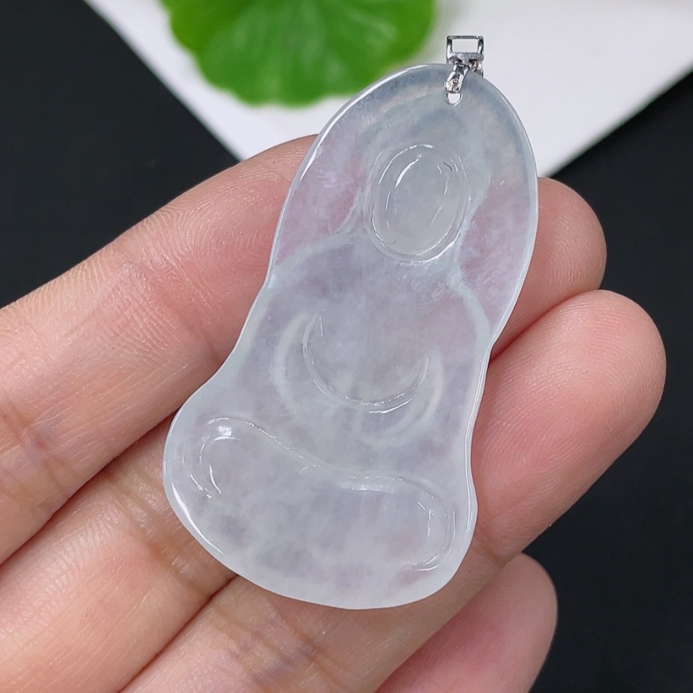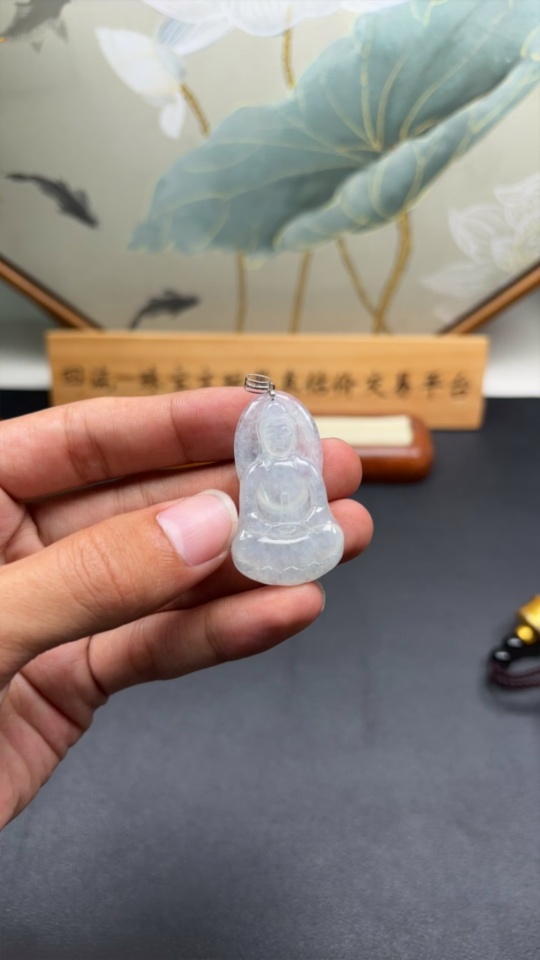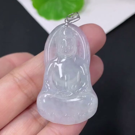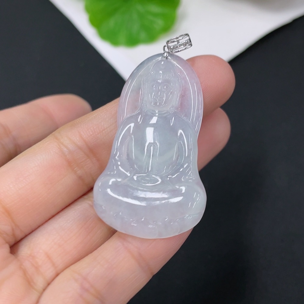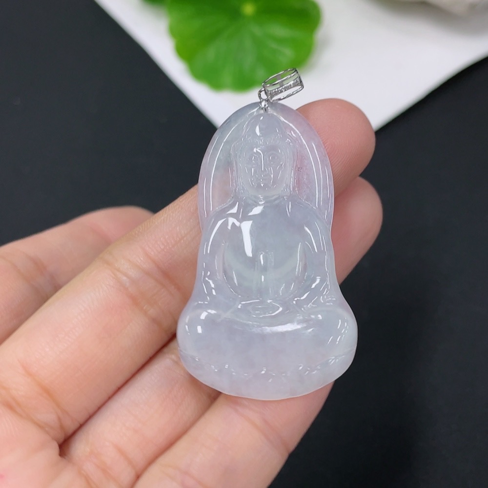 Jadeite Pendant Guanyin with 18K Gold and Diamond Accents, Total Weight Approximately 7.59g