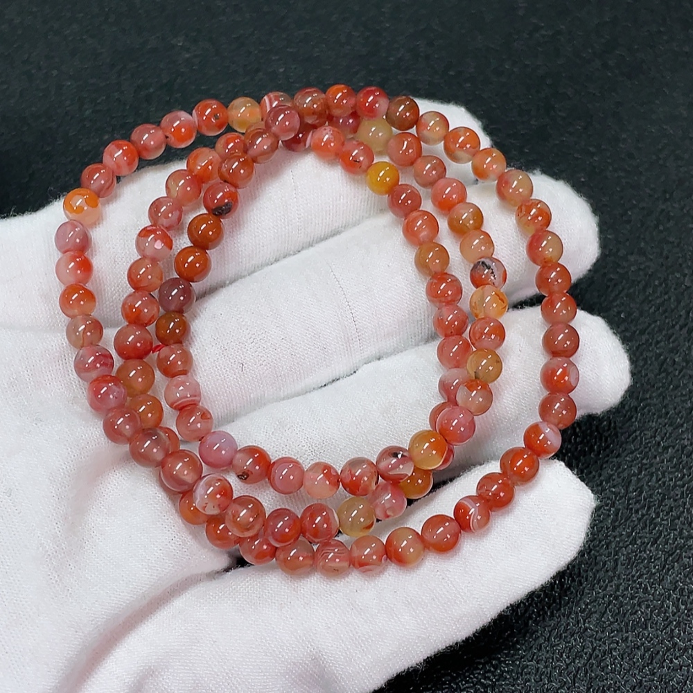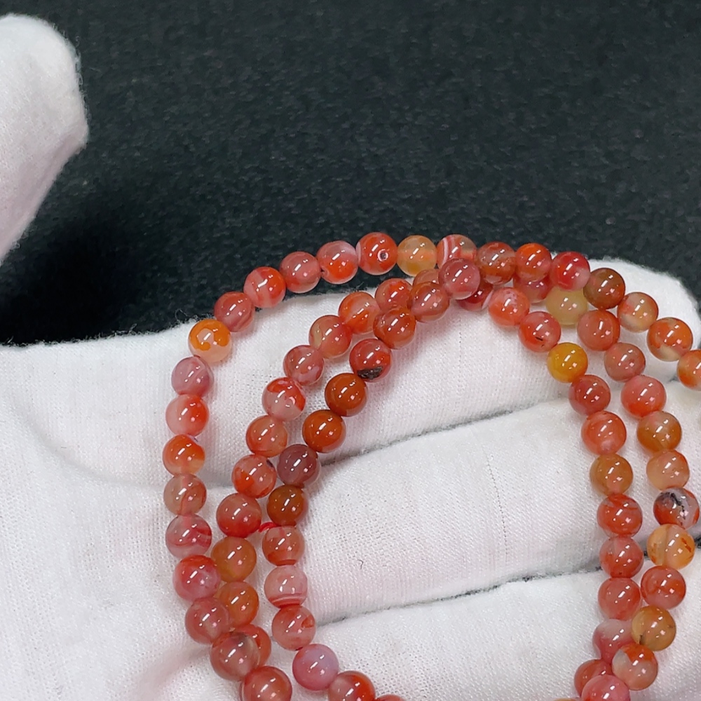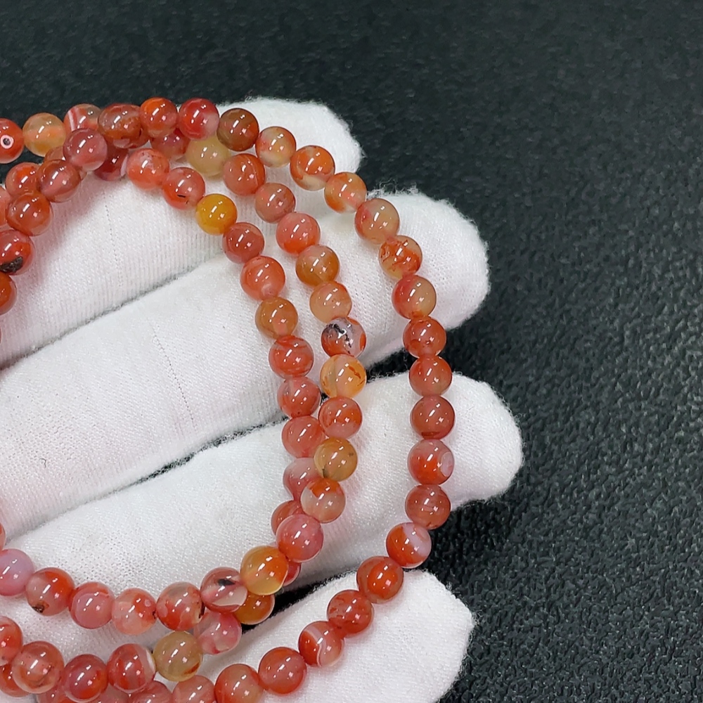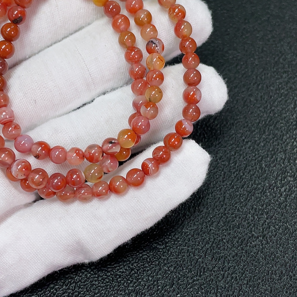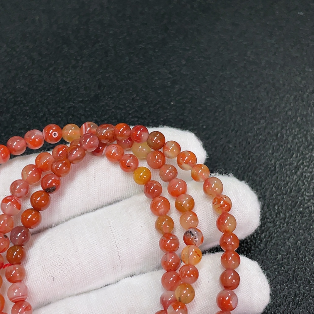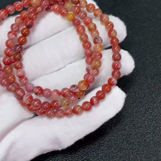 Red Nanhong Agate Bead Strand, Organic Inclusions Visible, Total Weight Approx. 20.15g, Size Approx. 5.1mm