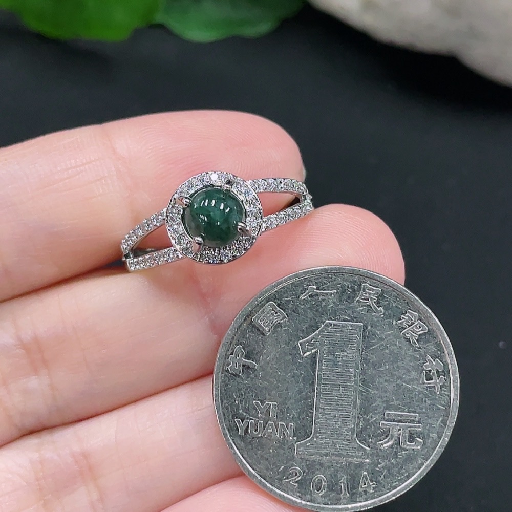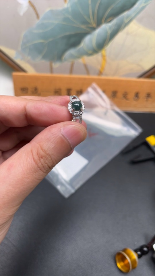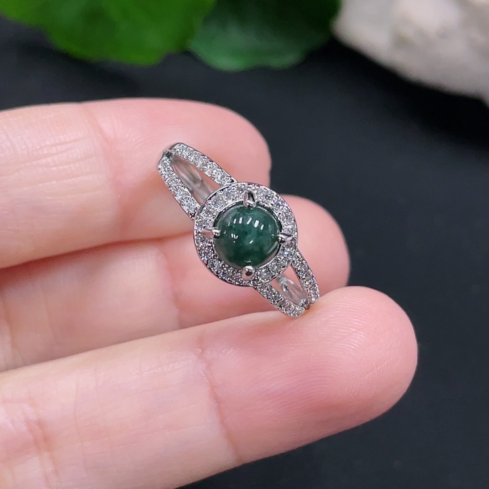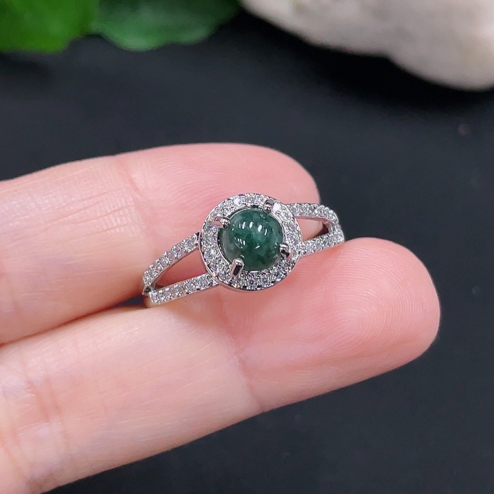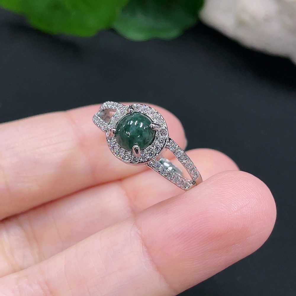 Jadeite Inlaid Ring Total Weight About 2.3g (Non-Gold Inlaid) (Adjustable)