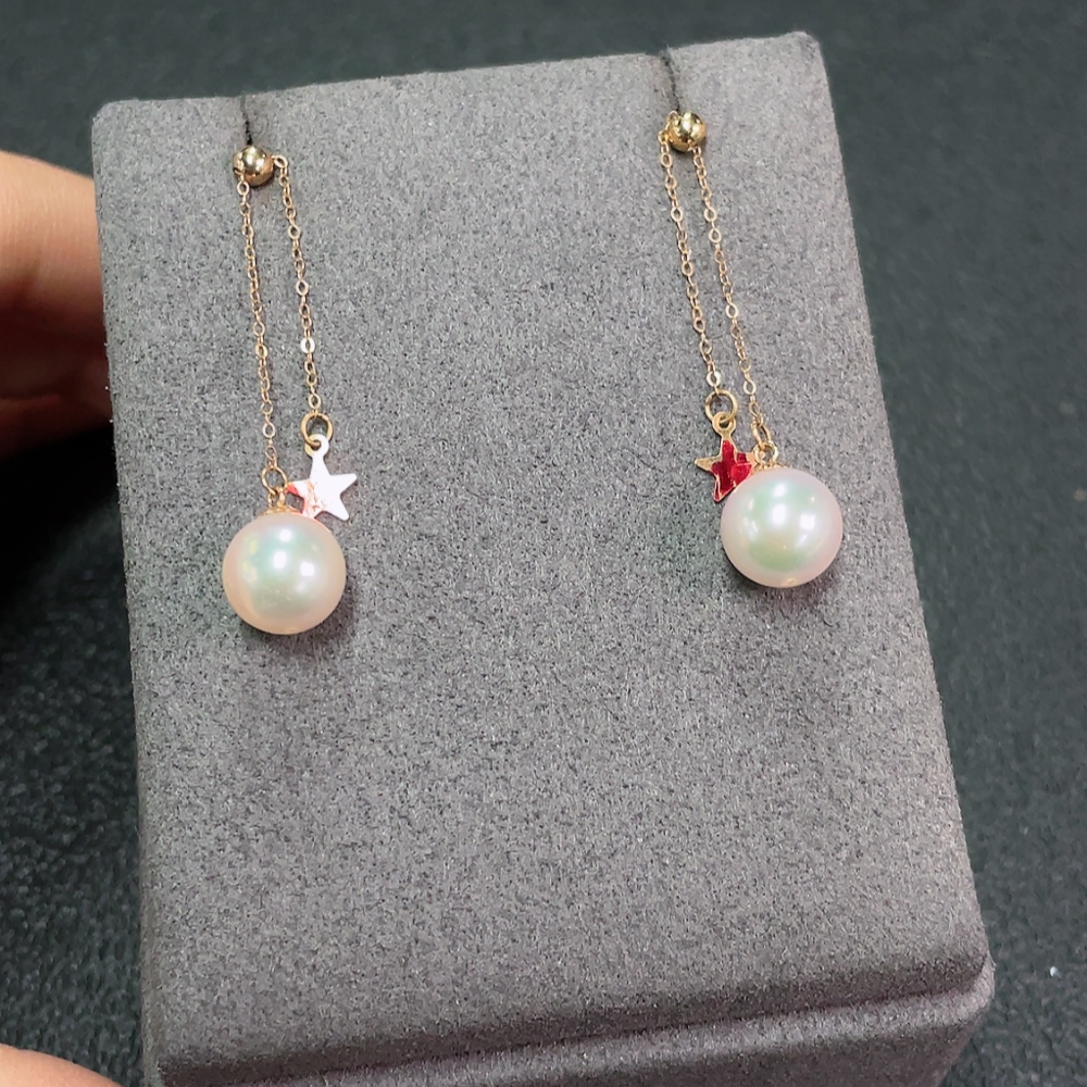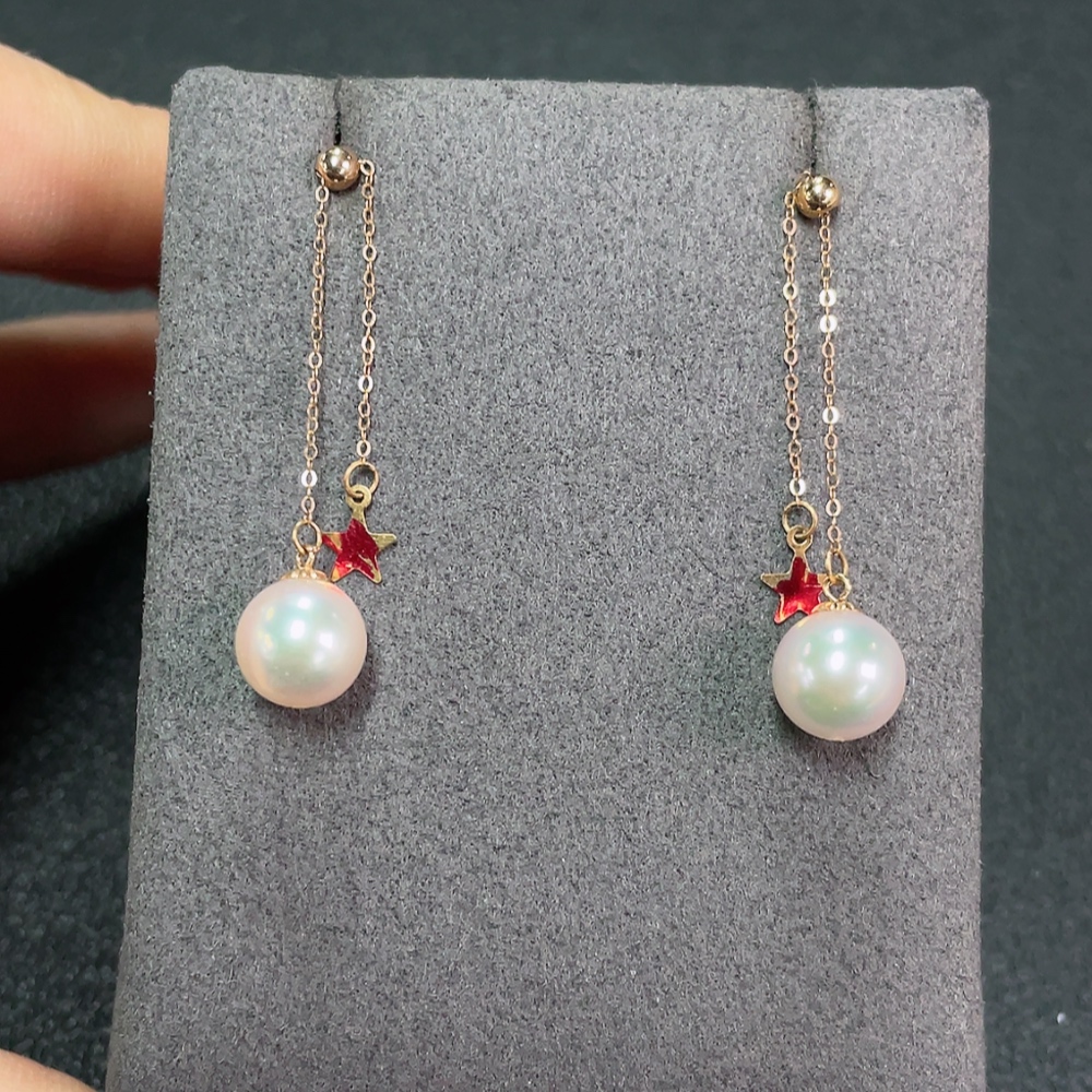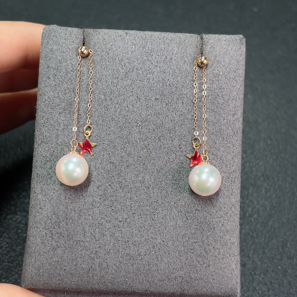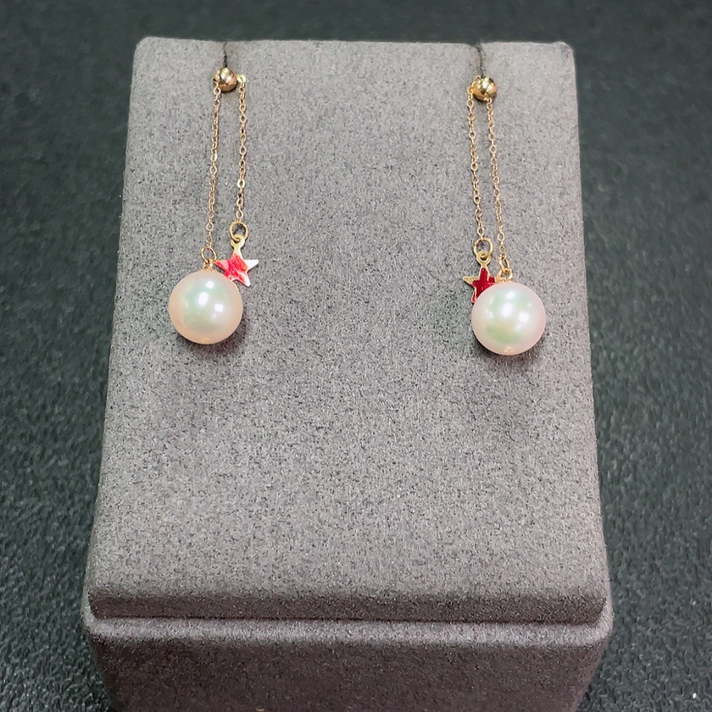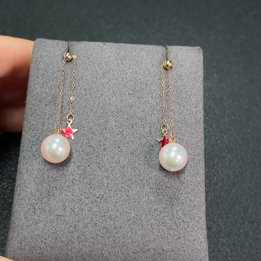 Seawater Pearl Earrings (Marked Red Suspected Gold-Plated, Rest Au71%, Total Weight Approx. 2.06g, Size Around 8.1mm)