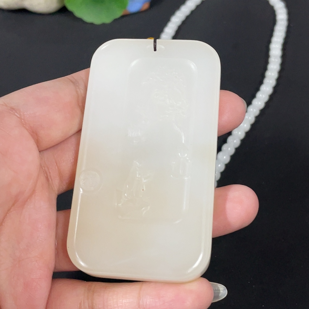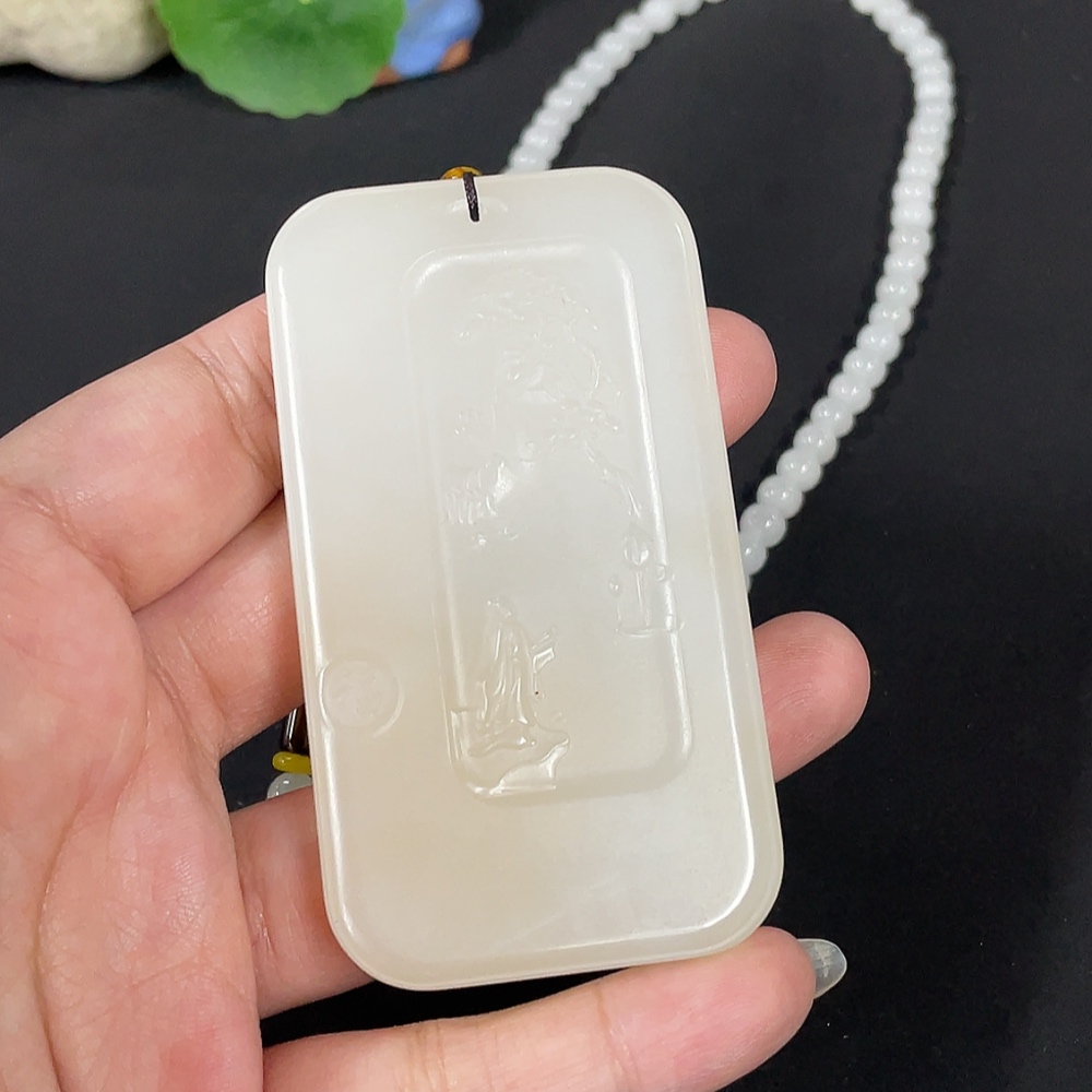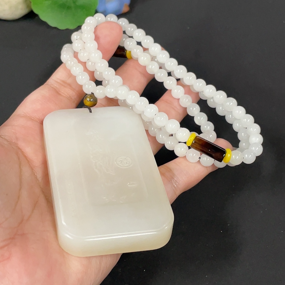Hetian Jade Pendant Antique Piece Total Weight Approx. [Including Chain] 139g Chain Contains Other Mineral Components Beads Not Hetian Jade