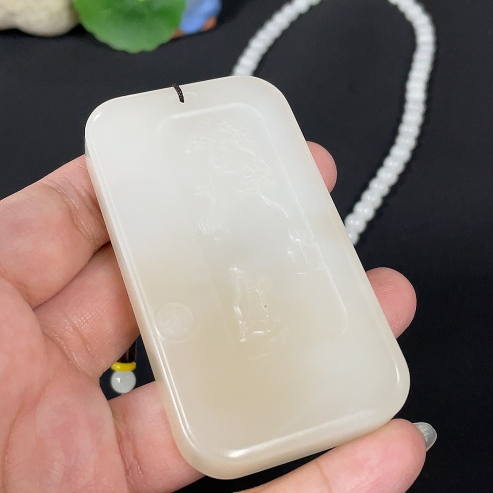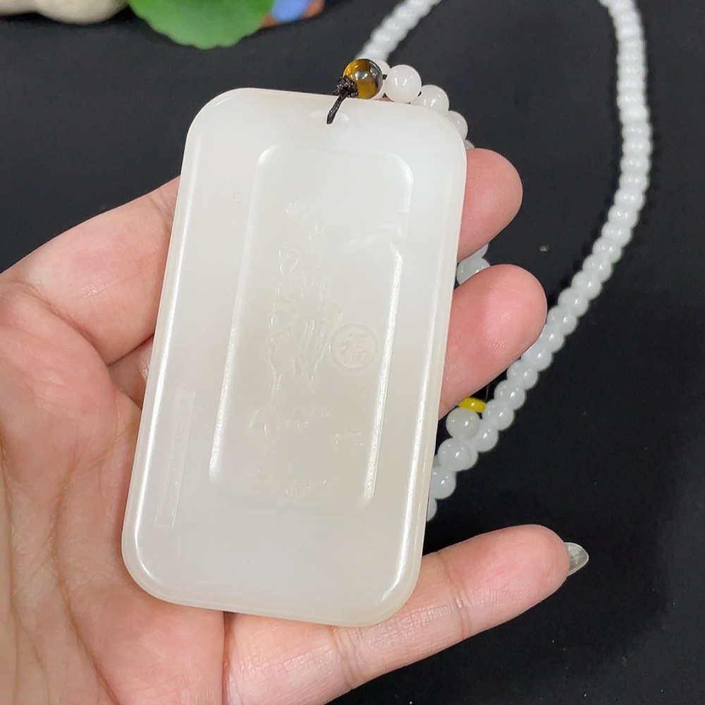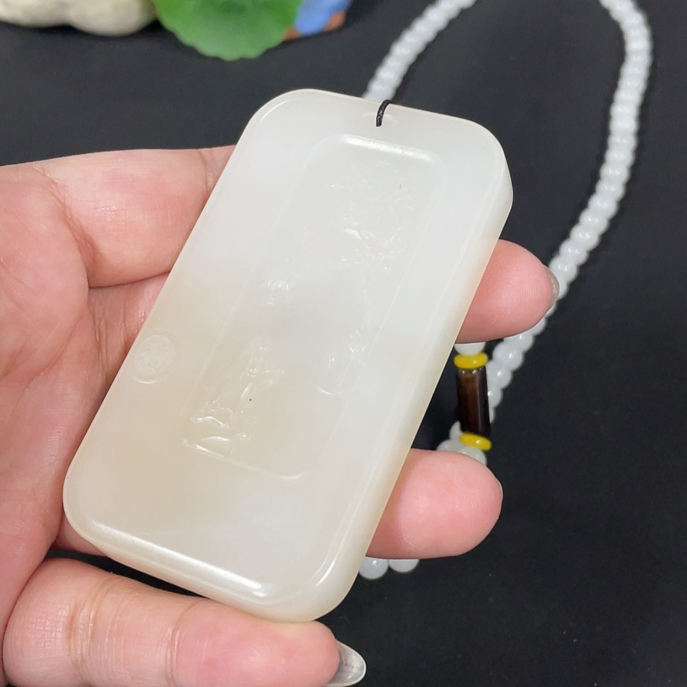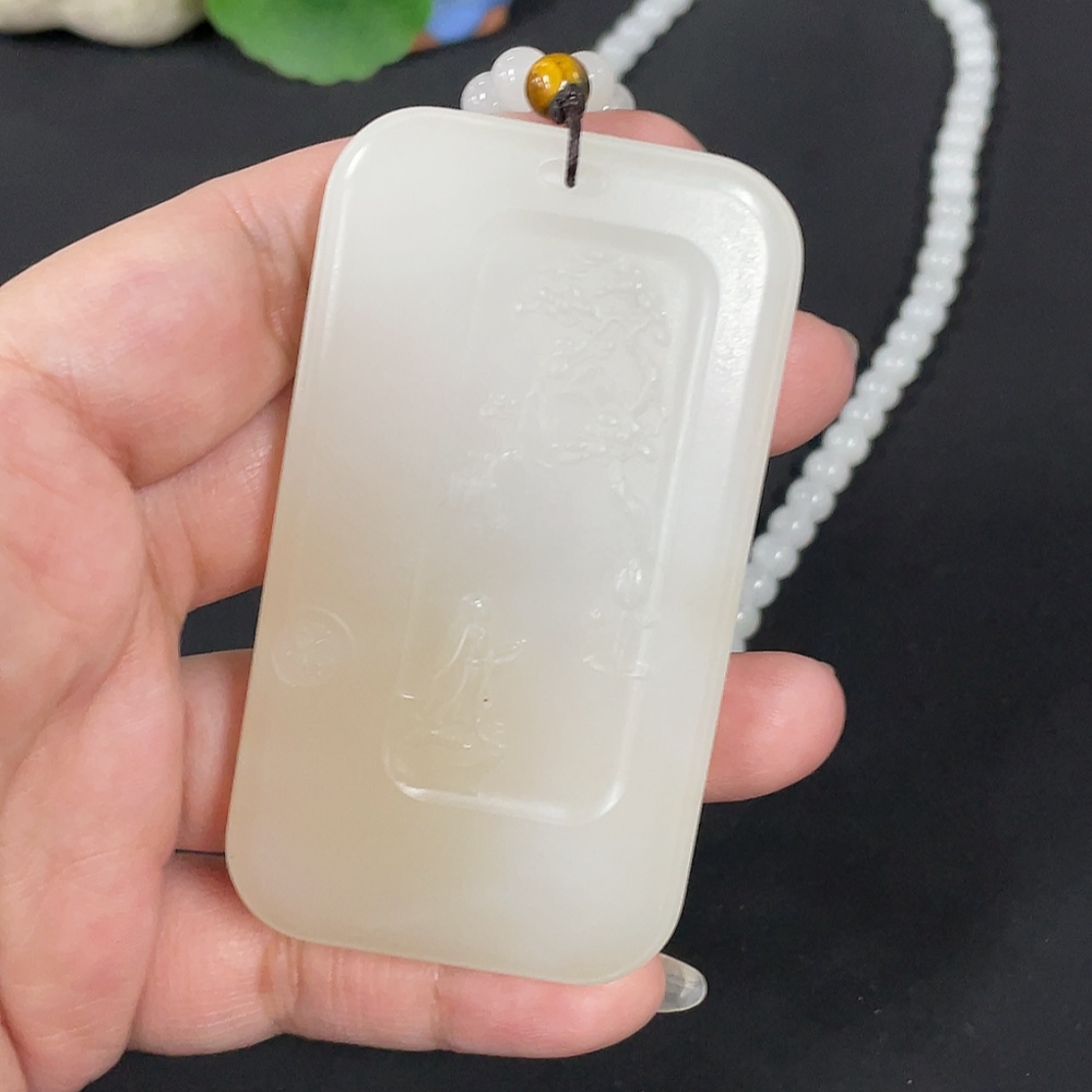 Hetian Jade Pendant Antique Piece Total Weight Approx. [Including Chain] 139g Chain Contains Other Mineral Components Beads Not Hetian Jade