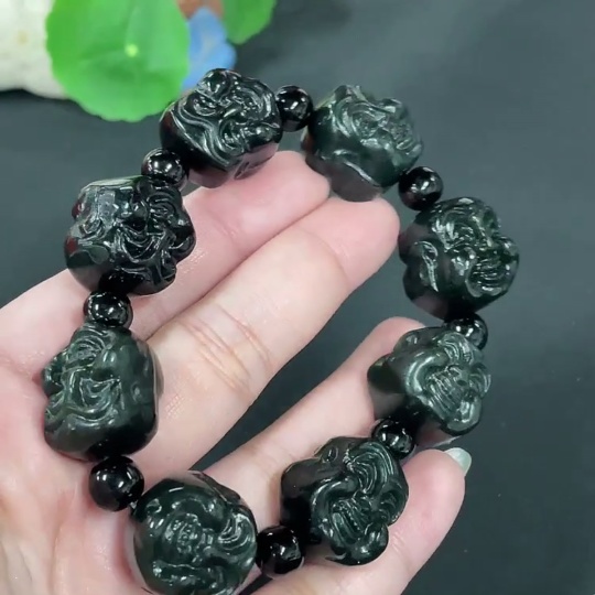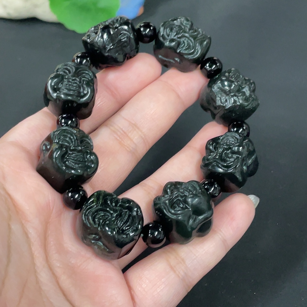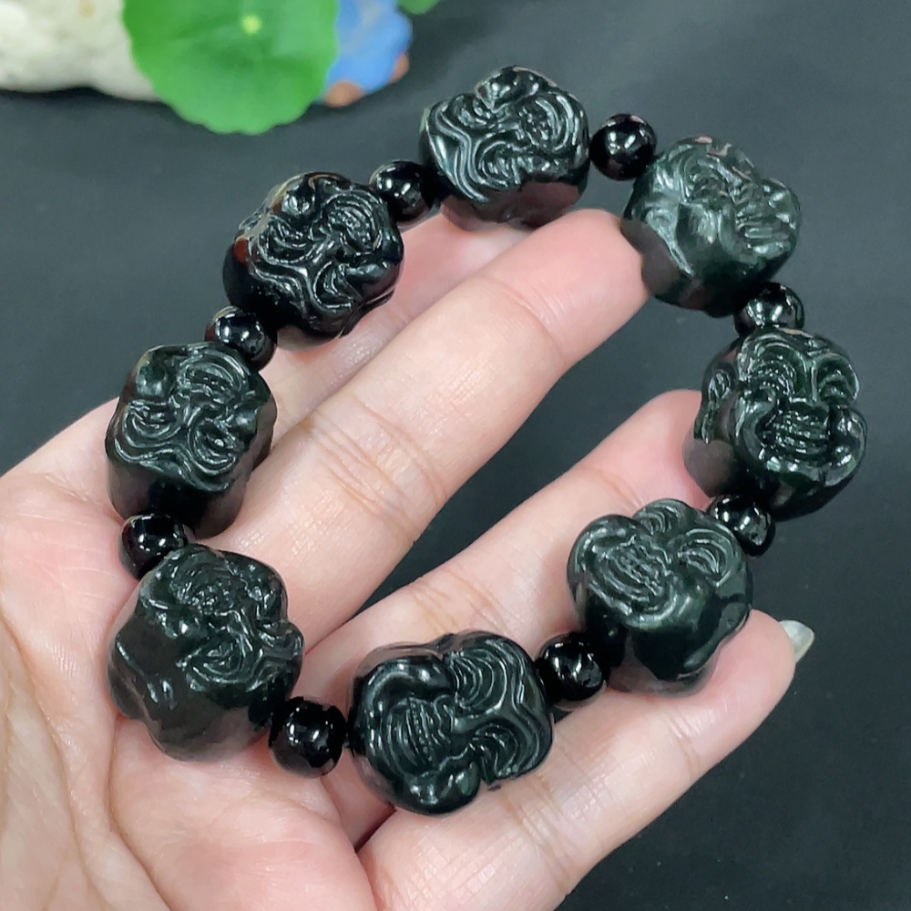 Hetian Jade Buddha Bead Bracelet, Total Weight Approx. 91.6g, Non-Hetian Jade Matching Beads