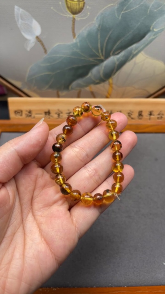 Amber Beeswax Bracelet, Total Weight Approx. 4.8g, Size About 7.6mm