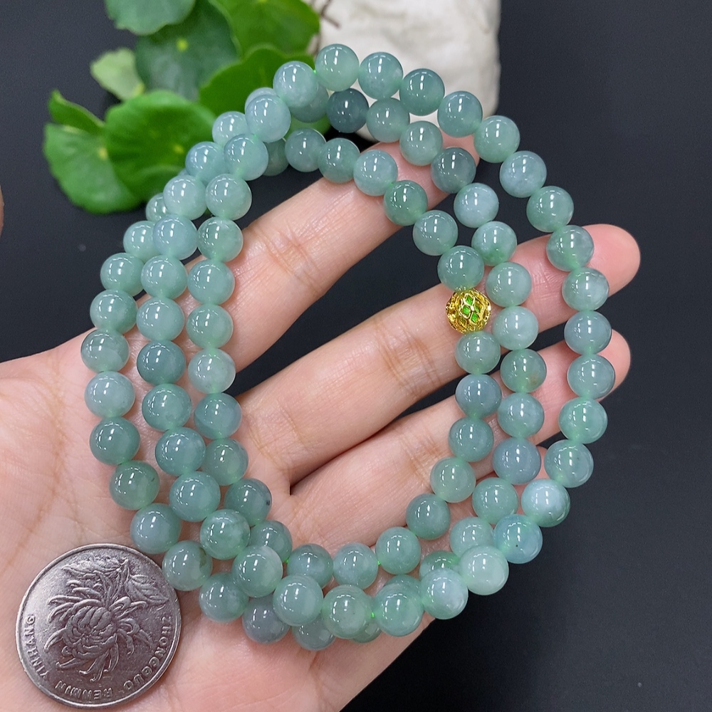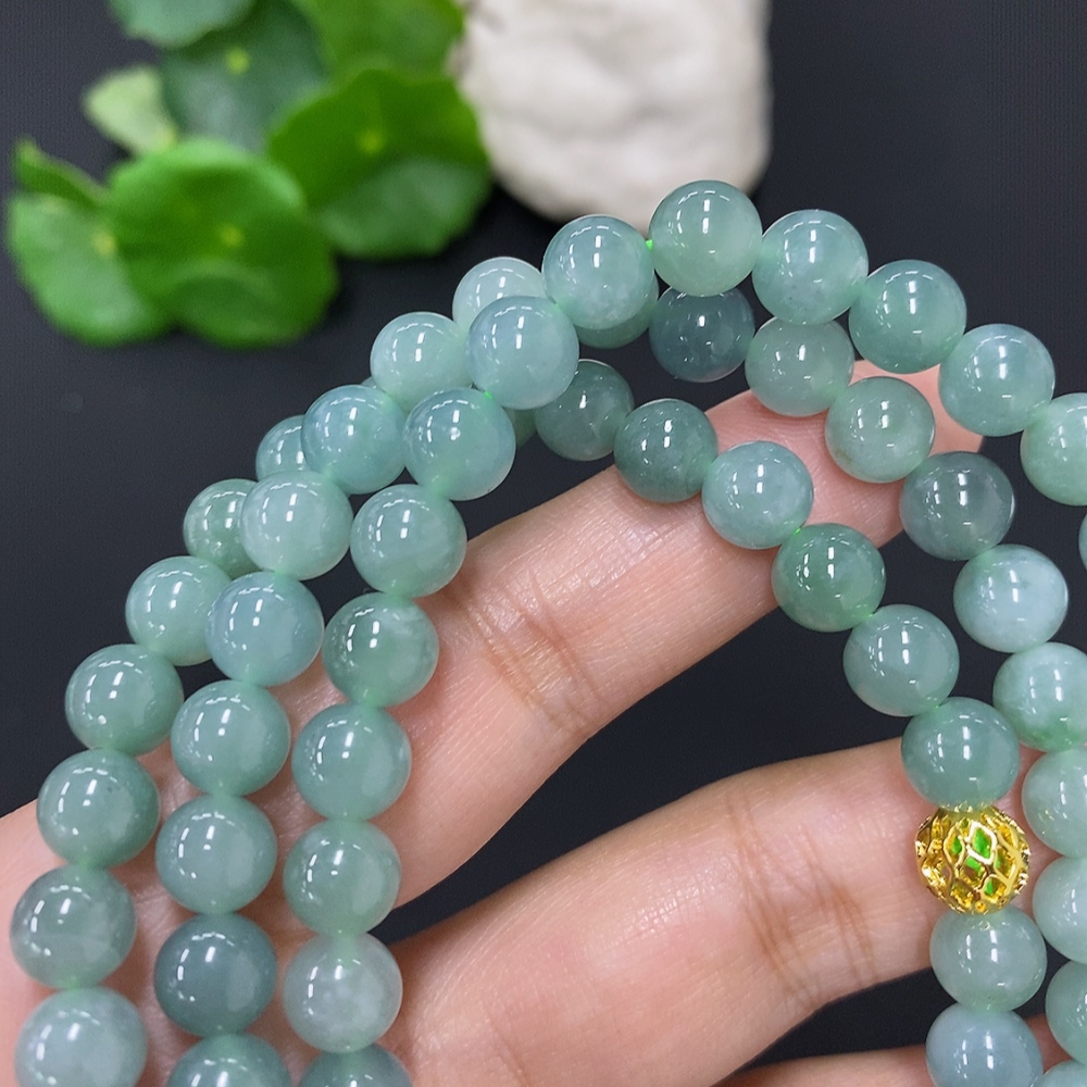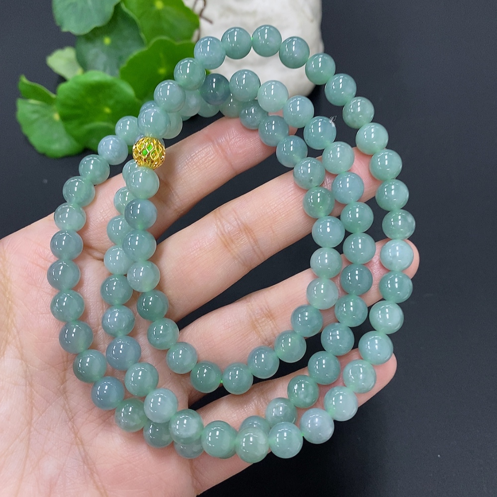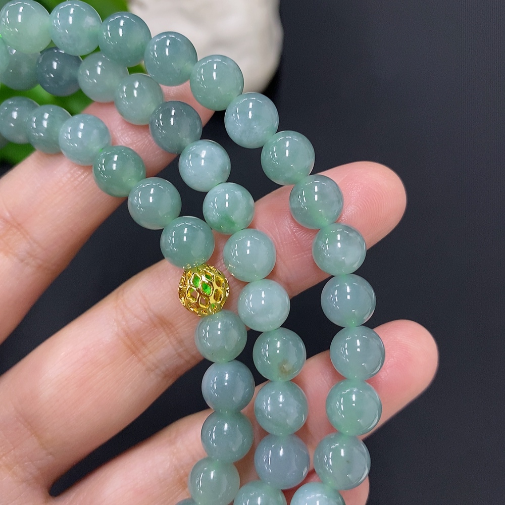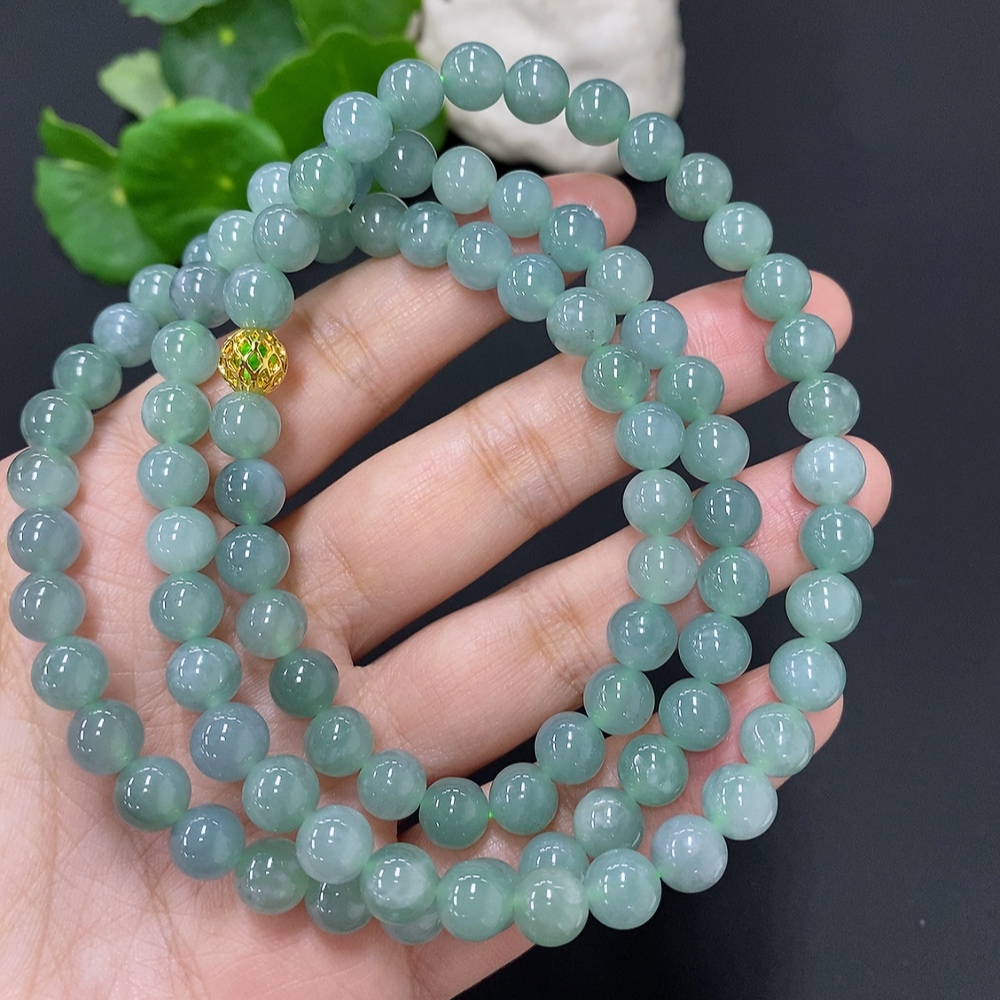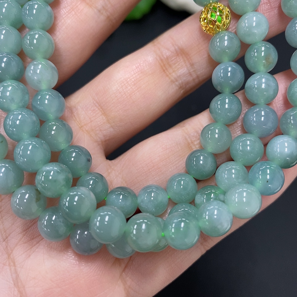 Jadeite Bead Necklace Approx. 7.5mm Non-Gold Total Weight Approx. 71.1g