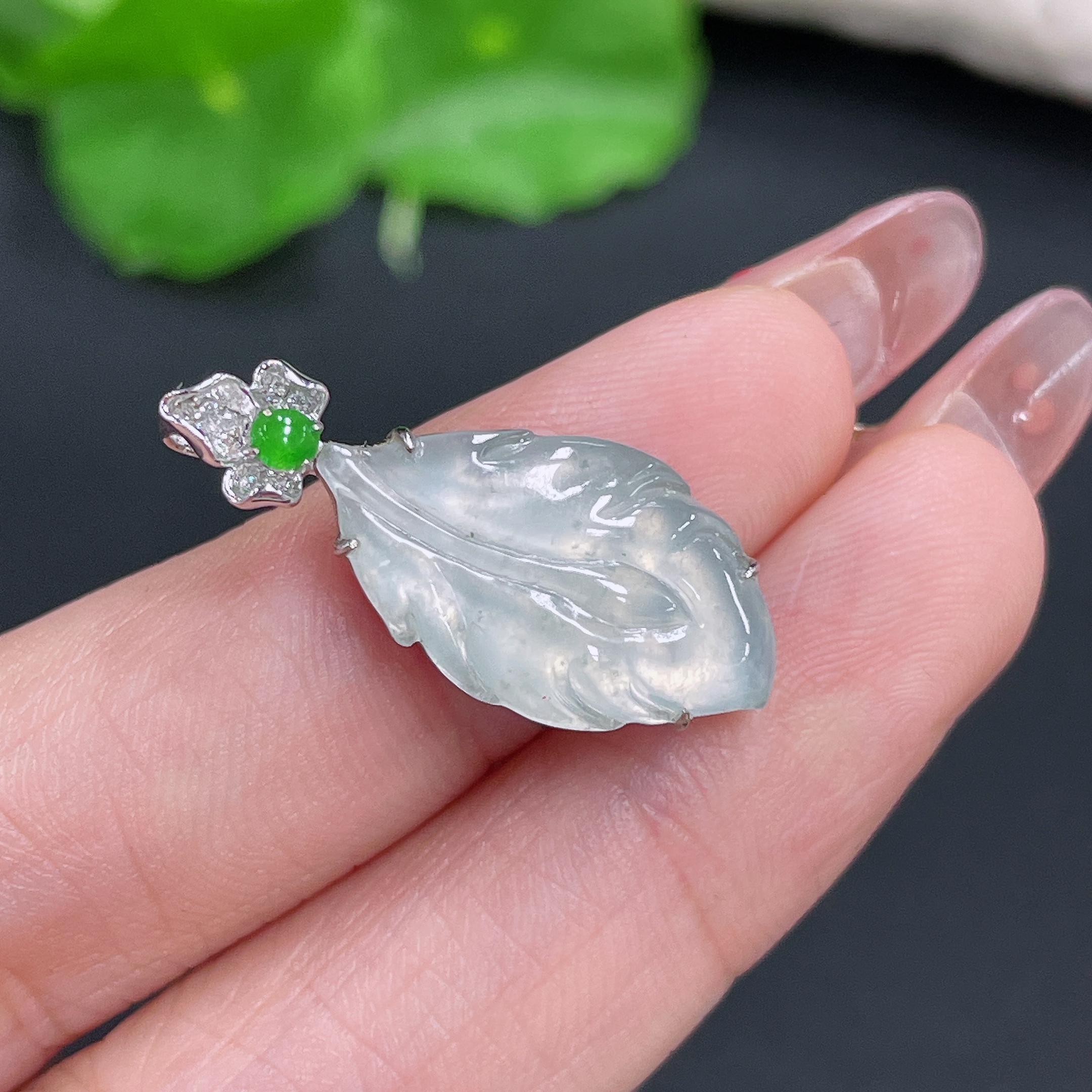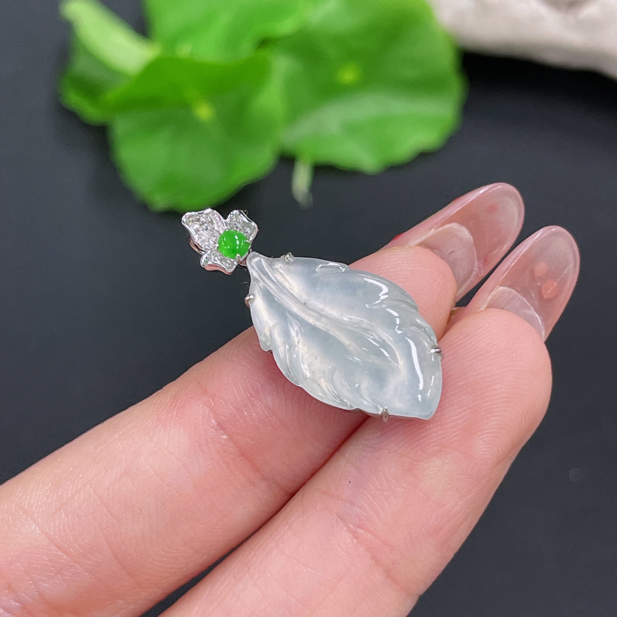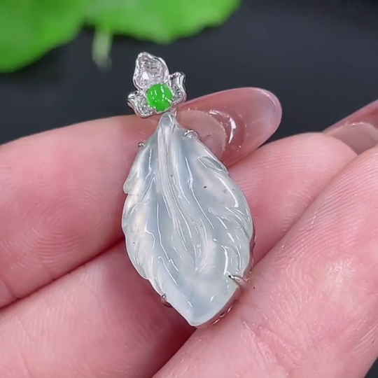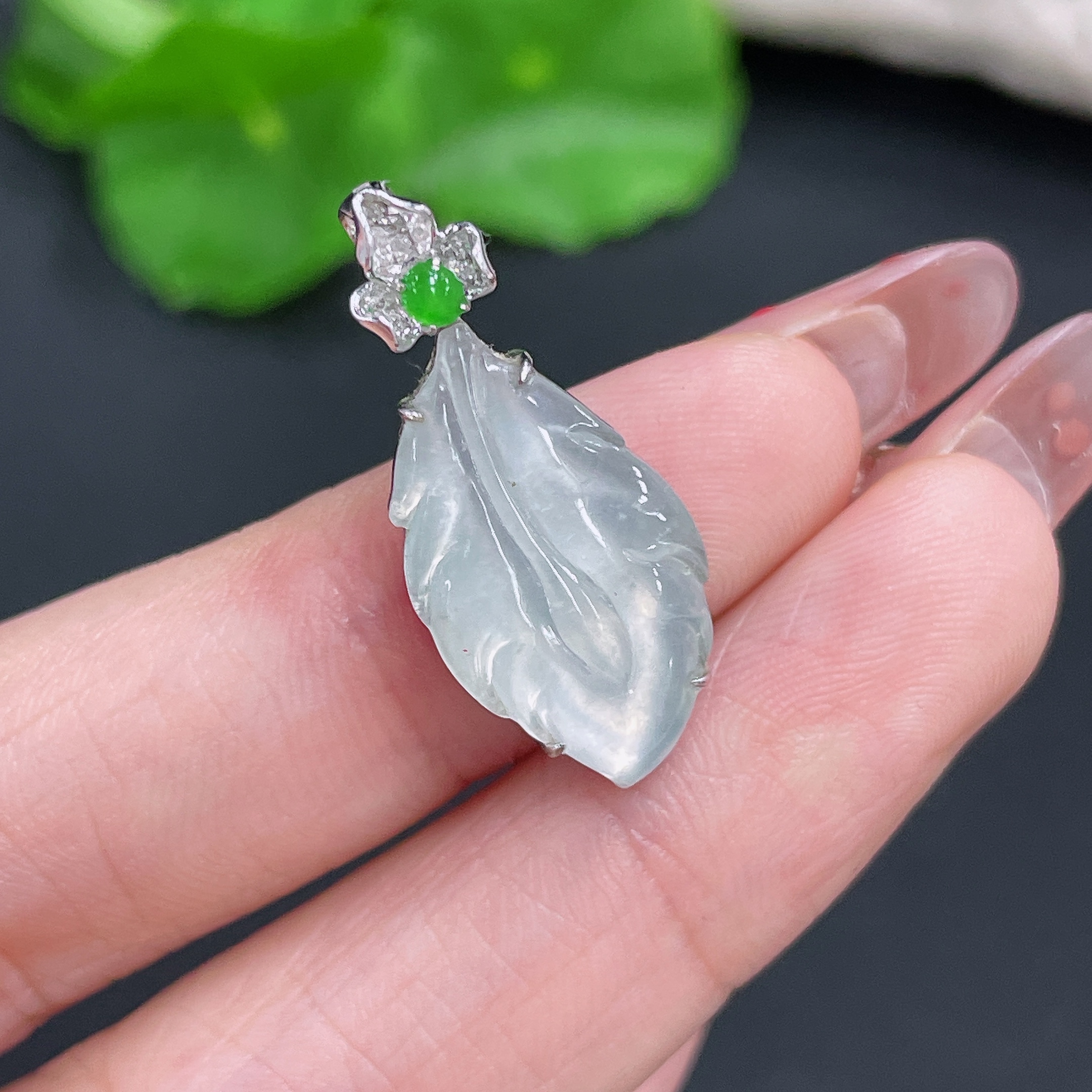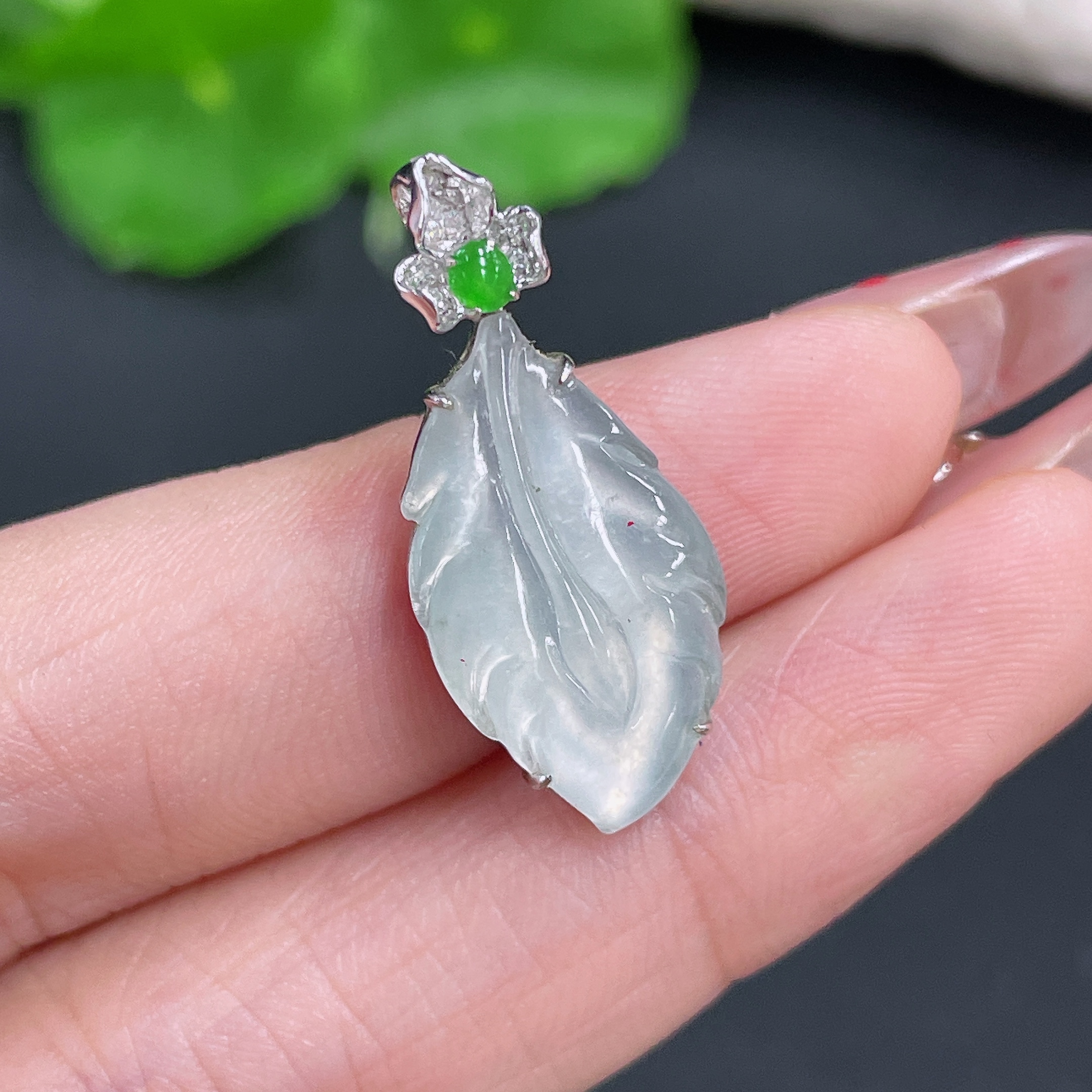 Jadeite Pendant 18k Gold Inlaid with Diamonds Total Weight Approx. 2.46g