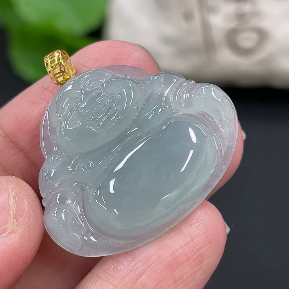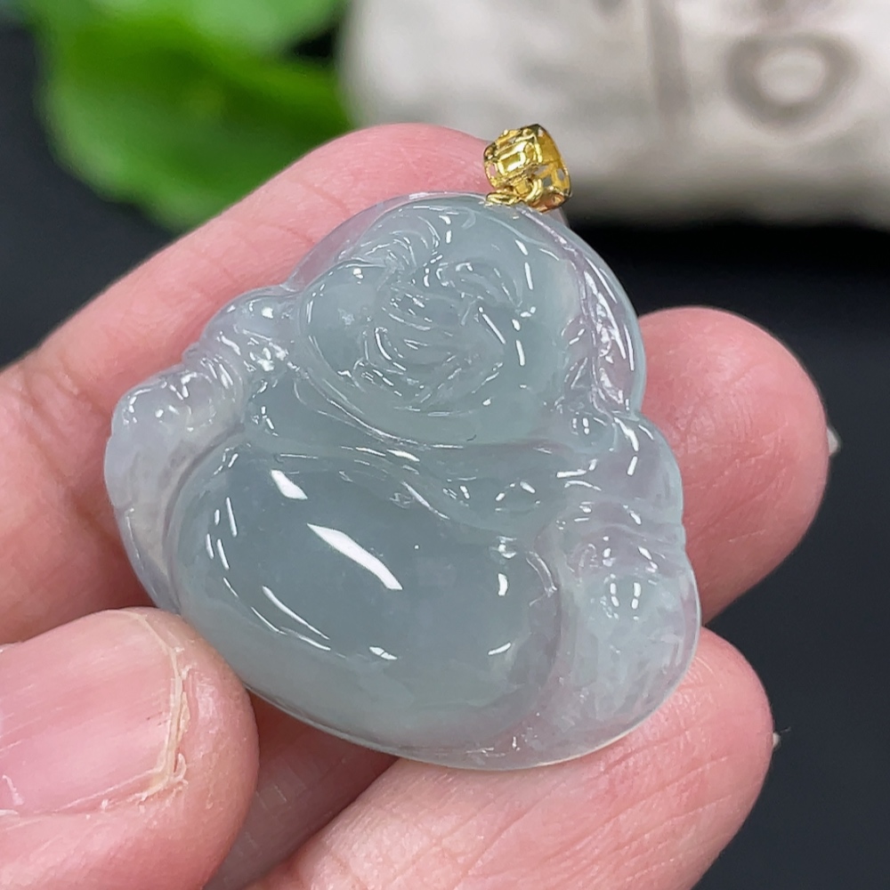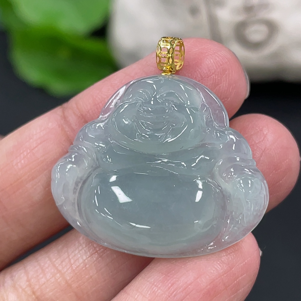 Jadeite Buddha Pendant with 18K Gold Clasp, Total Weight Approx. 6.23g