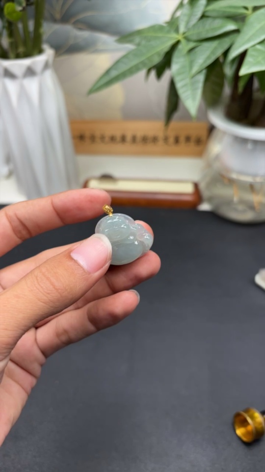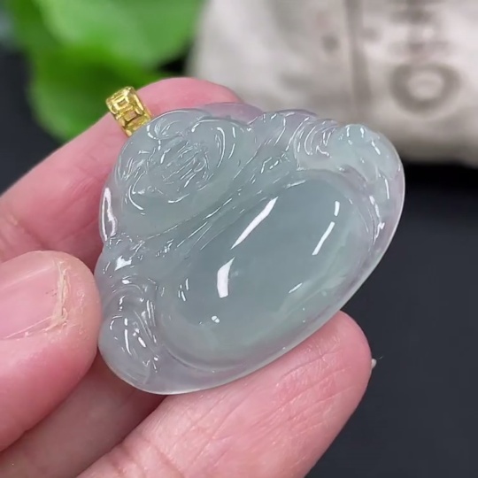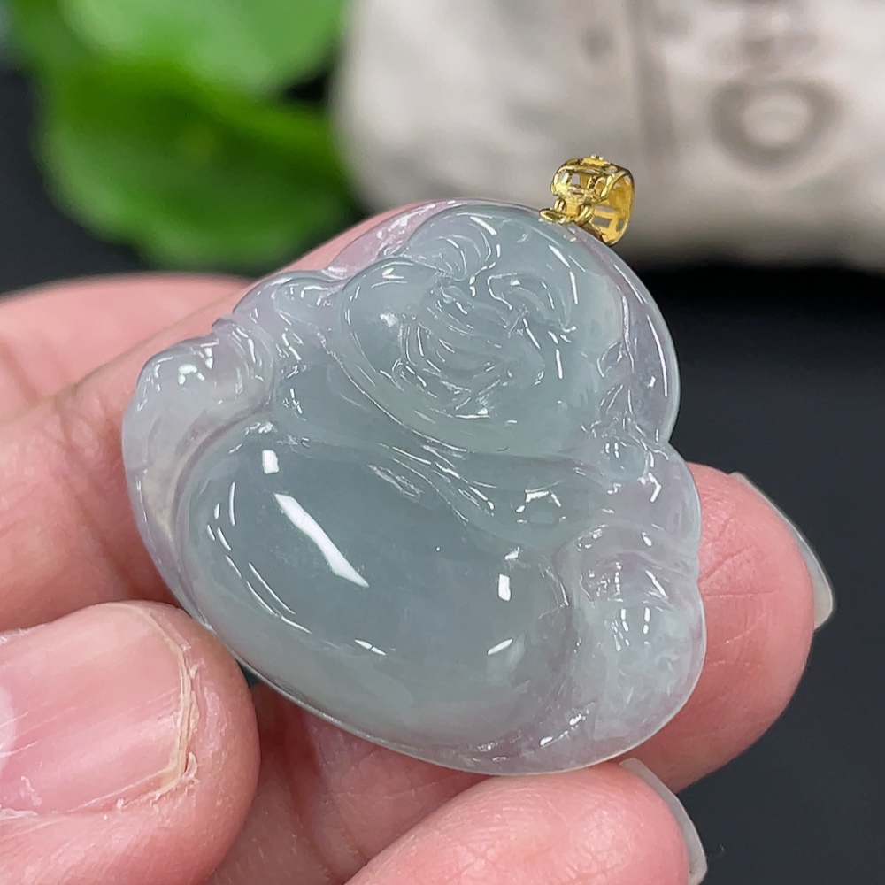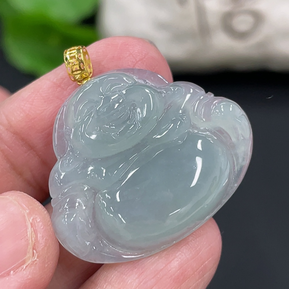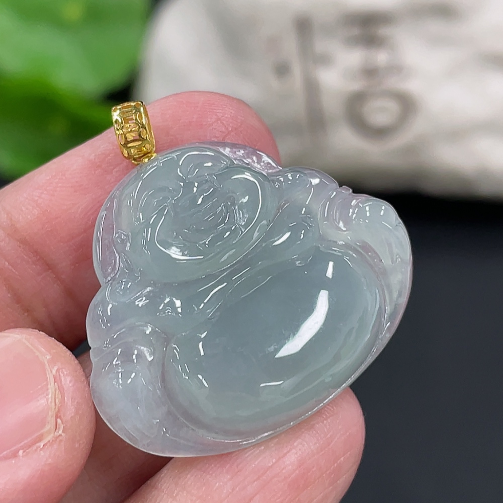 Jadeite Buddha Pendant with 18K Gold Clasp, Total Weight Approx. 6.23g
