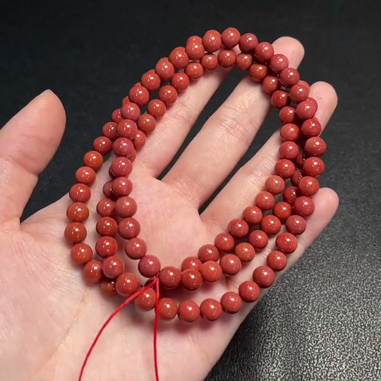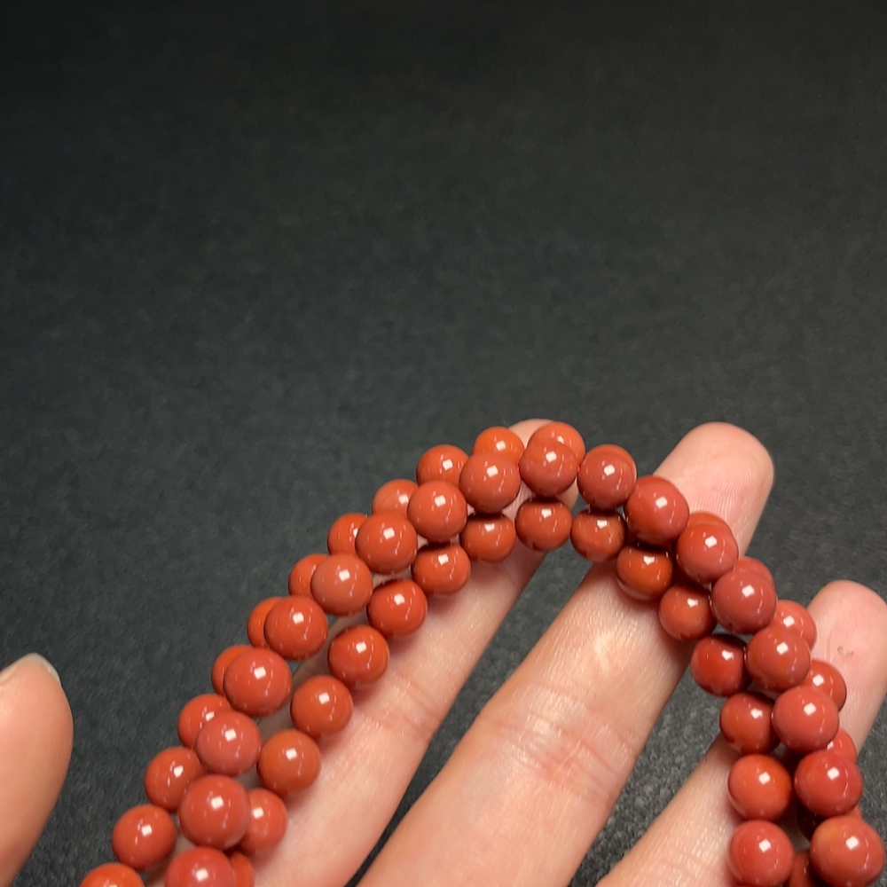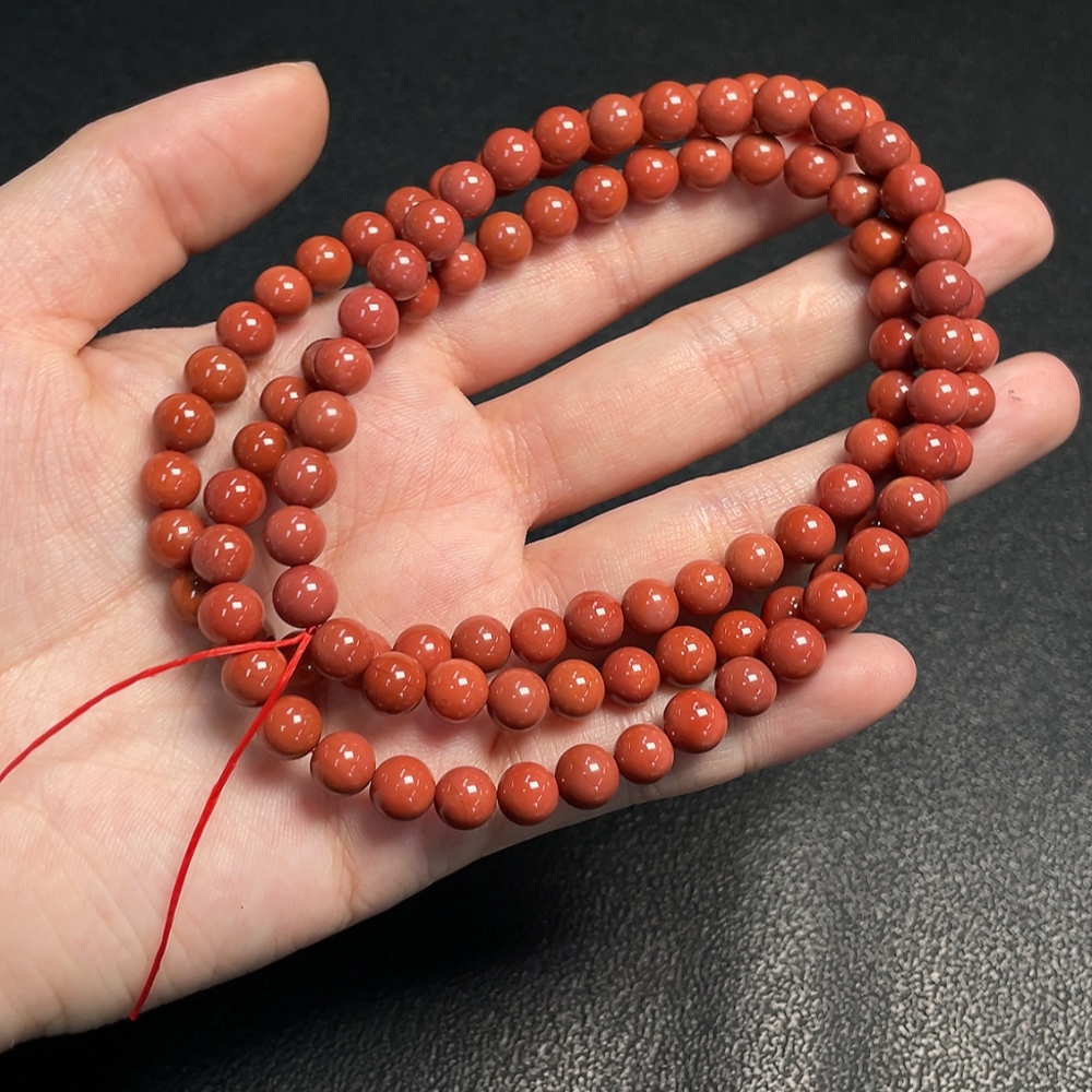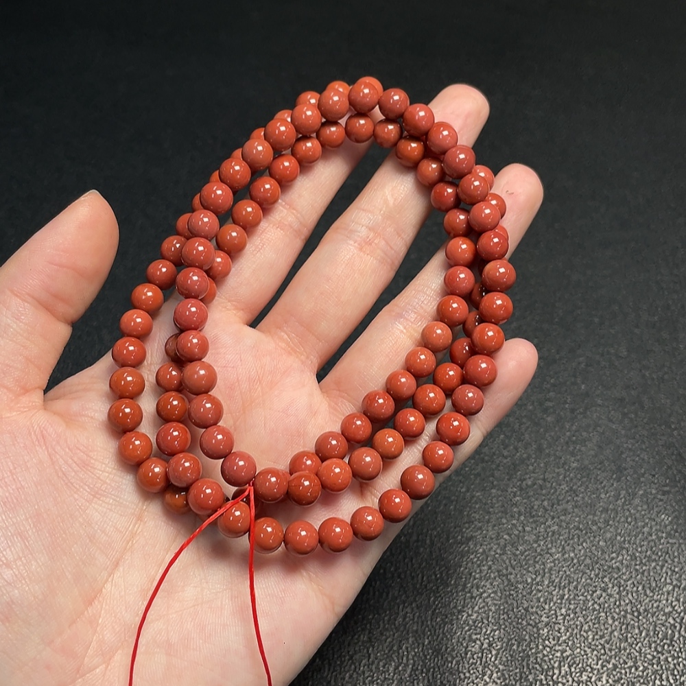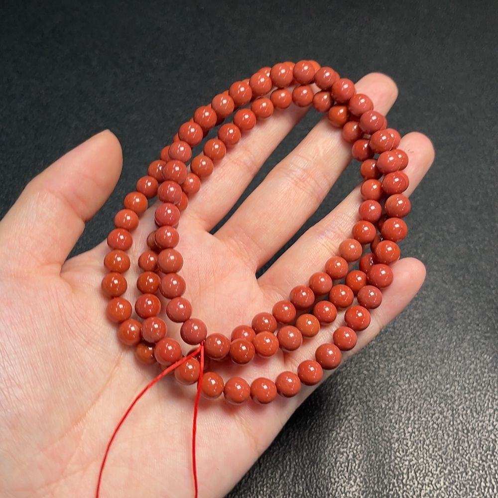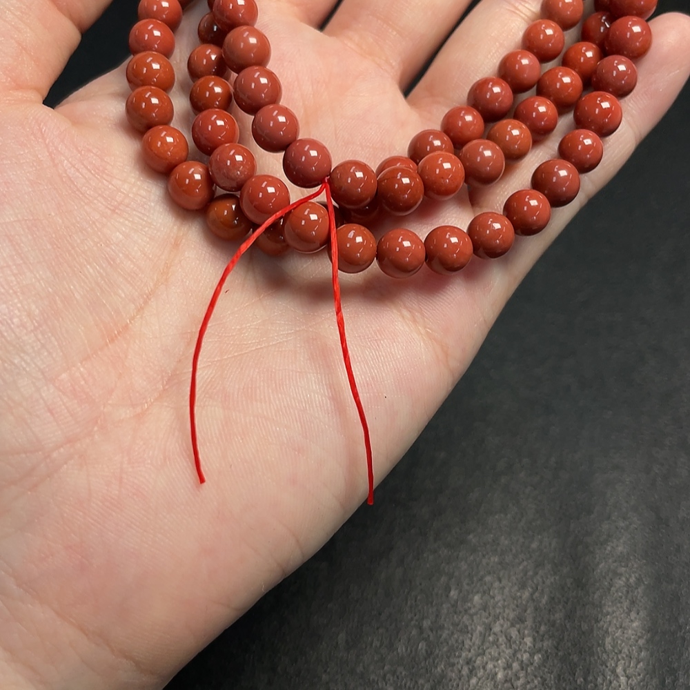 Red Agate Bead Necklace with Visible Organic Matter, Total Weight Approximately 43.11g, Bead Size About 6.7mm