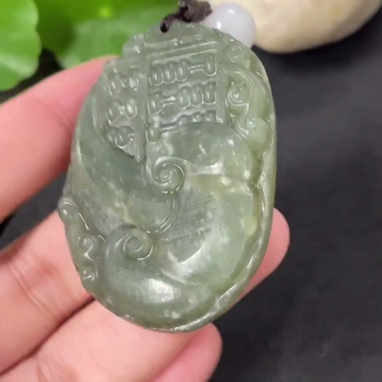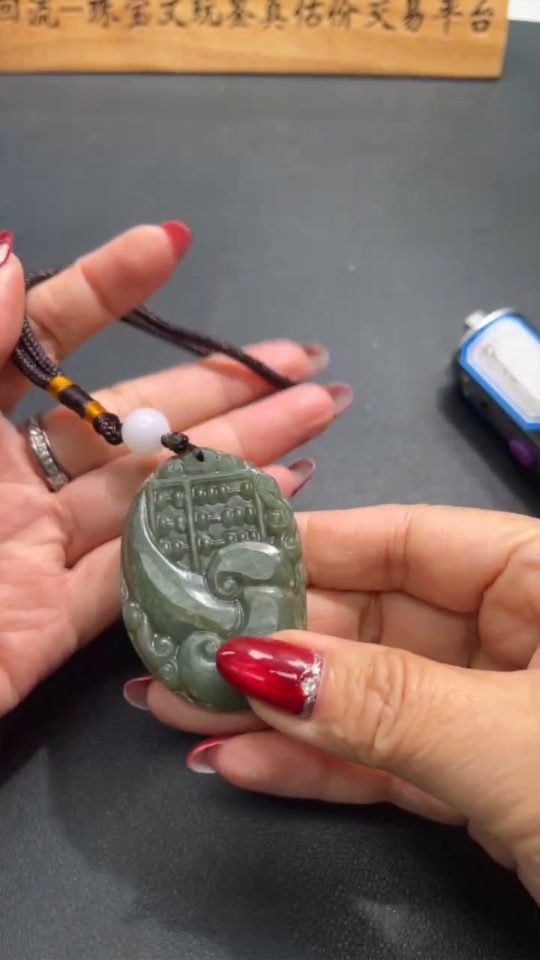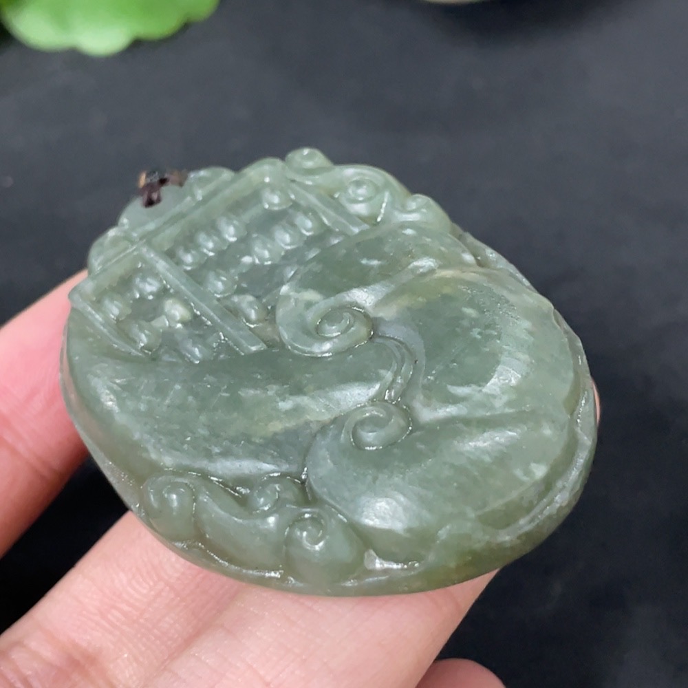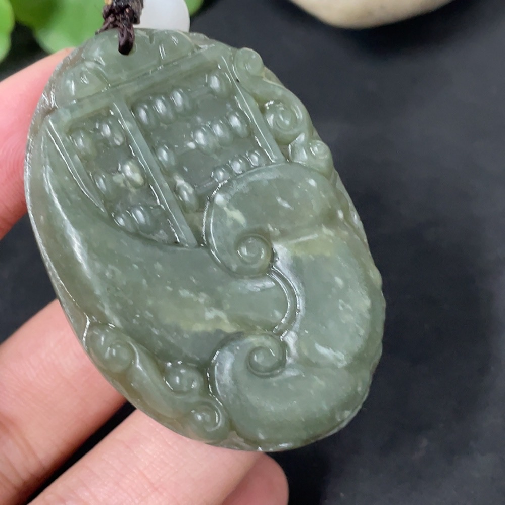 Hetian Jade Pendant Ruyi Abacus with Non-Hetian Jade Beads