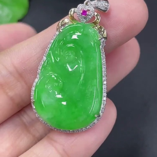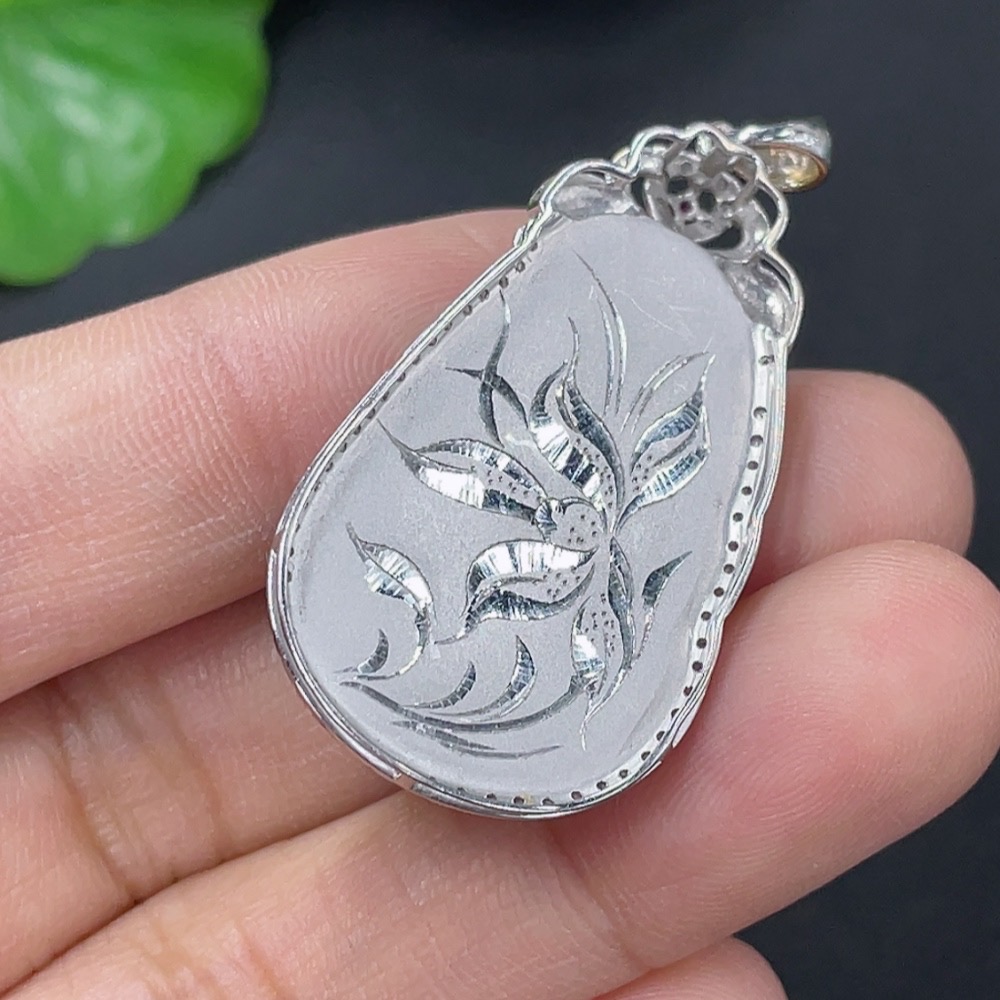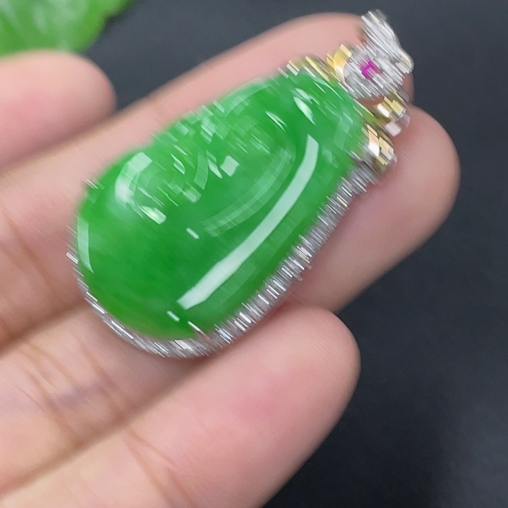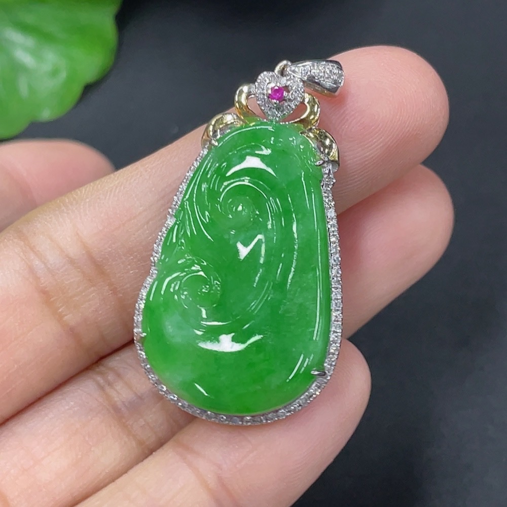 Jadeite Inlaid Ruyi Pendant 18k Set with Diamonds (Colorless) Total Weight Approx. 5.23g
