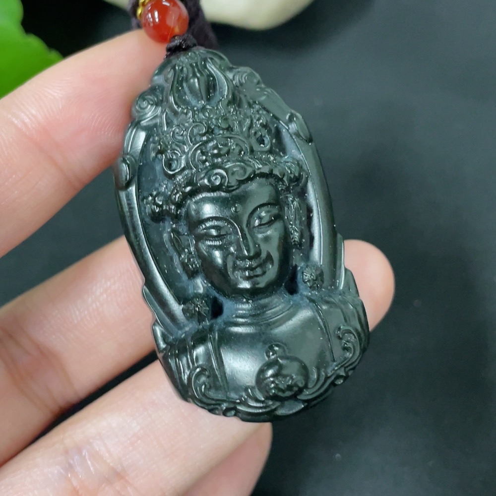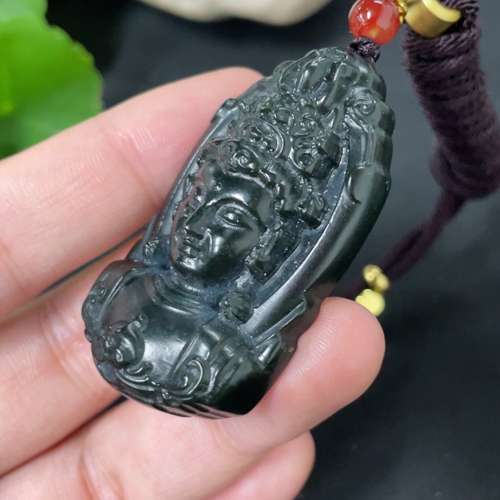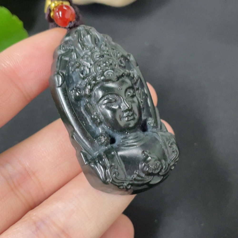 Hetian Jade Pendant Guanyin Total Weight (with rope) 28g