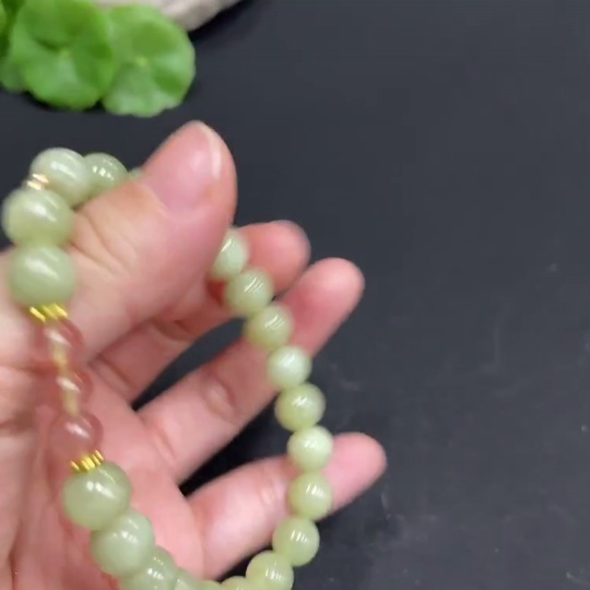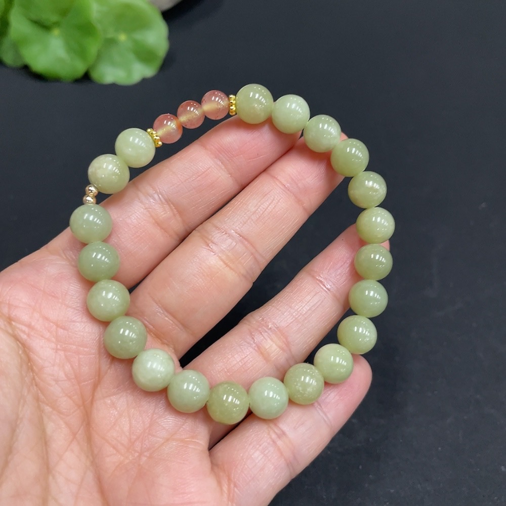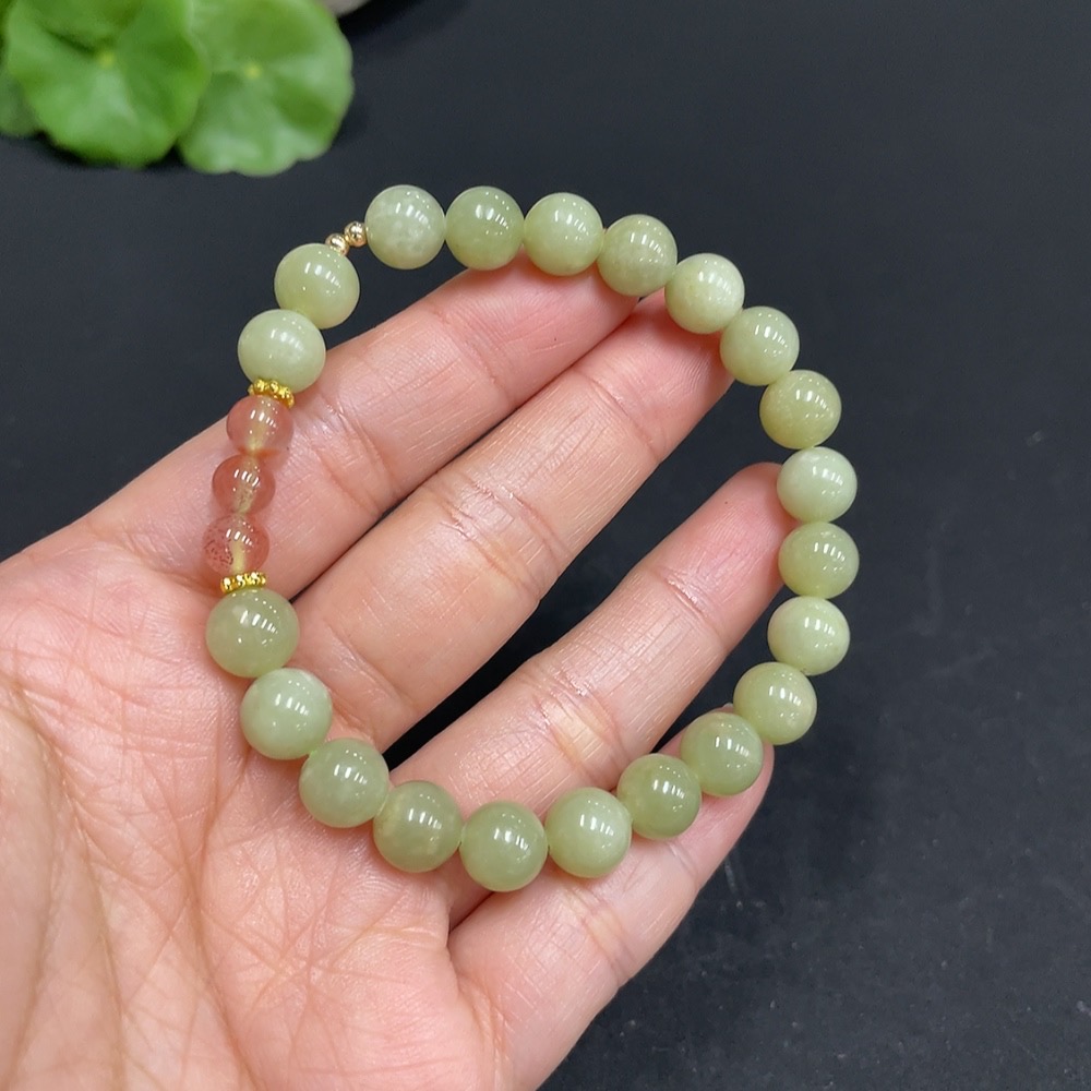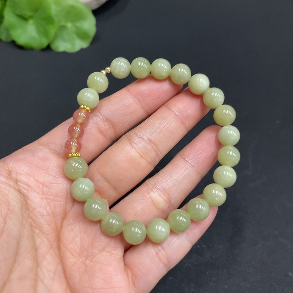 Hetian Jade Bracelet, approx. 7.7mm, total weight approx. 16.9g, non-Hetian Jade beads, non-gold