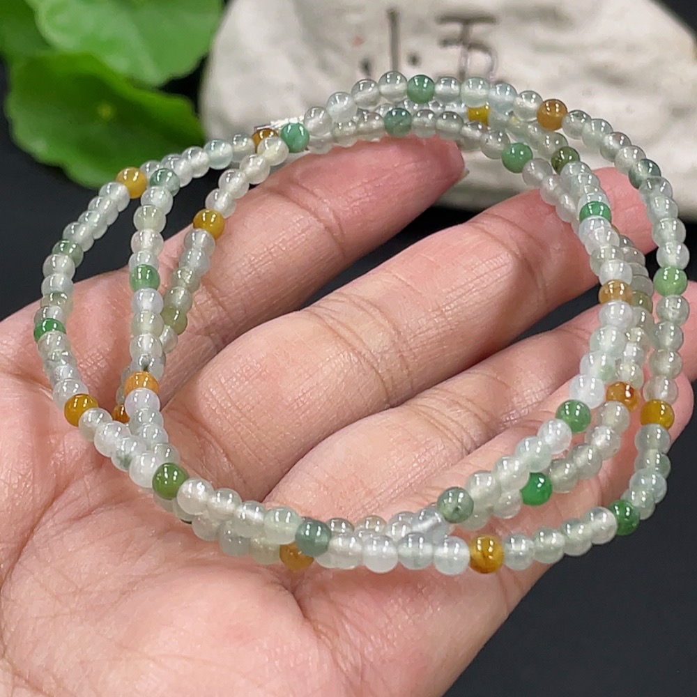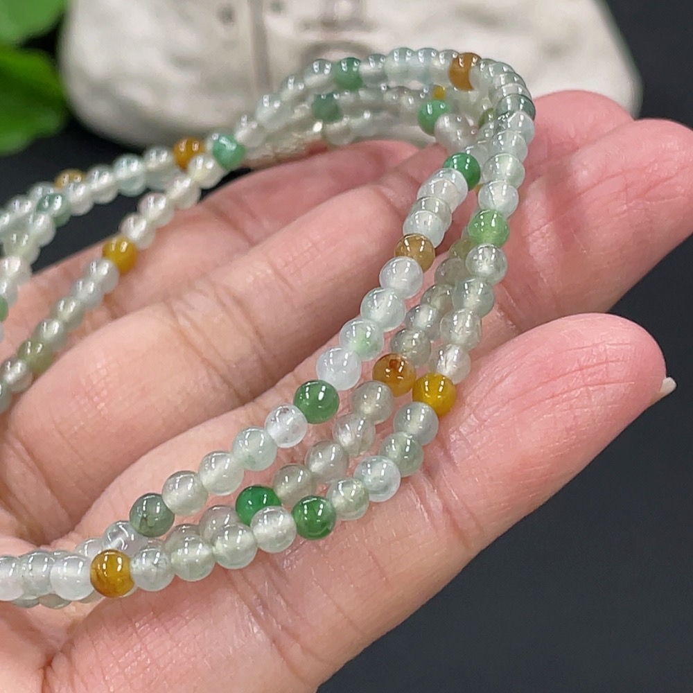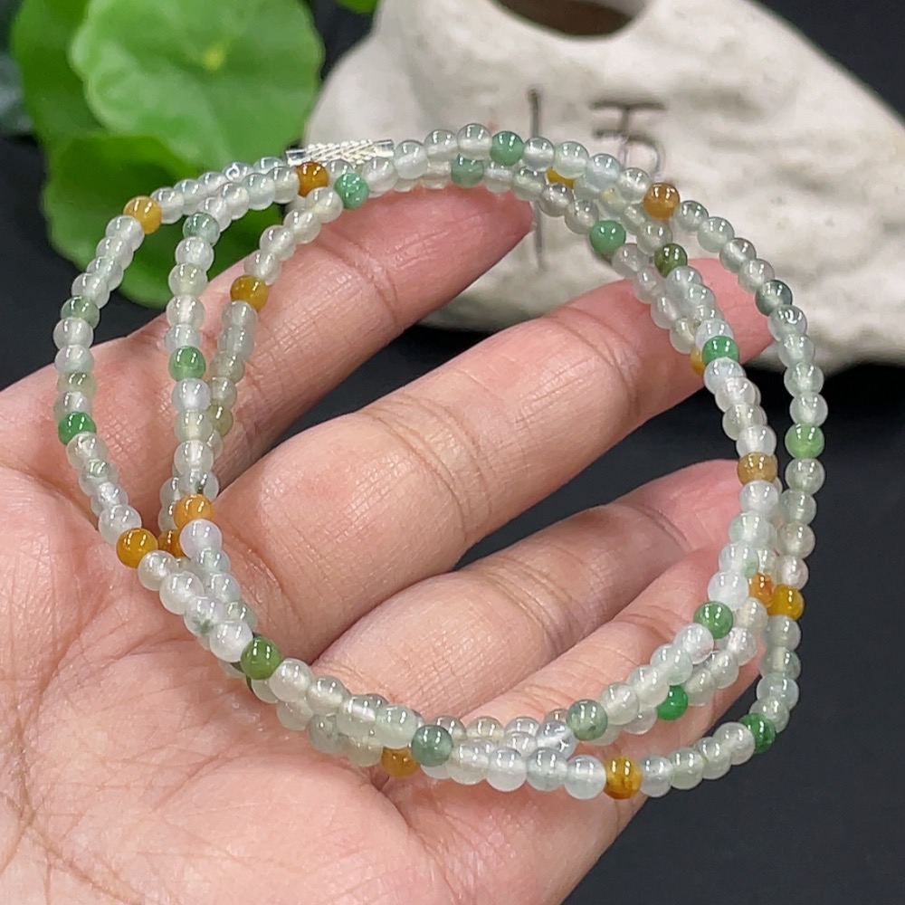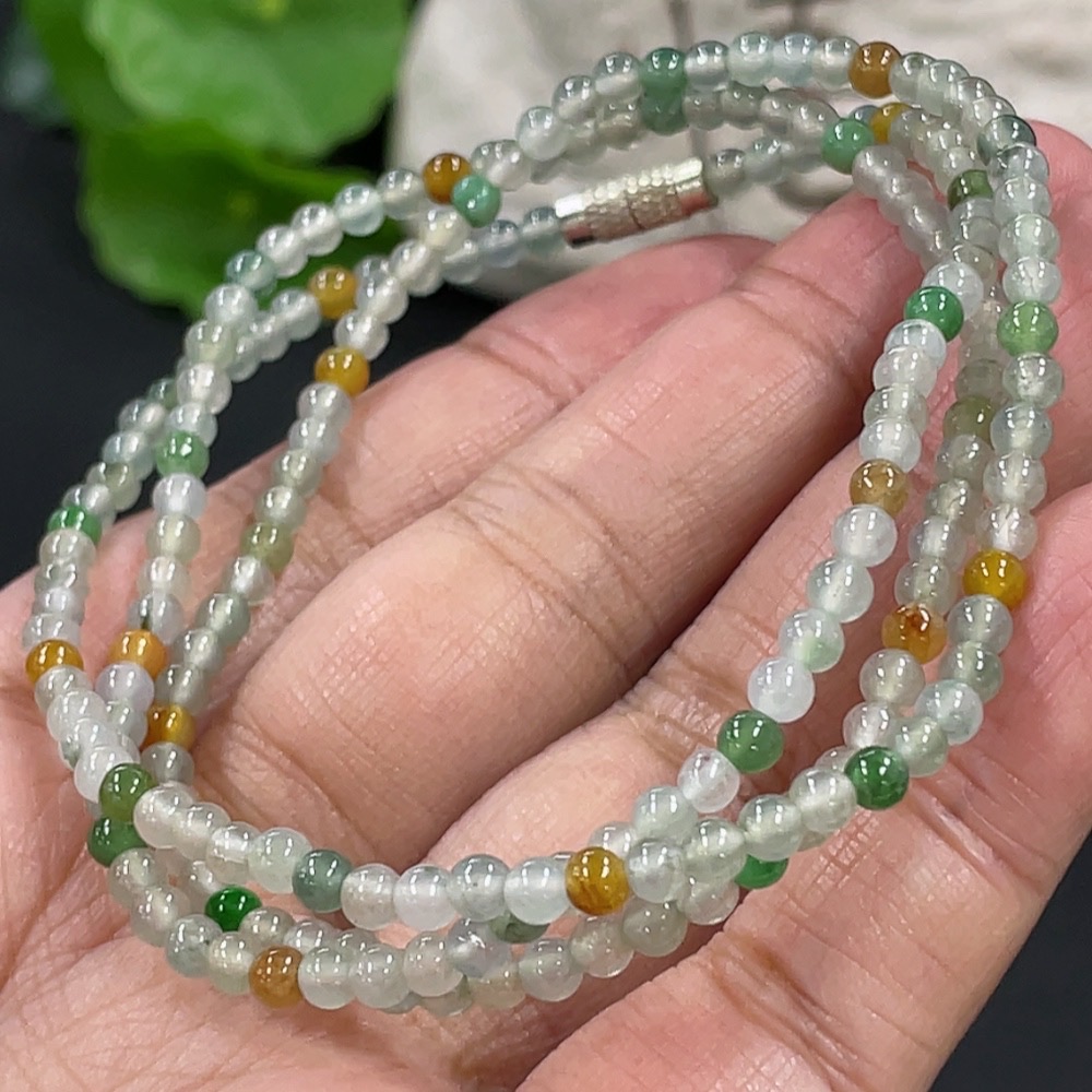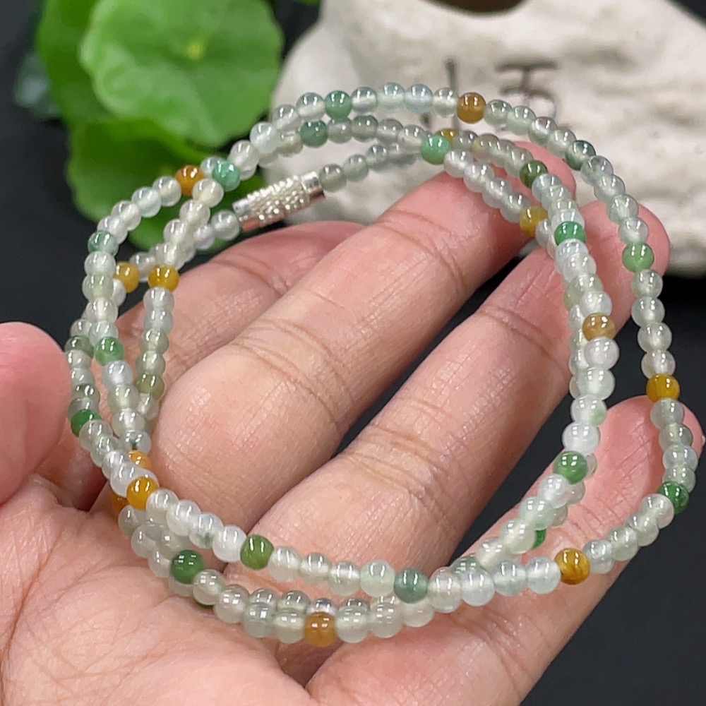 Jadeite Bead Necklace Approx. 3.4mm Total Weight About 13.87g Non-Gold Clasp