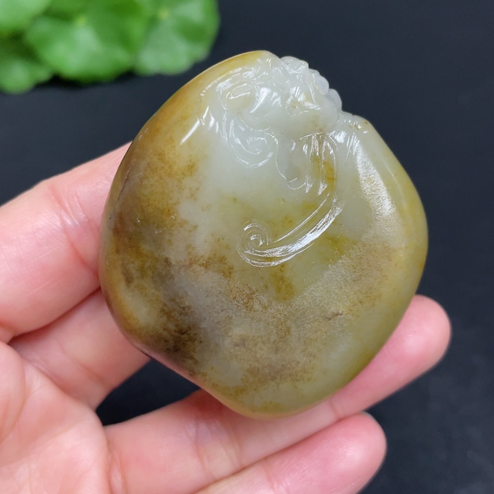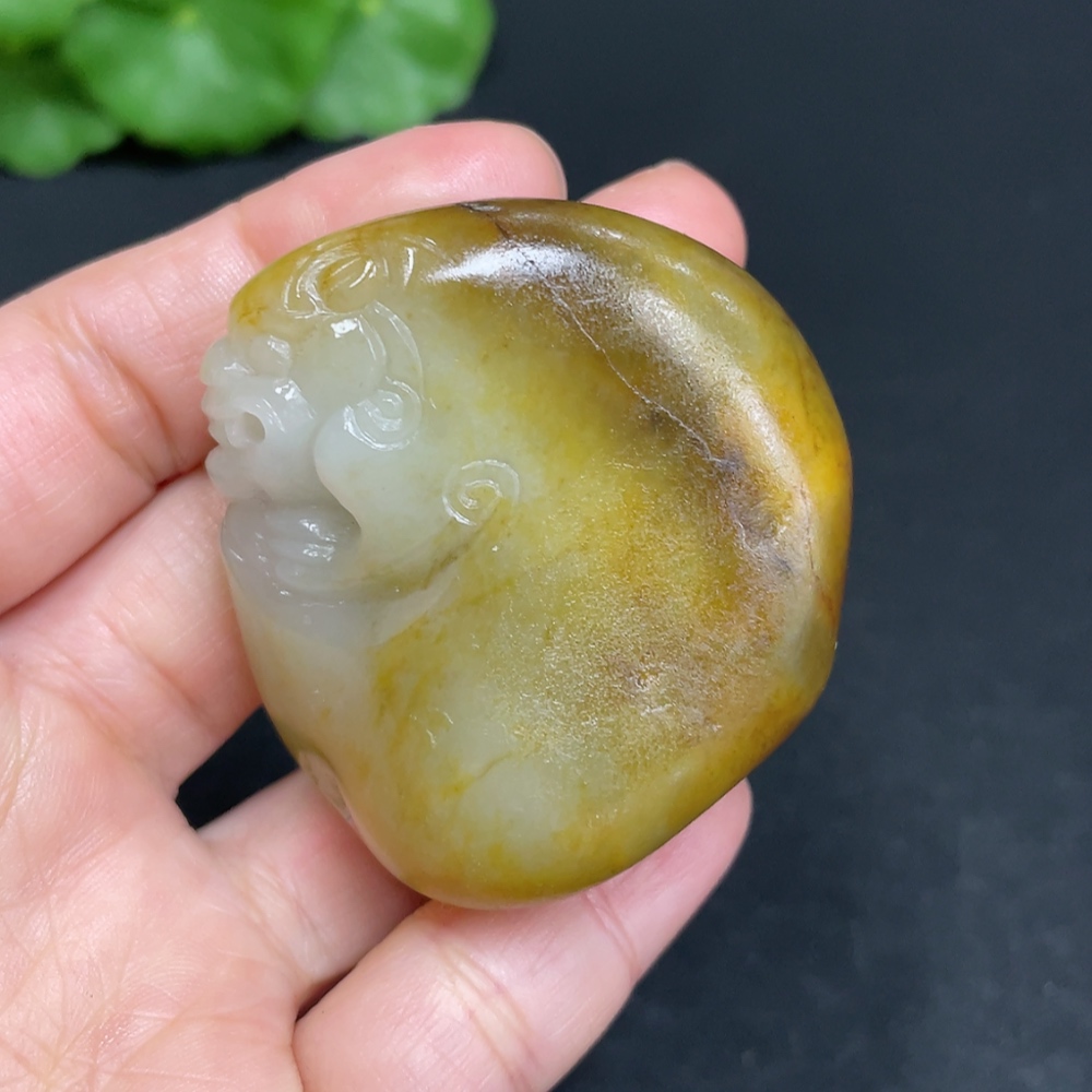 Hetian Jade Pendant, Auspicious Beast, Total Weight Approx. 86.9g, Undetermined Skin Color Origin, Contains Other Mineral Components