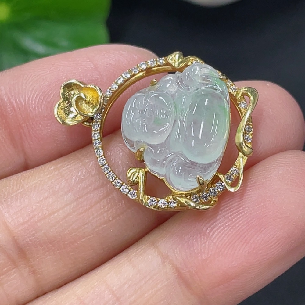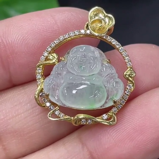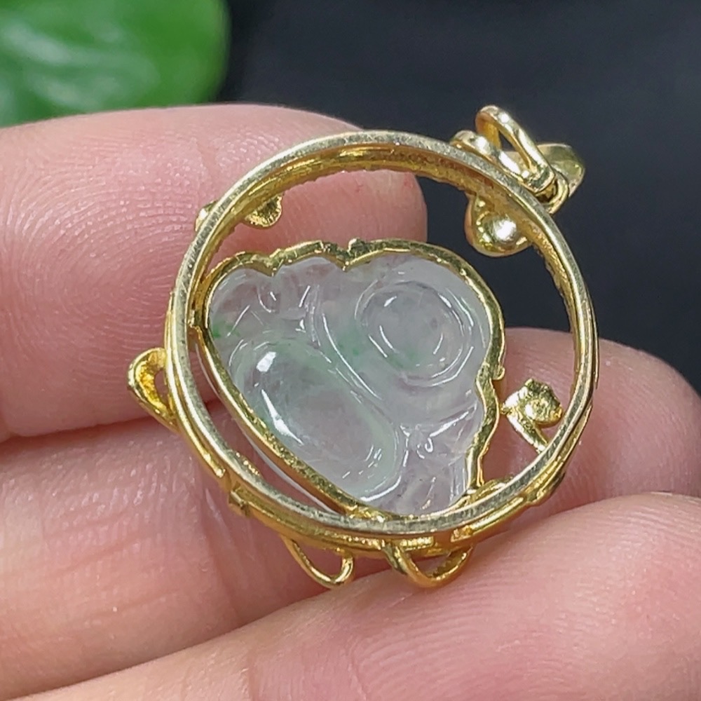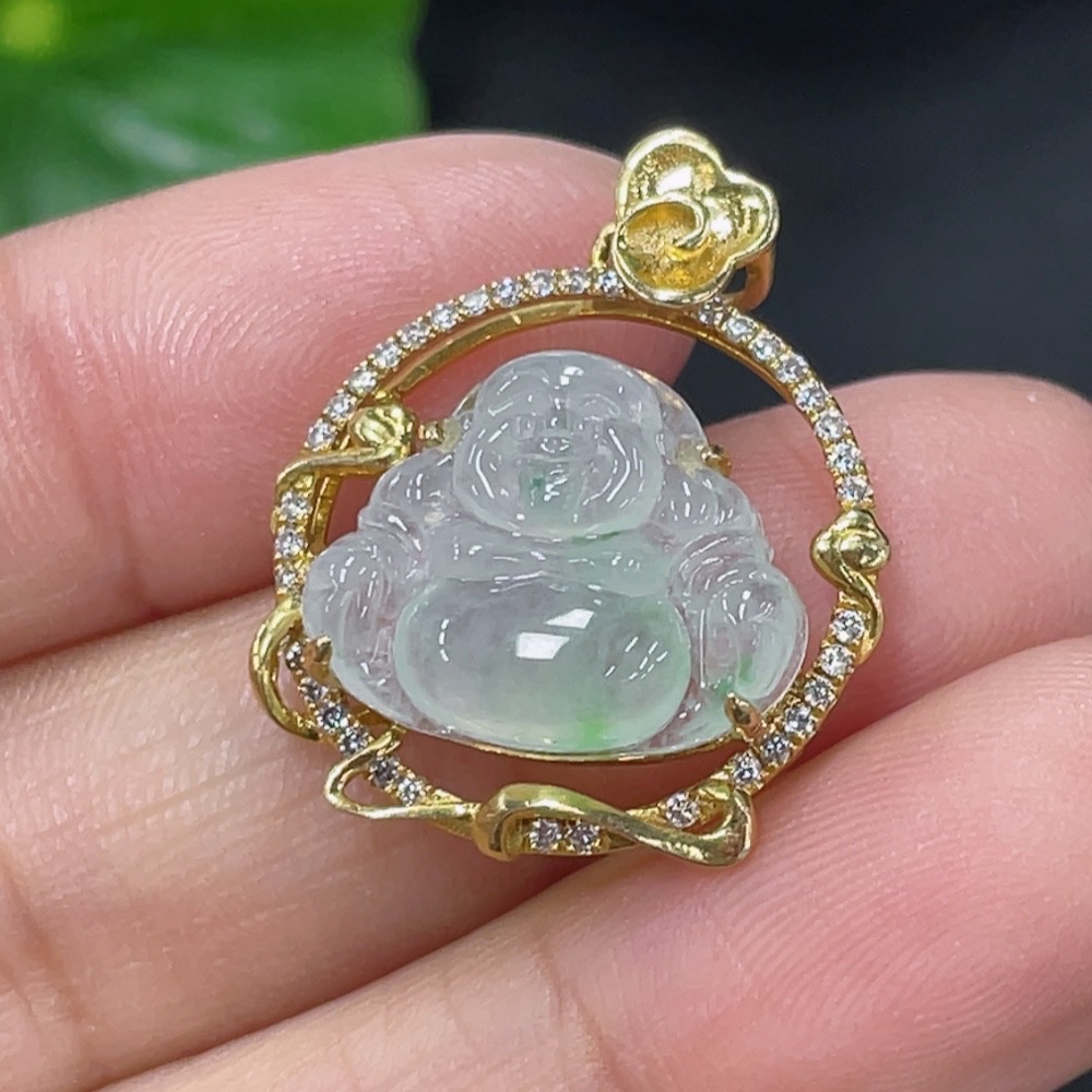 Jadeite Inlaid Buddha Pendant with 18k Gold and Diamond Accents, Total Weight Approximately 3.5g