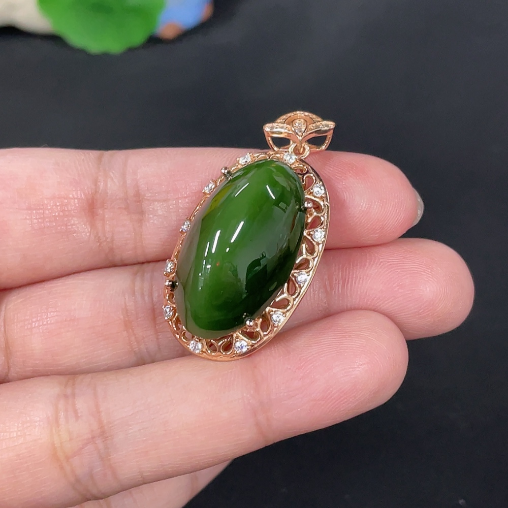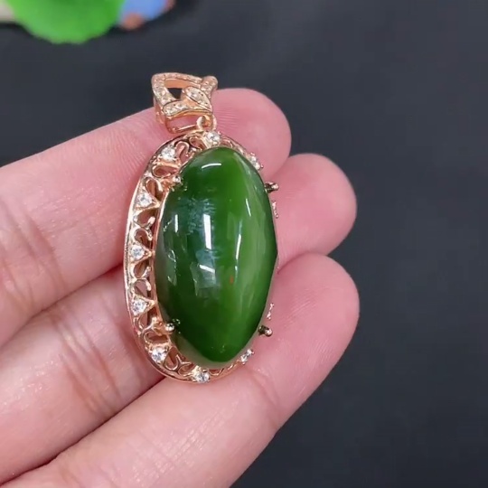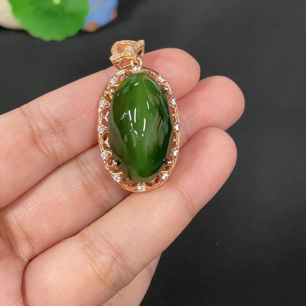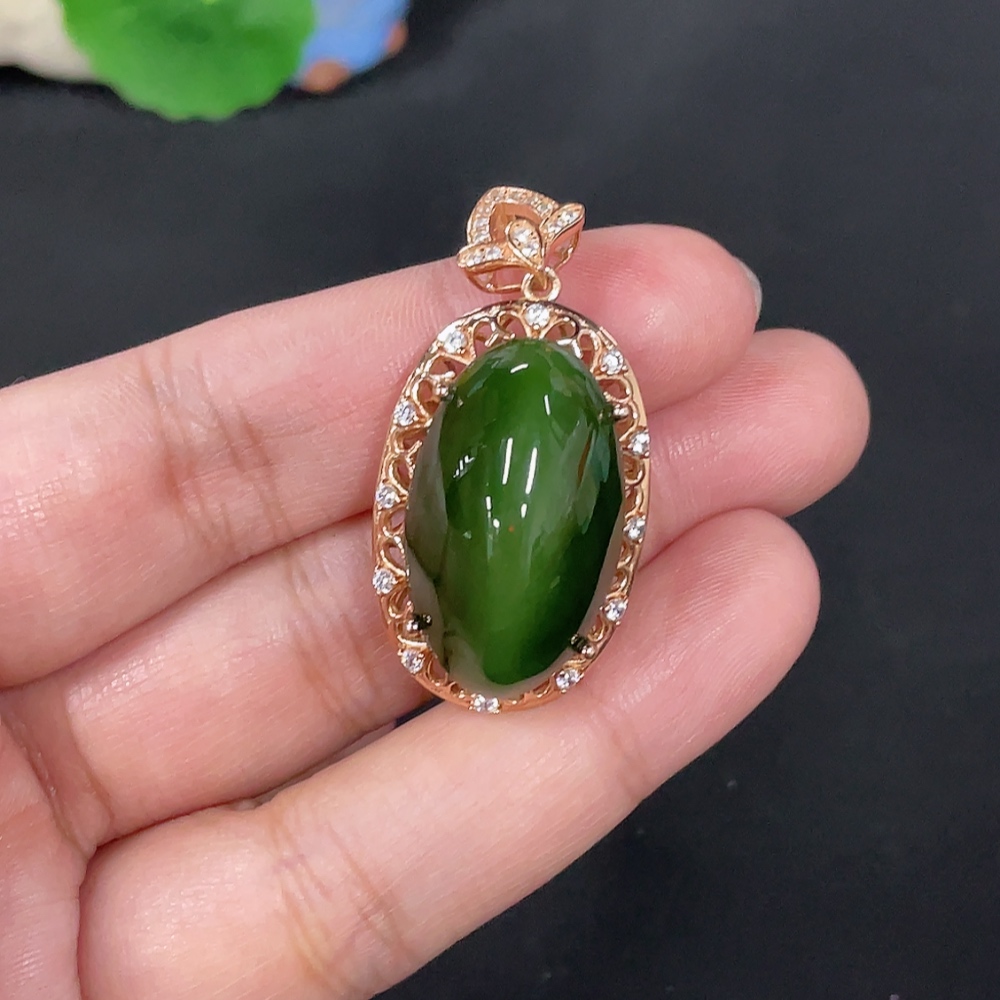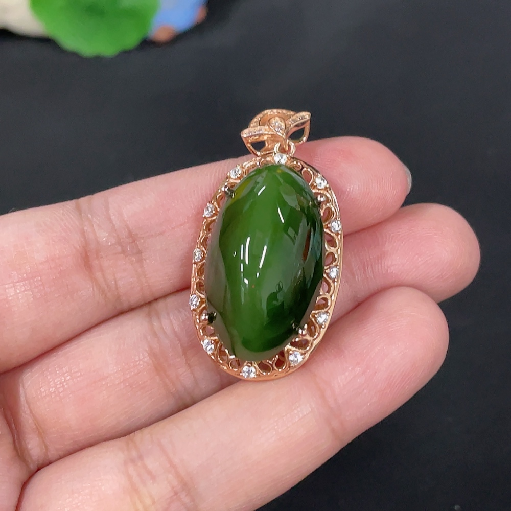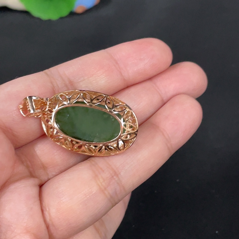 Hetian Jade Inlaid Pendant Total Weight Approx. 10.8g Non-Gold