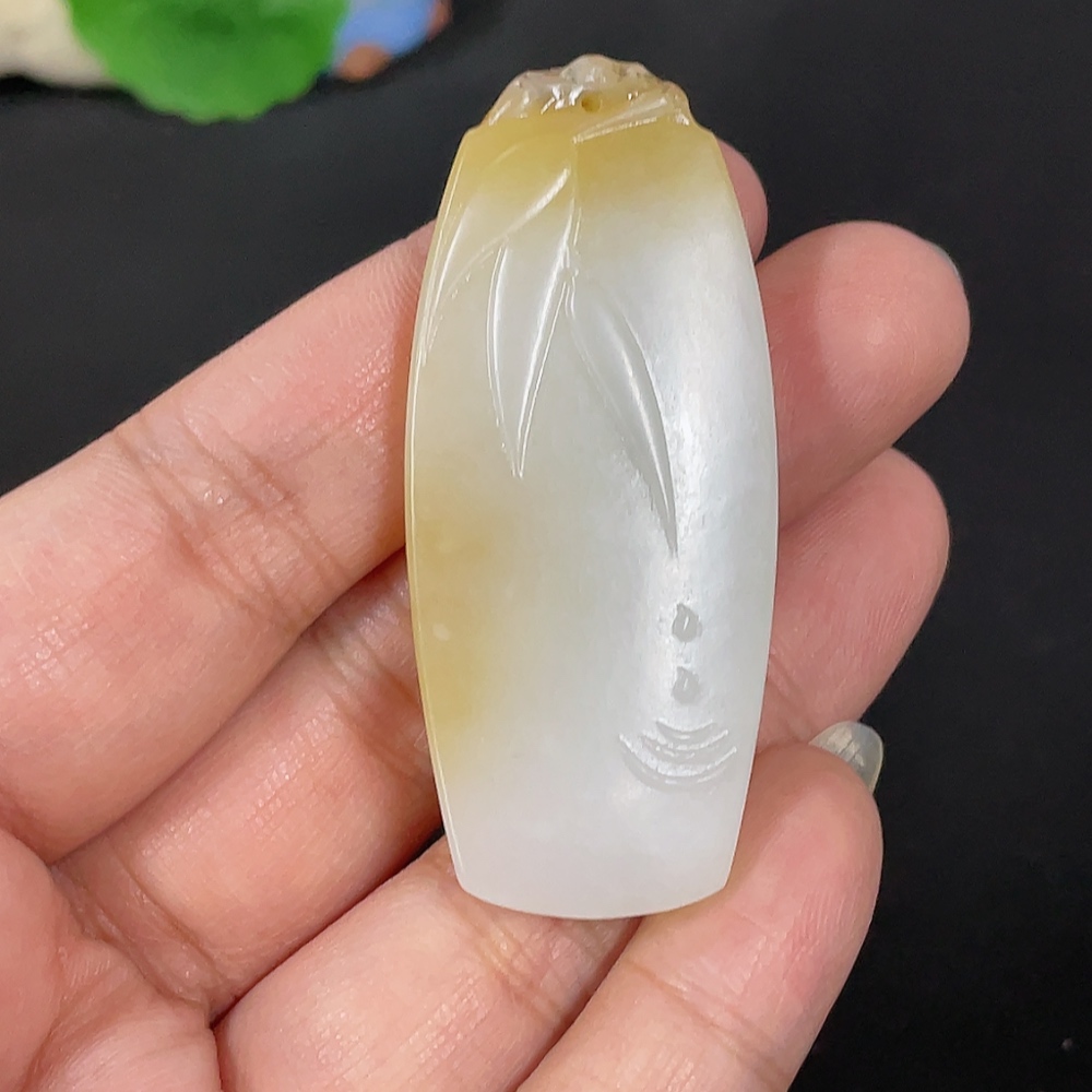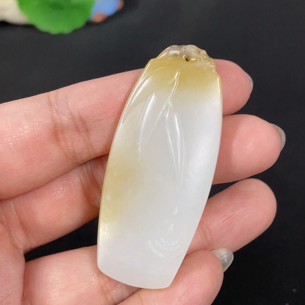 Hetian Jade Pendant Bamboo Leaf Total Weight Approx. 22.8g