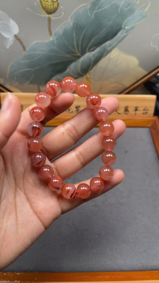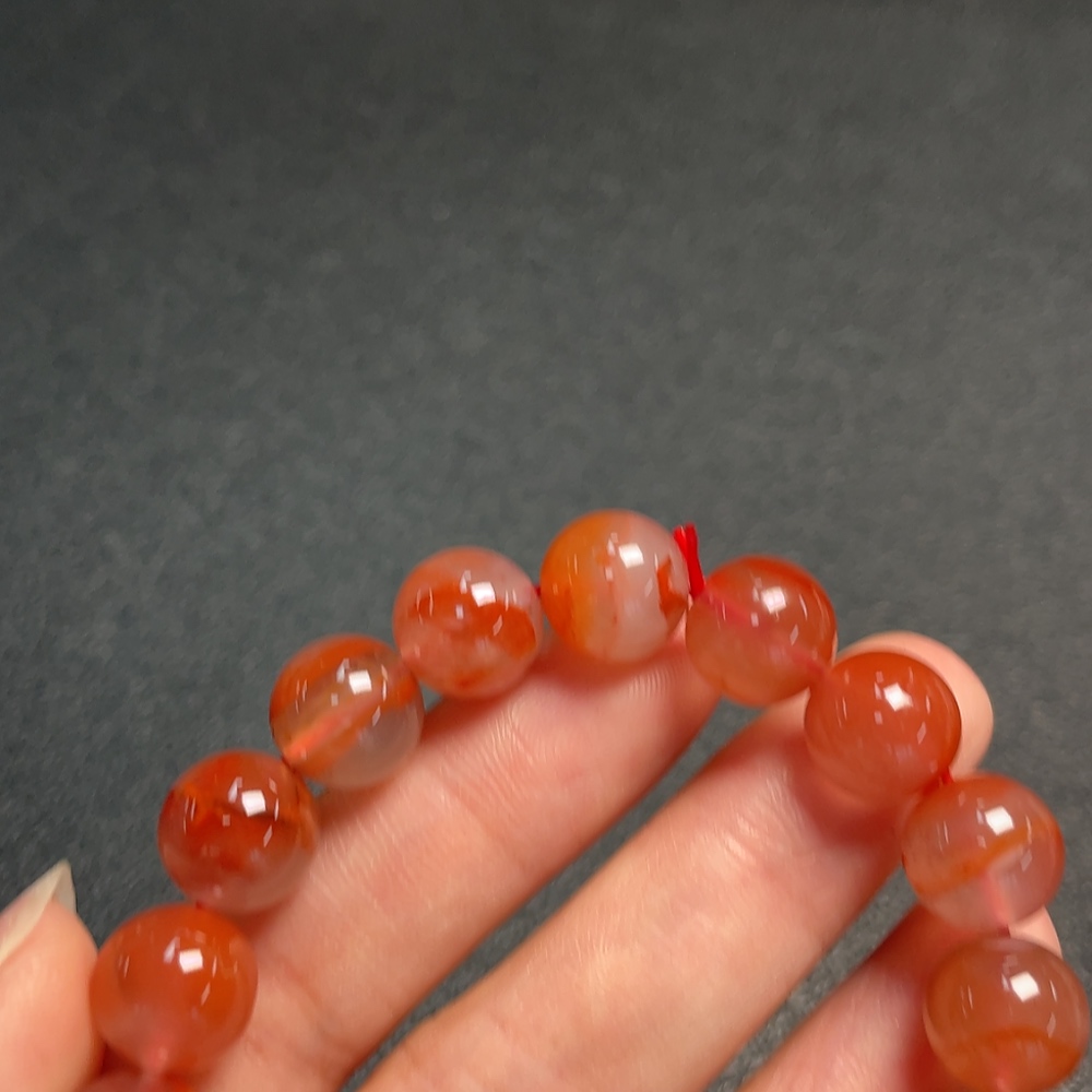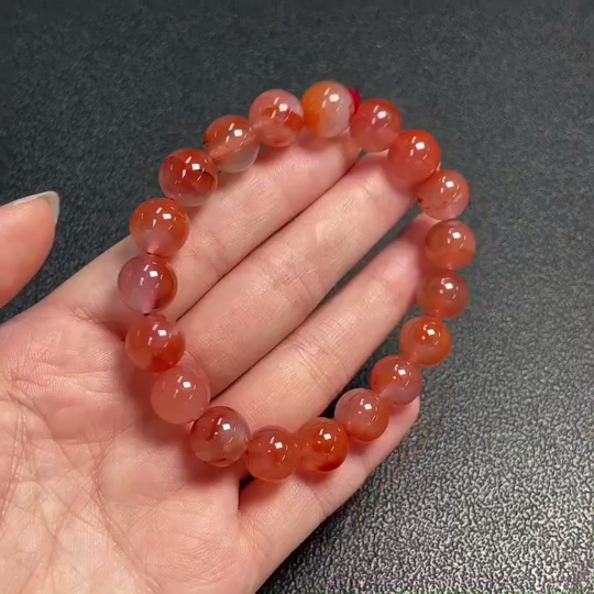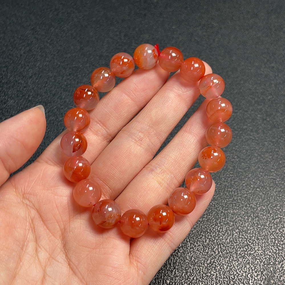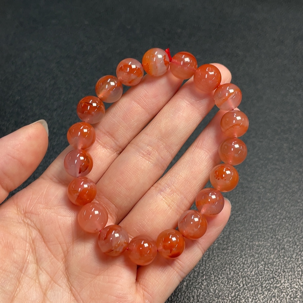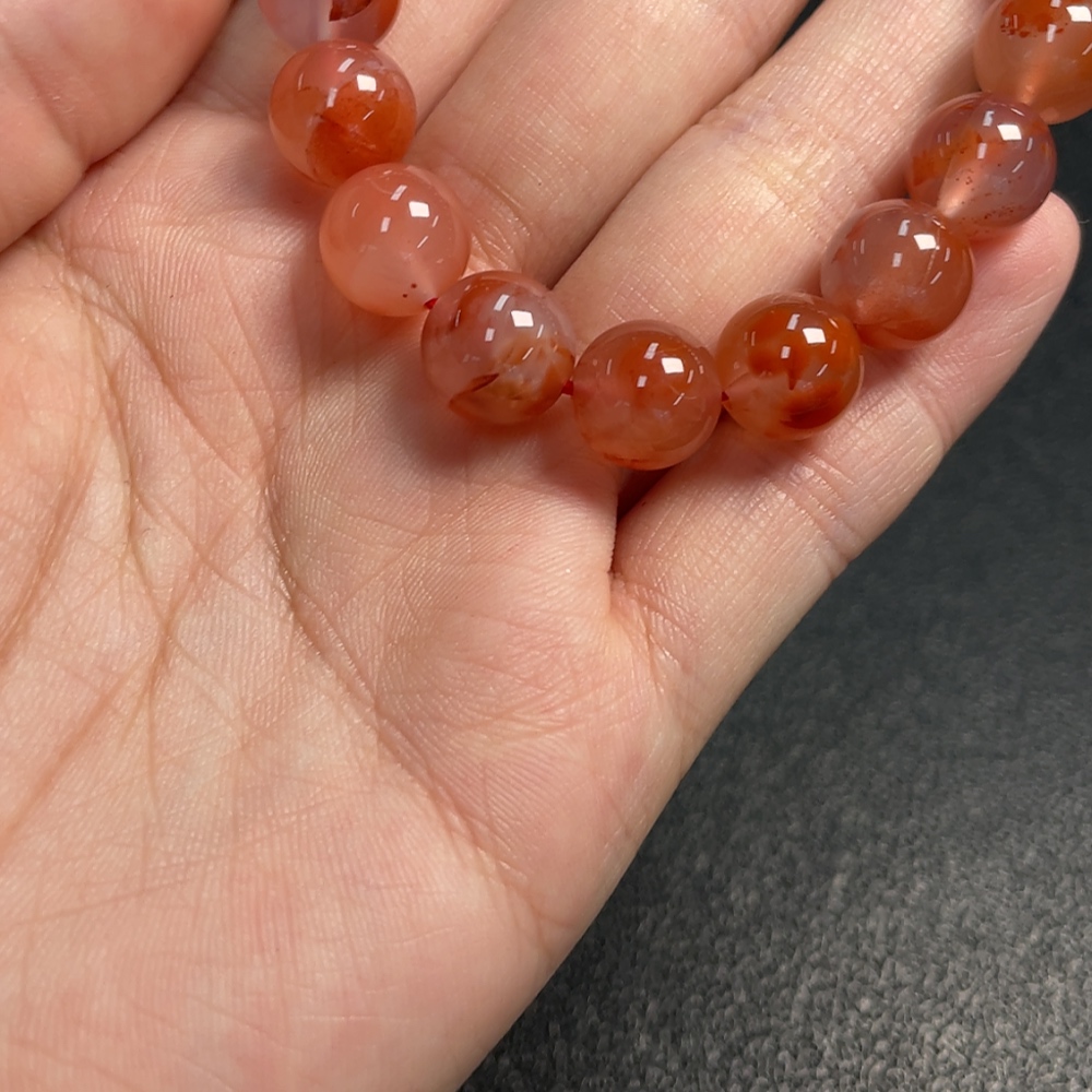 Red Agate Bracelet with Visible Organic Matter, Total Weight Approximately 31.18g, Bead Size About 10.7mm
