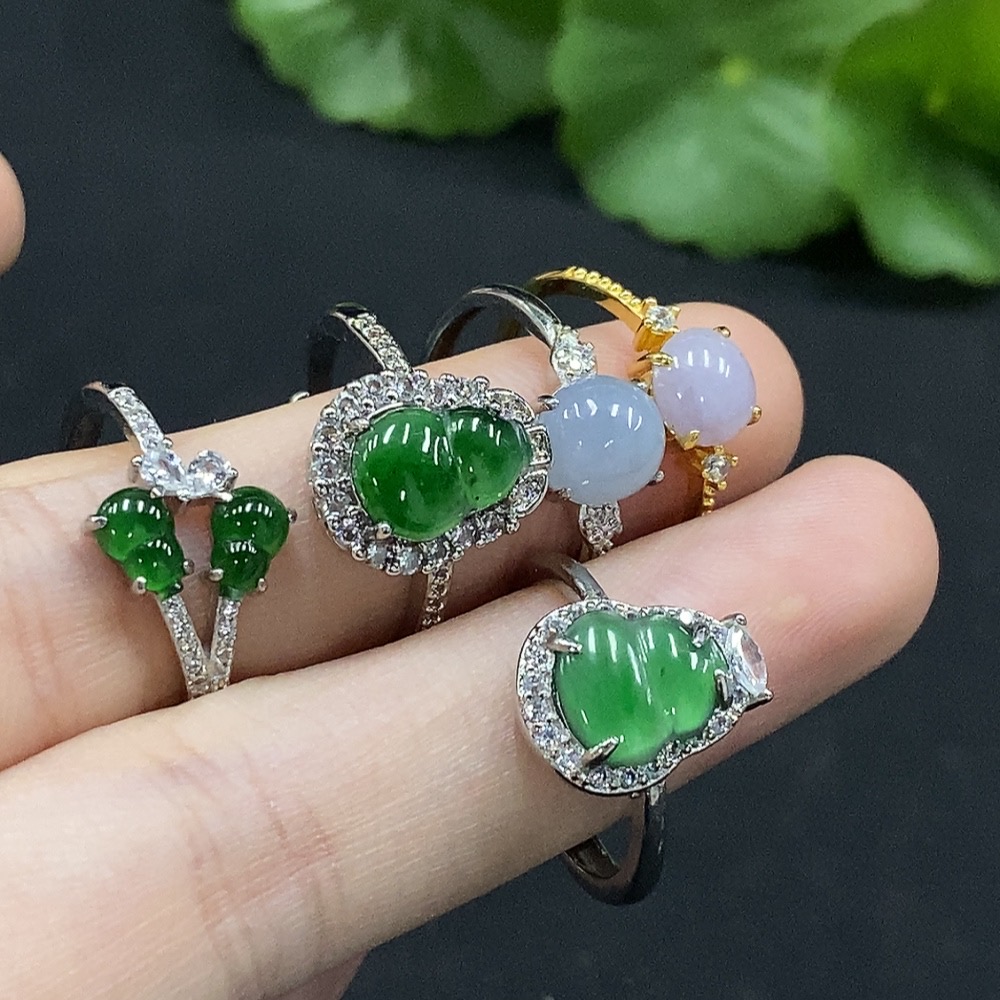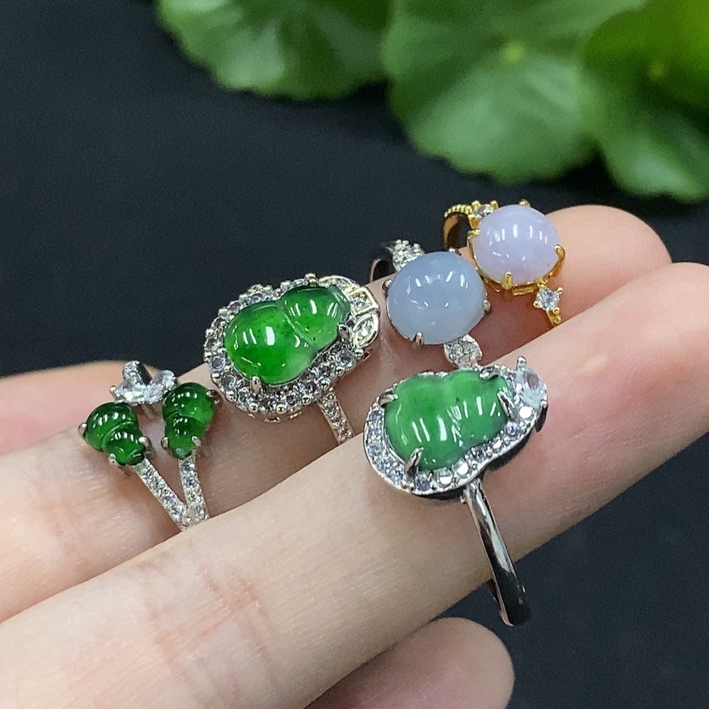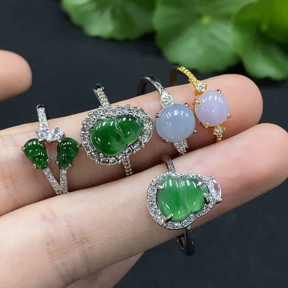 Jadeite cabochon inlaid ring, non-gold setting, adjustable