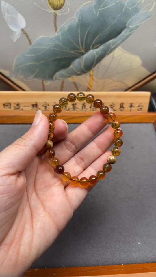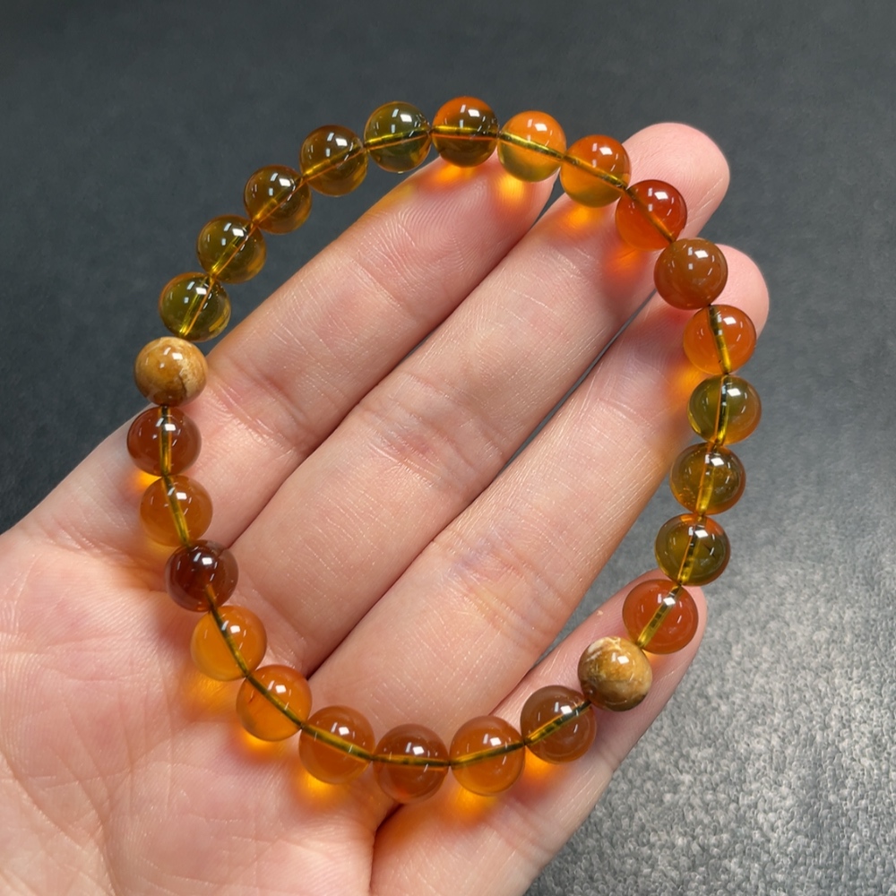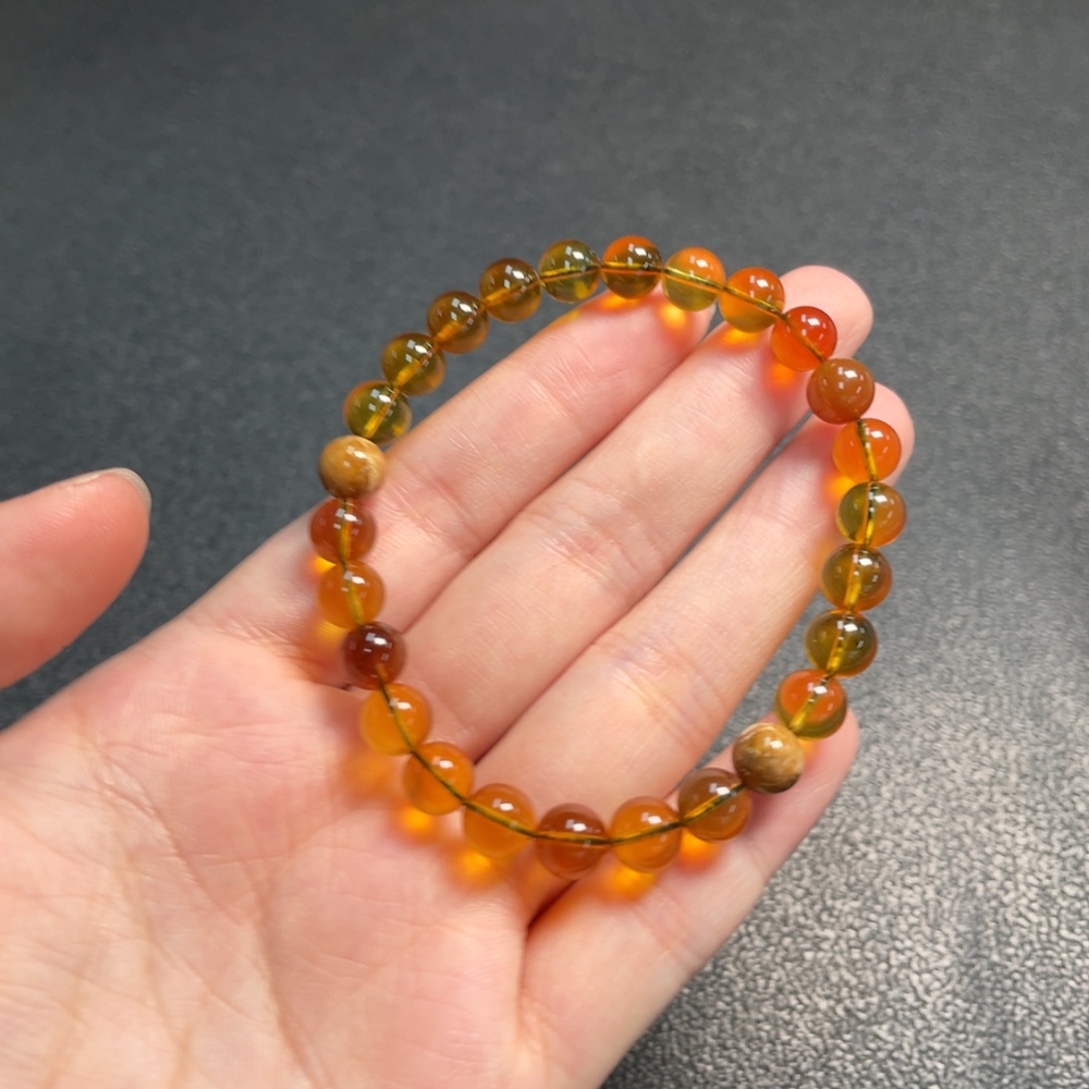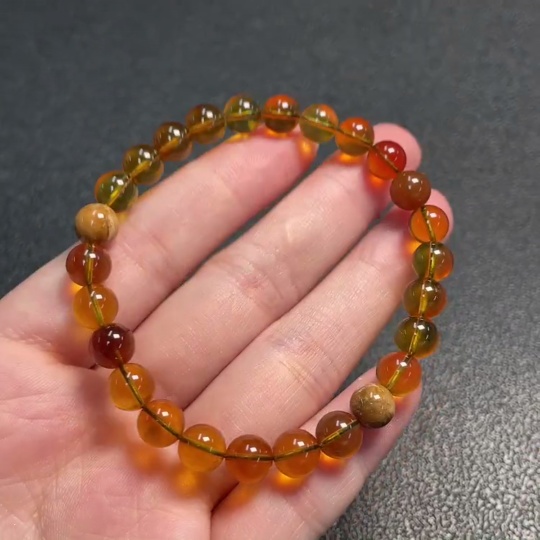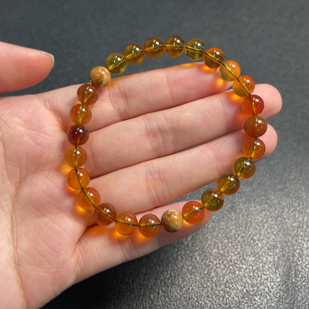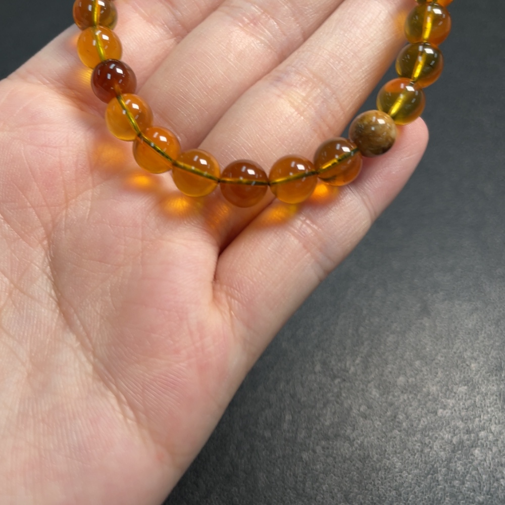 Amber and Beeswax Bracelet, Total Weight Approximately 5.52g, Bead Size About 7.3mm