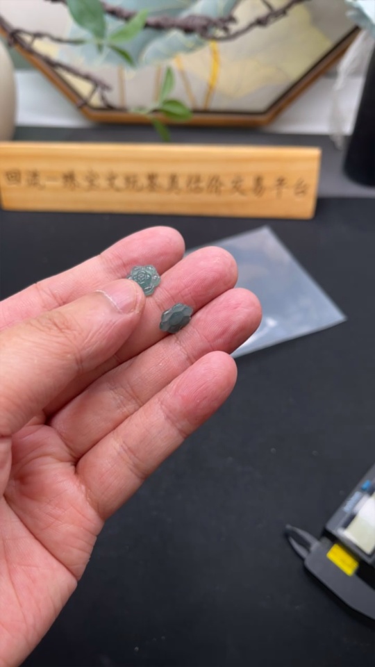 Jadeite Cherry Blossom Inlaid Pieces Sell as a Lot Total Weight Approx. 0.8g